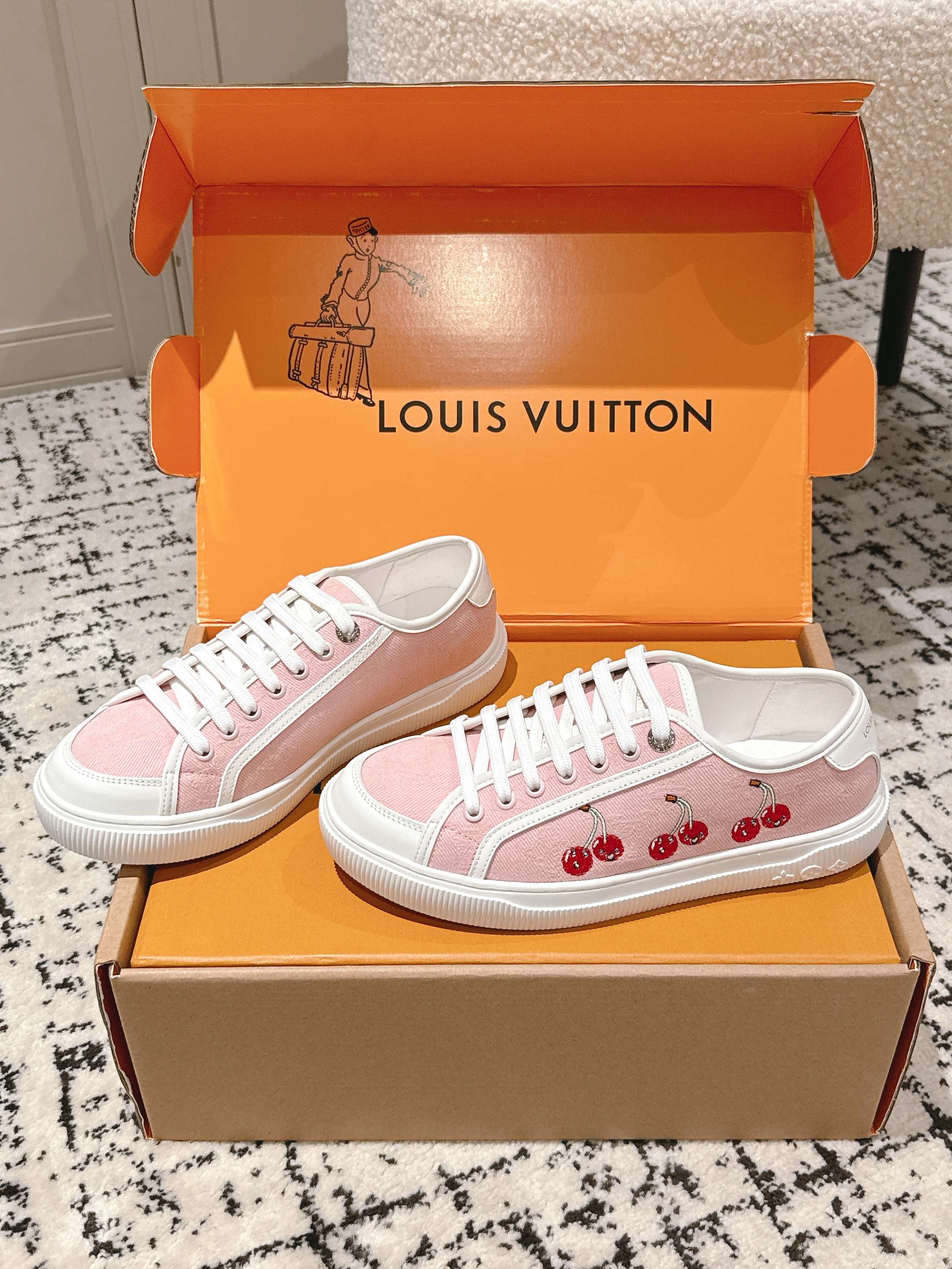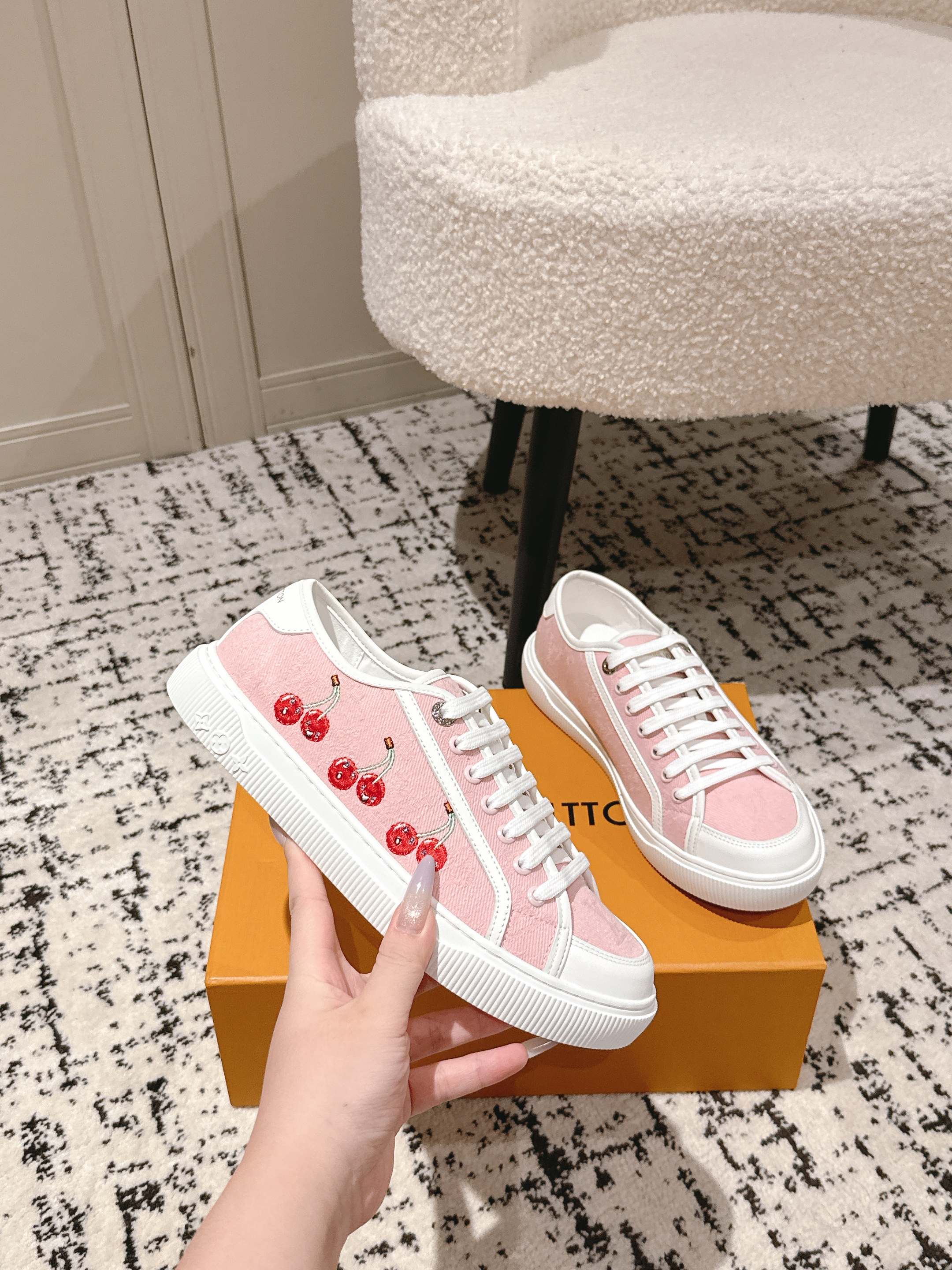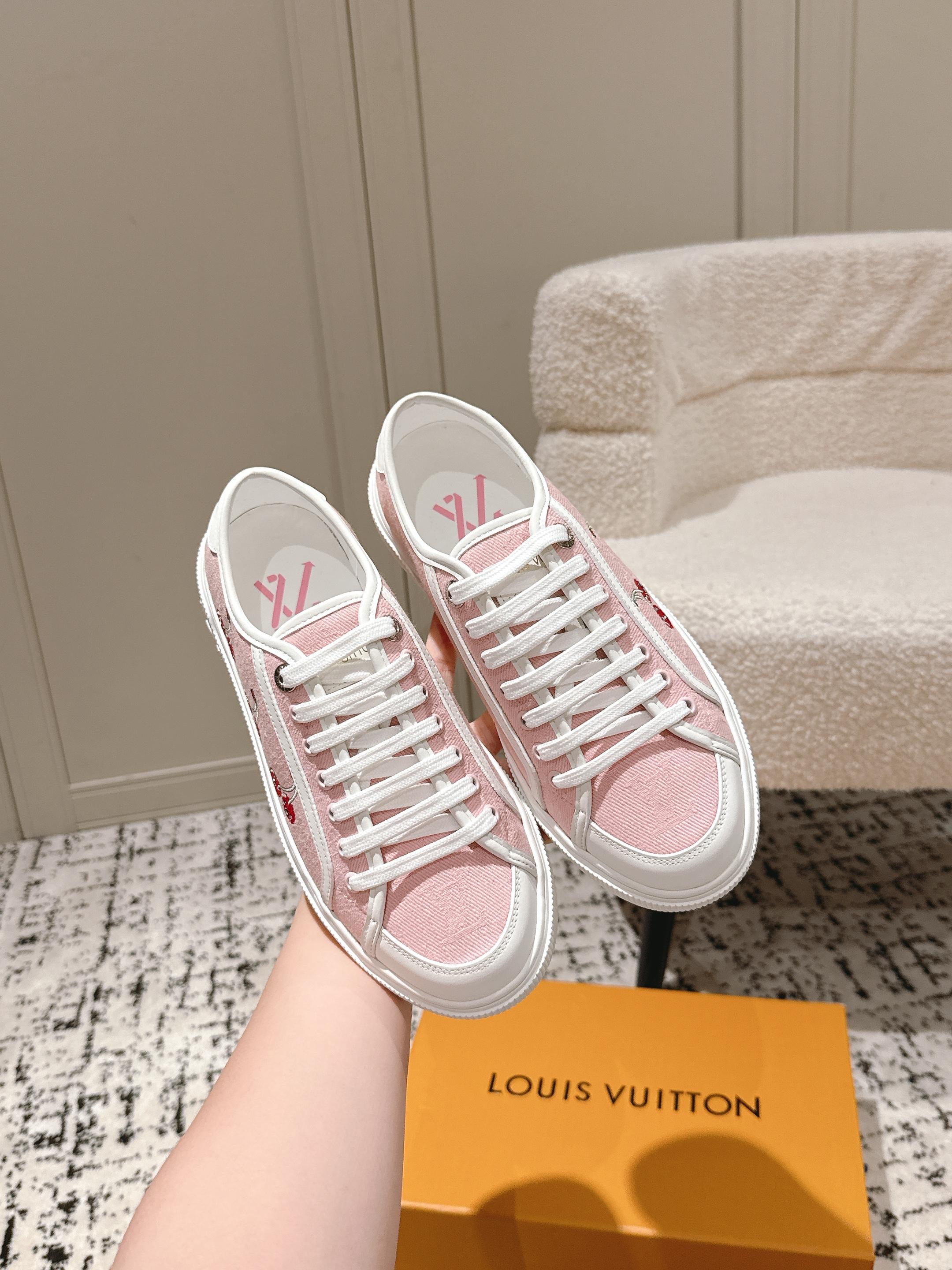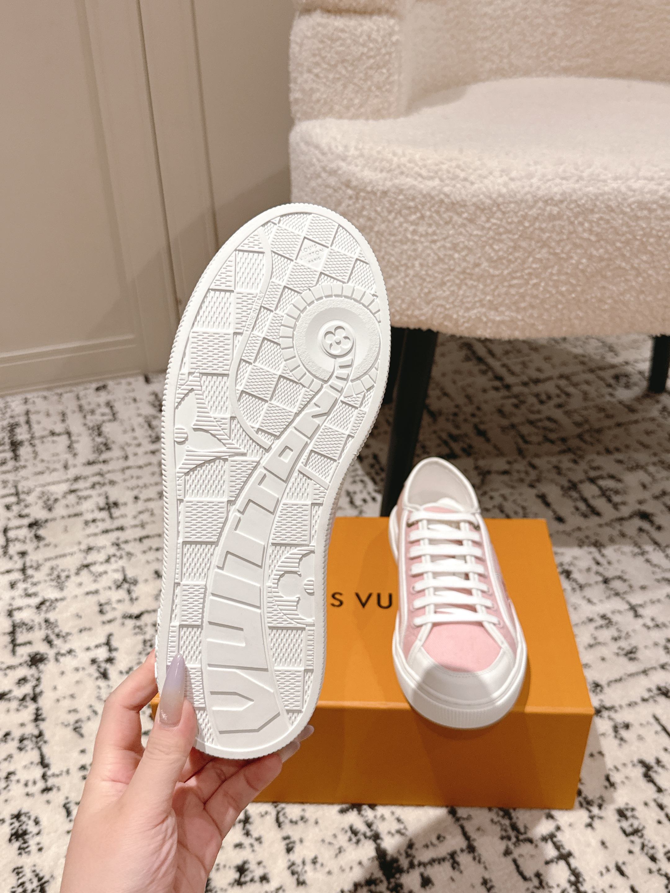 这款鞋子是AAAAA 1:1 质量 (非常棒). 使用了和原版一模一样的材料. 商标部分也保持了和路易威登/Louis Vuitton一样. 图片拍摄是实物鞋子拍摄, 您所收到的实物保证和我们图片一模一样.