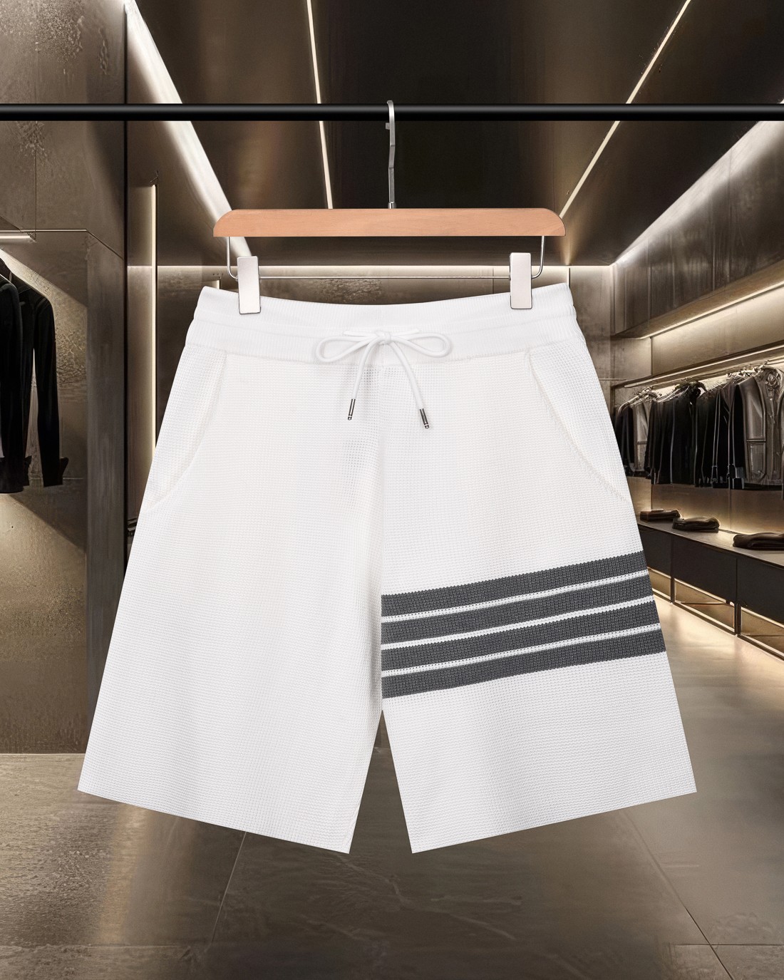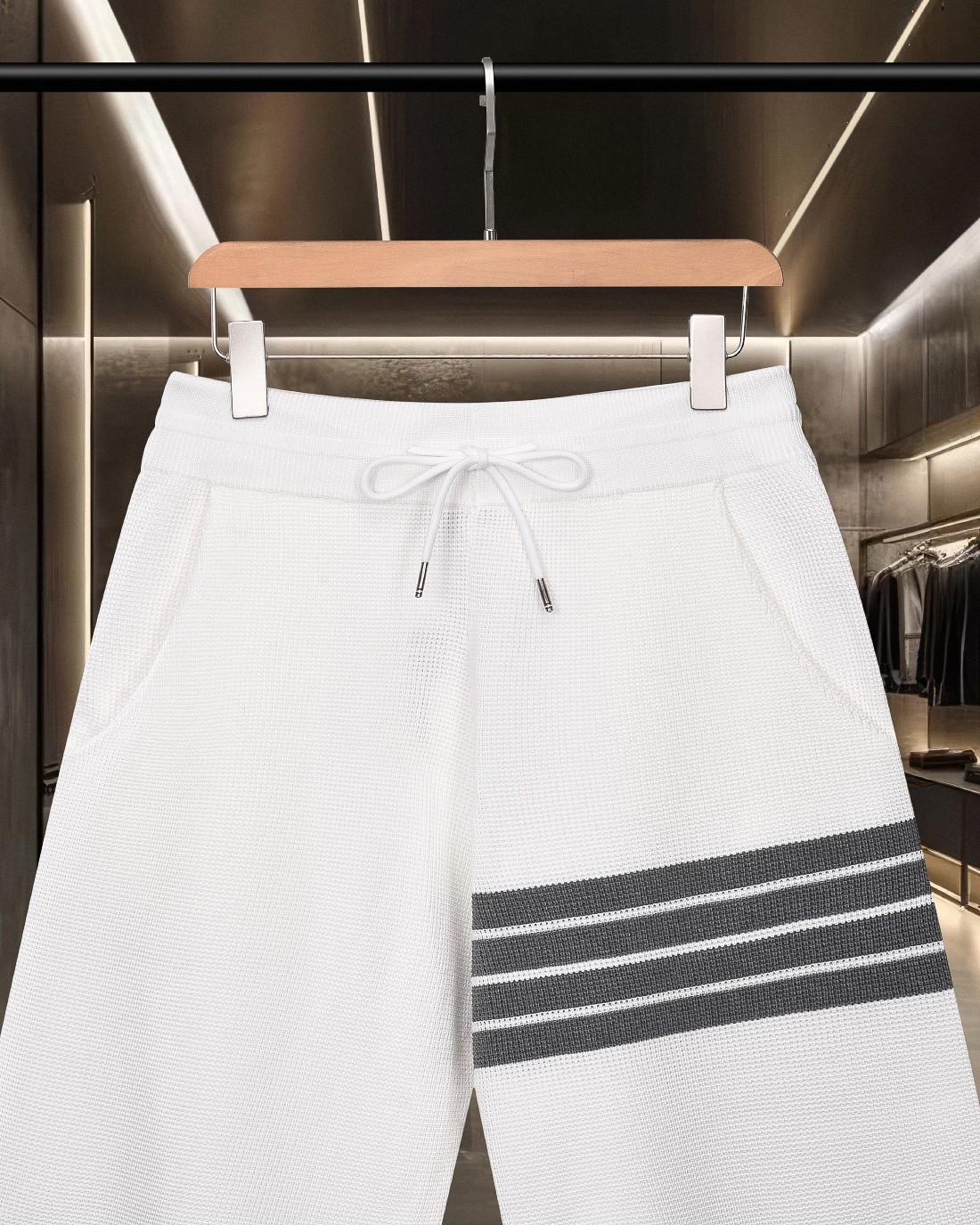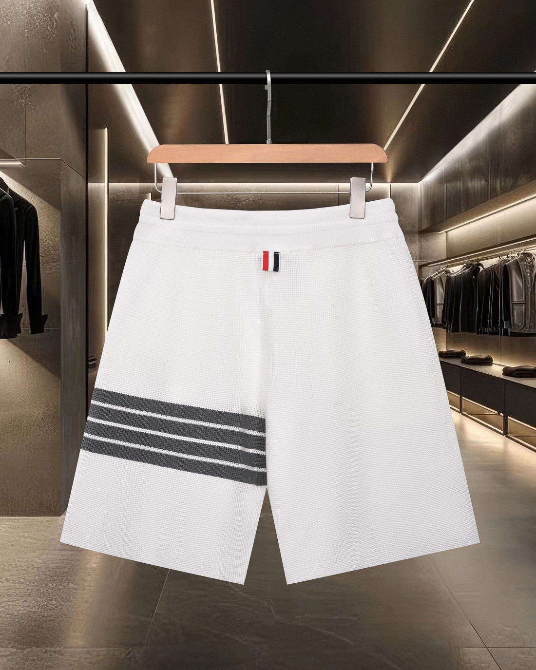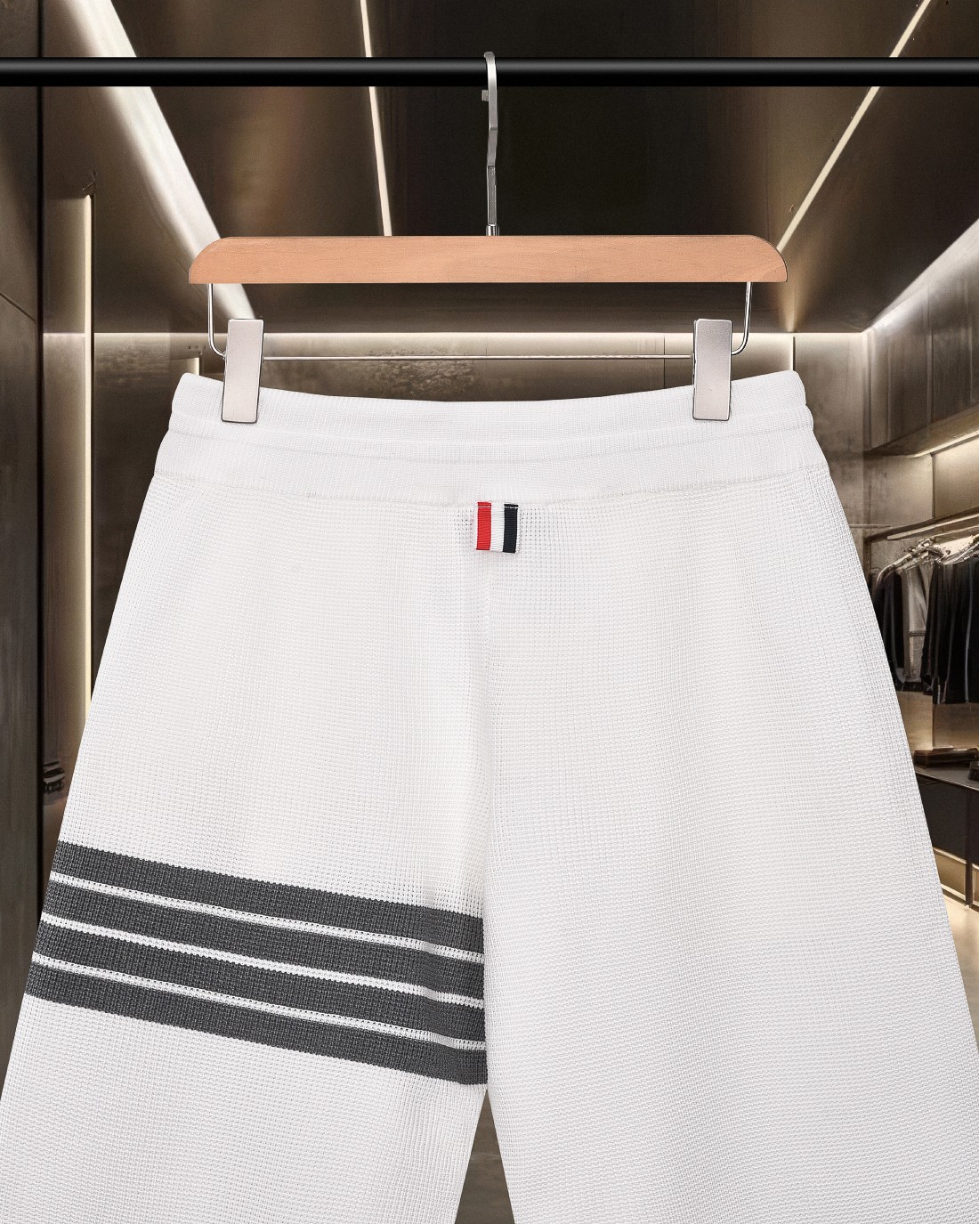 这款衣服是AAAAA 1:1 质量 (非常棒). 使用了和原版一模一样的材料. 商标部分也保持了和汤姆布朗/Thom Browne一样. 图片拍摄是实物衣服拍摄, 您所收到的实物保证和我们图片一模一样.