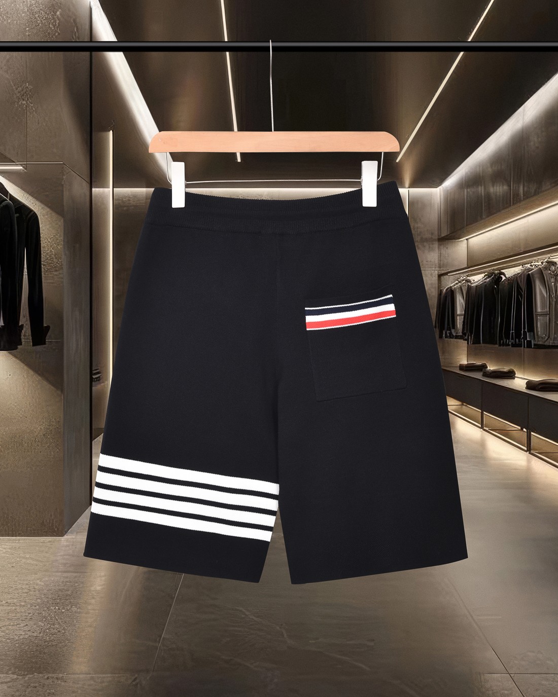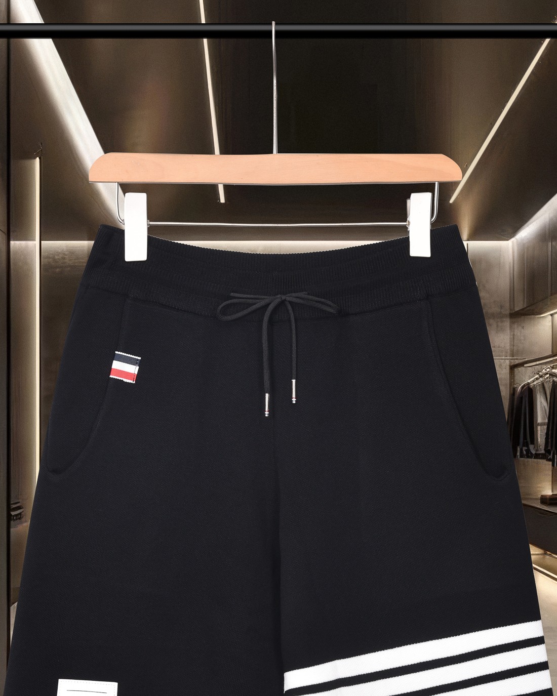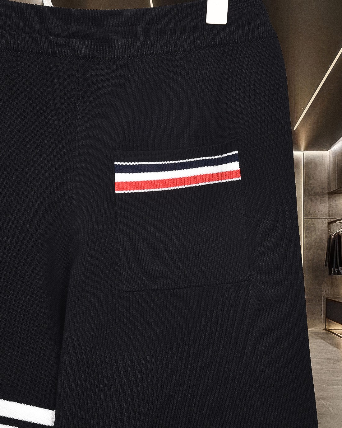 这款衣服是AAAAA 1:1 质量 (非常棒). 使用了和原版一模一样的材料. 商标部分也保持了和汤姆布朗/Thom Browne一样. 图片拍摄是实物衣服拍摄, 您所收到的实物保证和我们图片一模一样.