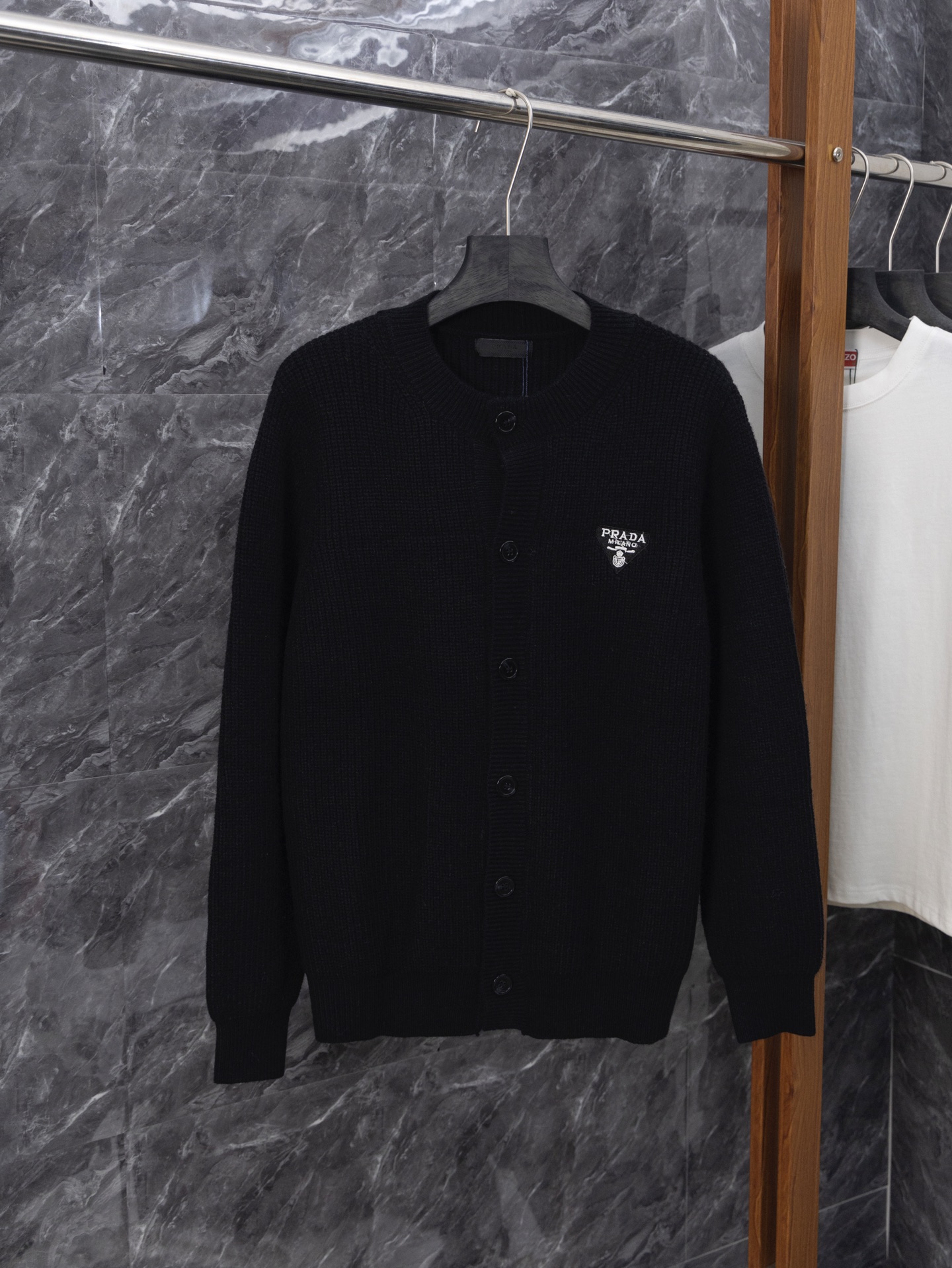 这款衣服是AAAAA 1:1 质量 (非常棒). 使用了和原版一模一样的材料. 商标部分也保持了和普拉达/Prada一样. 图片拍摄是实物衣服拍摄, 您所收到的实物保证和我们图片一模一样.