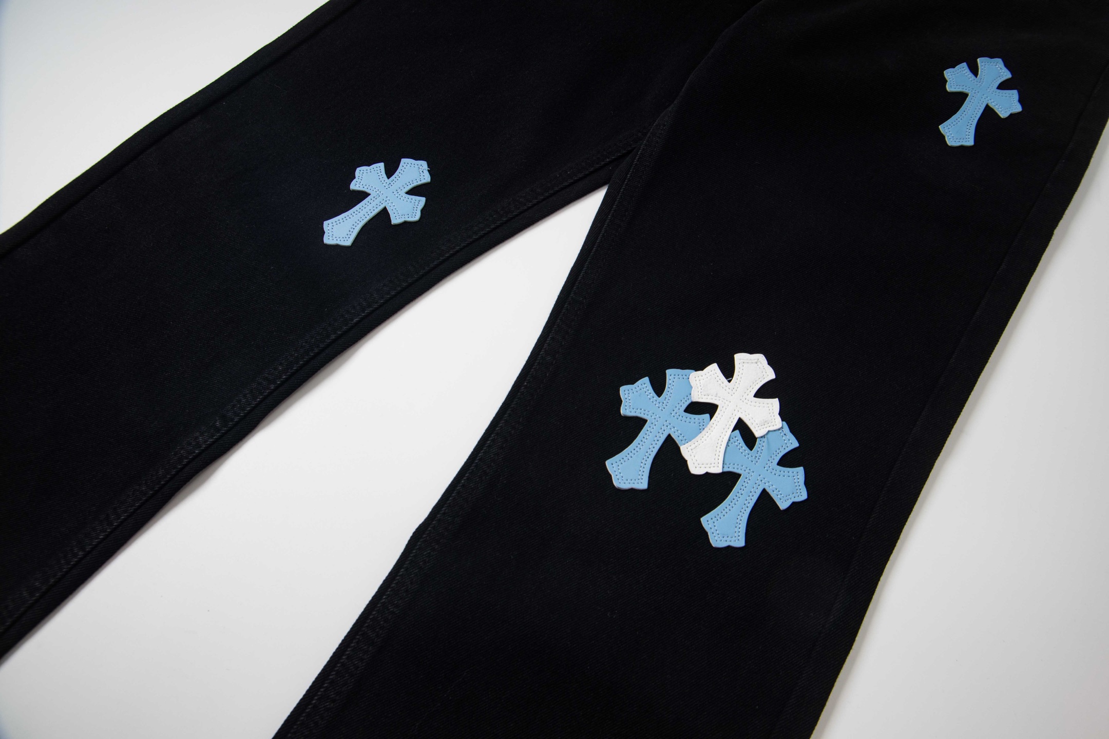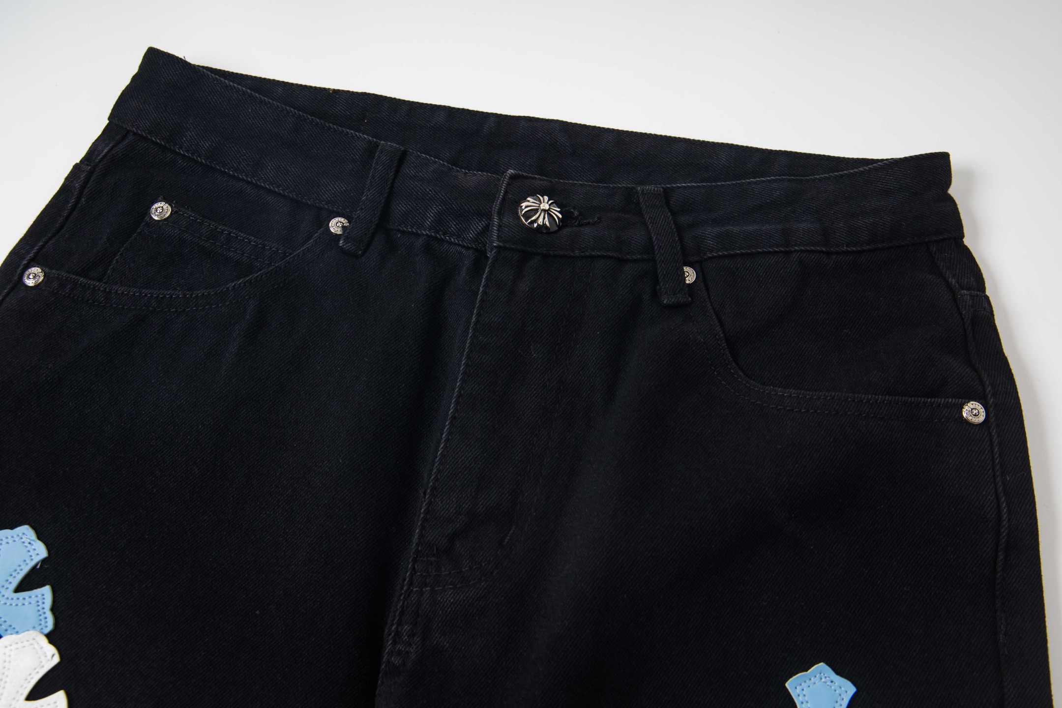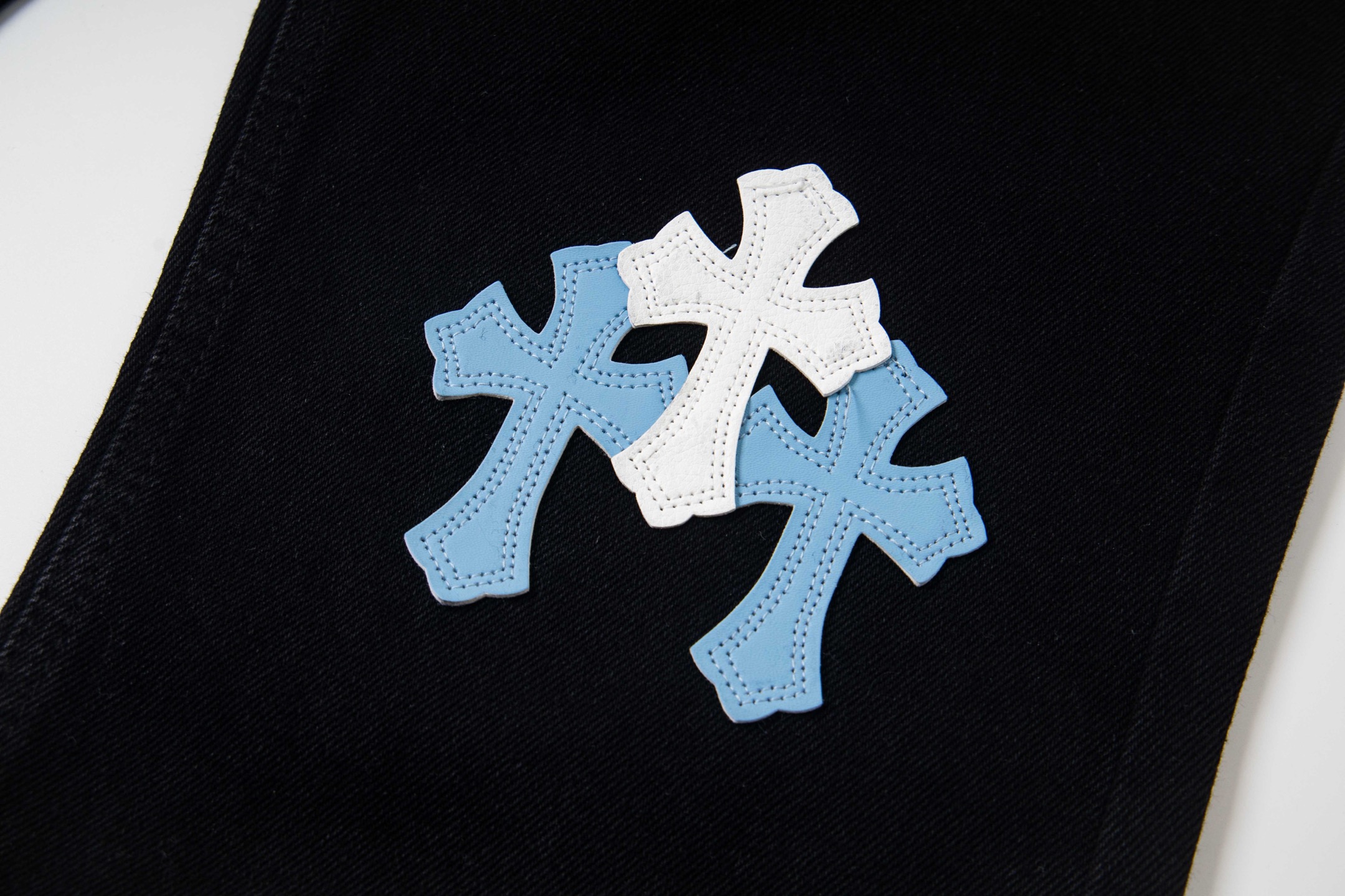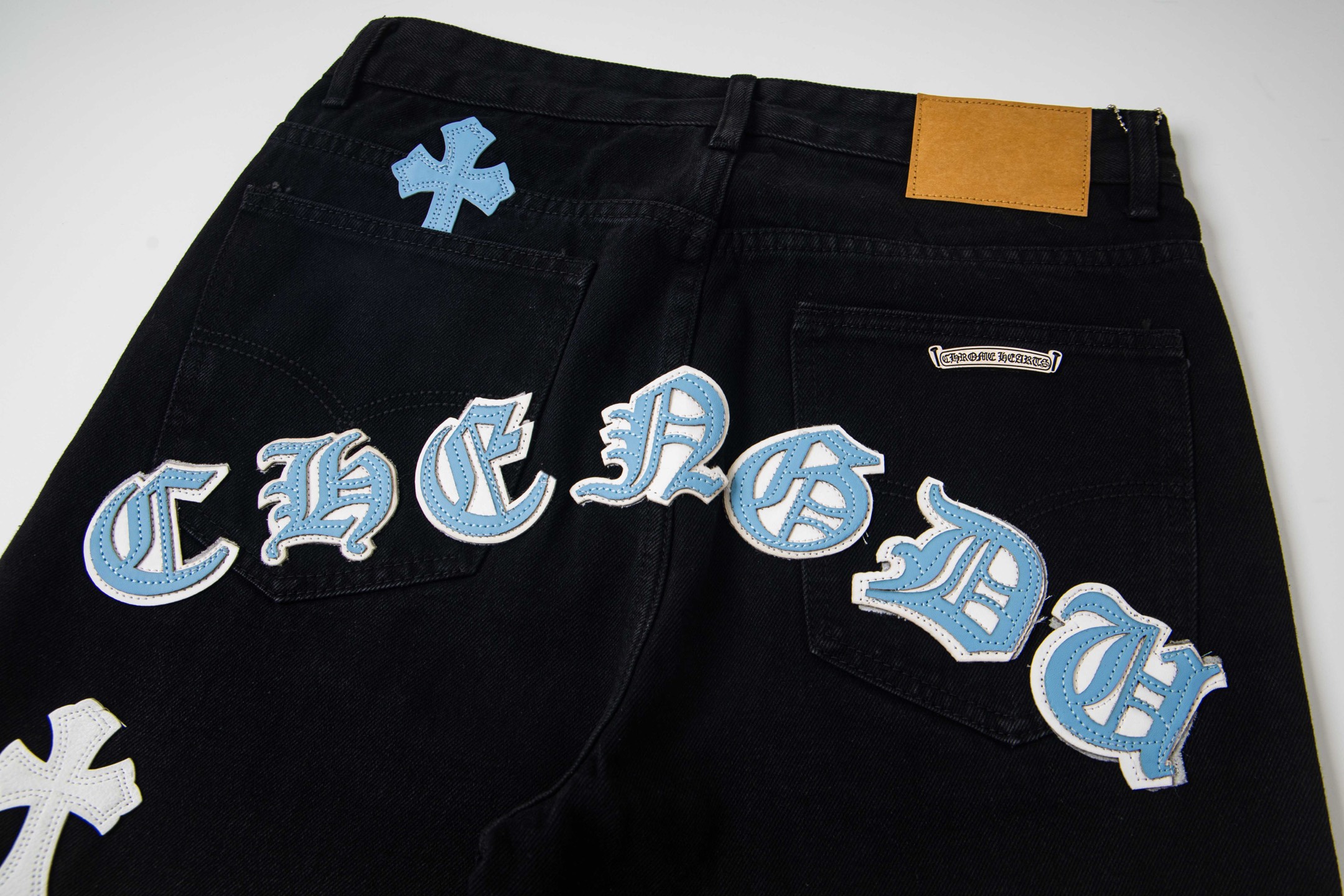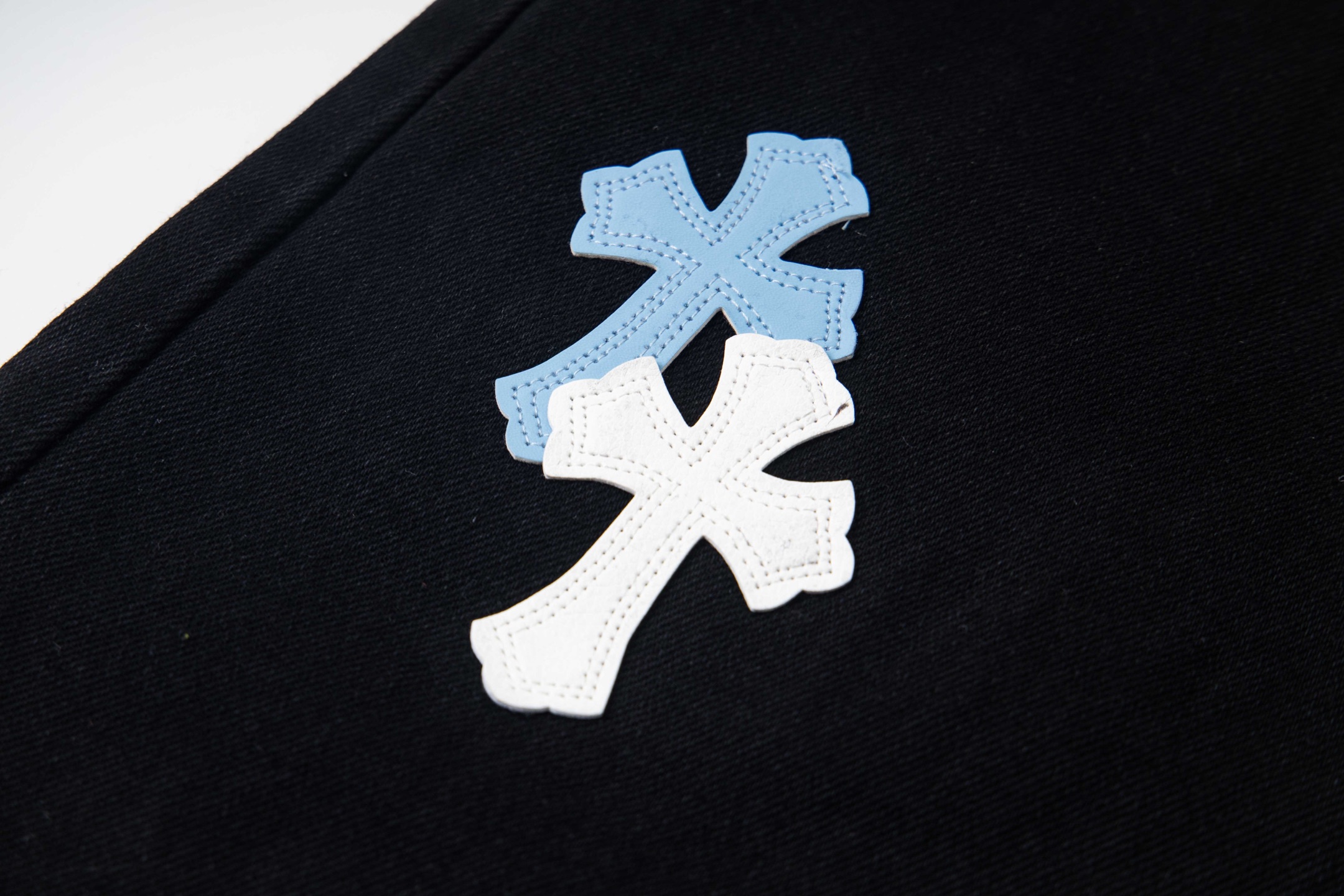 这款衣服是AAAAA 1:1 质量 (非常棒). 使用了和原版一模一样的材料. 商标部分也保持了和克罗心/Chrome Hearts一样. 图片拍摄是实物衣服拍摄, 您所收到的实物保证和我们图片一模一样.