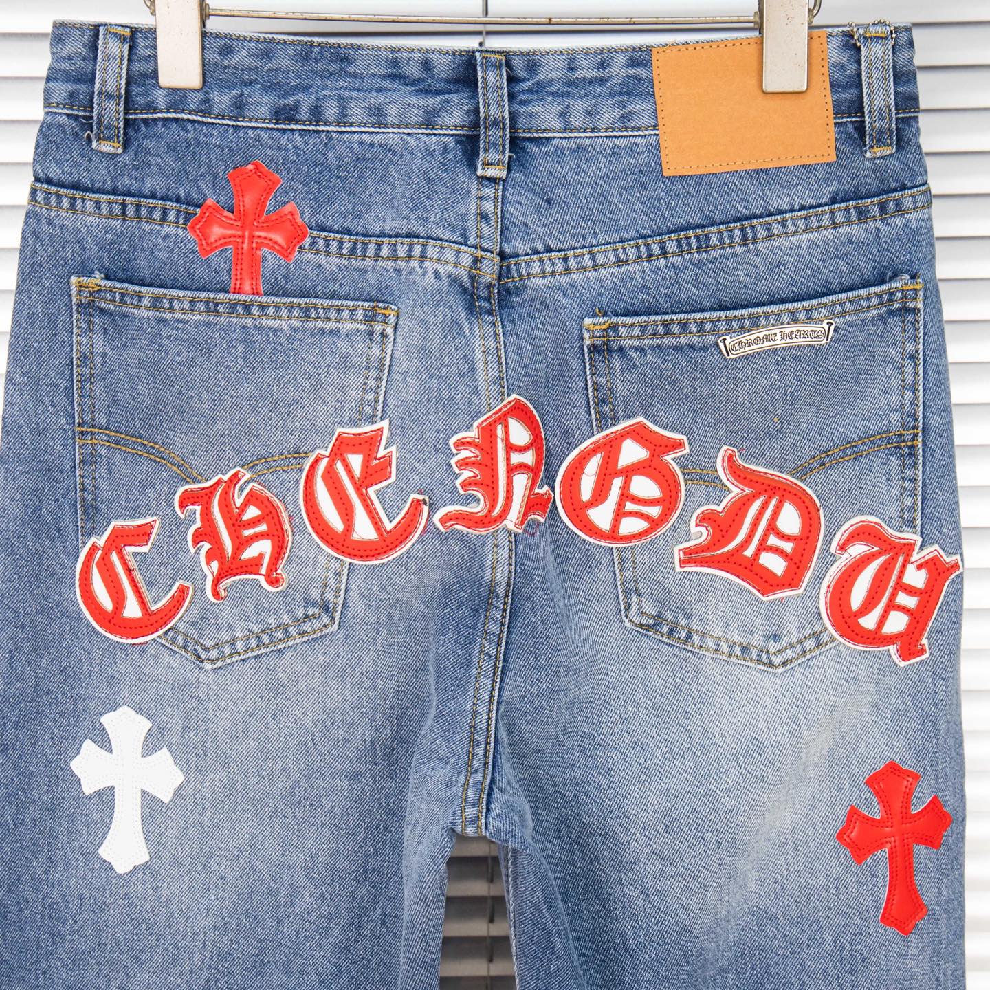这款衣服是AAAAA 1:1 质量 (非常棒). 使用了和原版一模一样的材料. 商标部分也保持了和克罗心/Chrome Hearts一样. 图片拍摄是实物衣服拍摄, 您所收到的实物保证和我们图片一模一样.