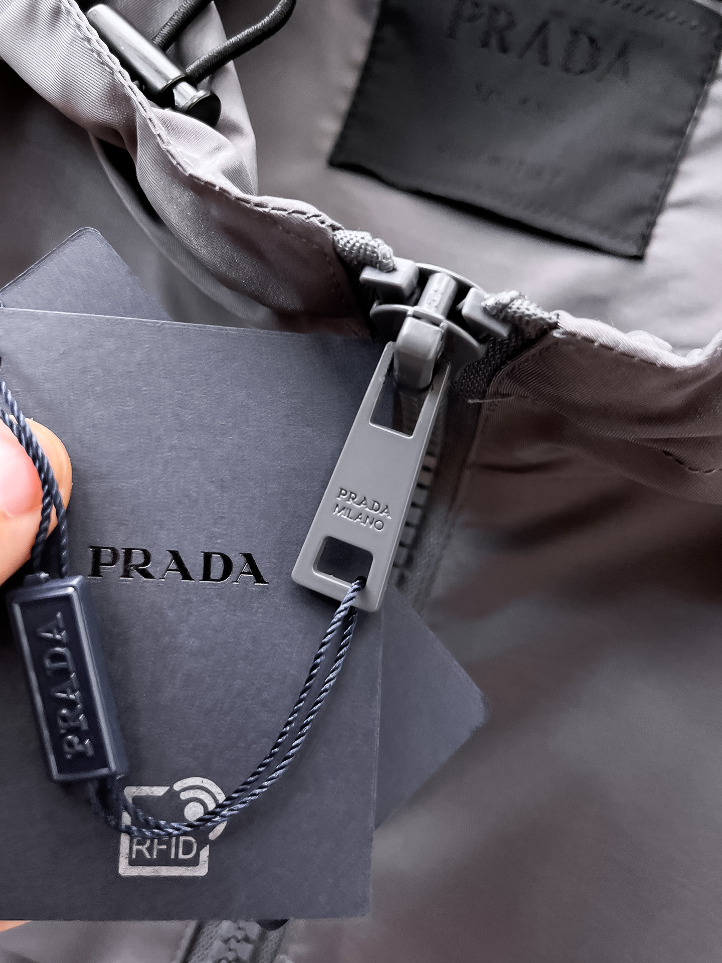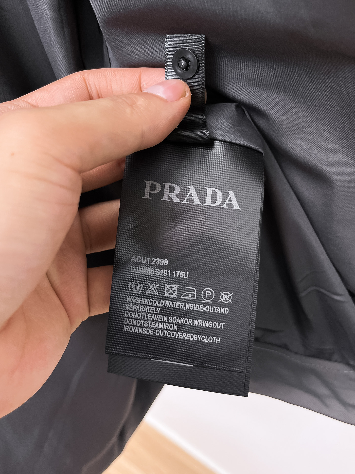 这款衣服是AAAAA 1:1 质量 (非常棒). 使用了和原版一模一样的材料. 商标部分也保持了和普拉达/Prada一样. 图片拍摄是实物衣服拍摄, 您所收到的实物保证和我们图片一模一样.