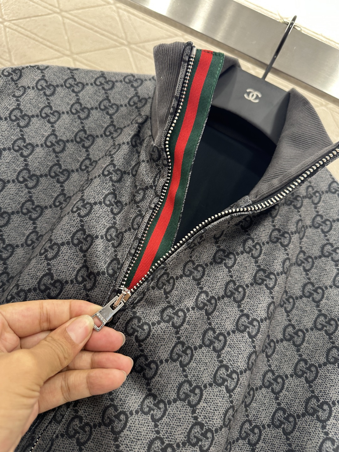 这款衣服是AAAAA 1:1 质量 (非常棒). 使用了和原版一模一样的材料. 商标部分也保持了和古奇/Gucci一样. 图片拍摄是实物衣服拍摄, 您所收到的实物保证和我们图片一模一样.