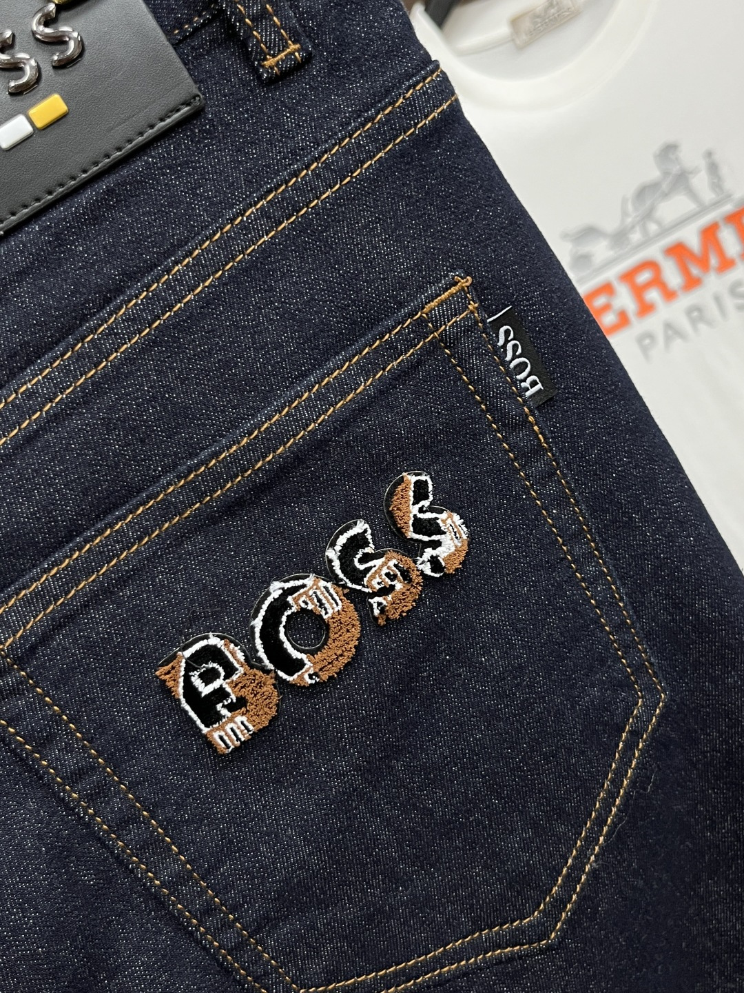 这款衣服是AAAAA 1:1 质量 (非常棒). 使用了和原版一模一样的材料. 商标部分也保持了和BOSS一样. 图片拍摄是实物衣服拍摄, 您所收到的实物保证和我们图片一模一样.