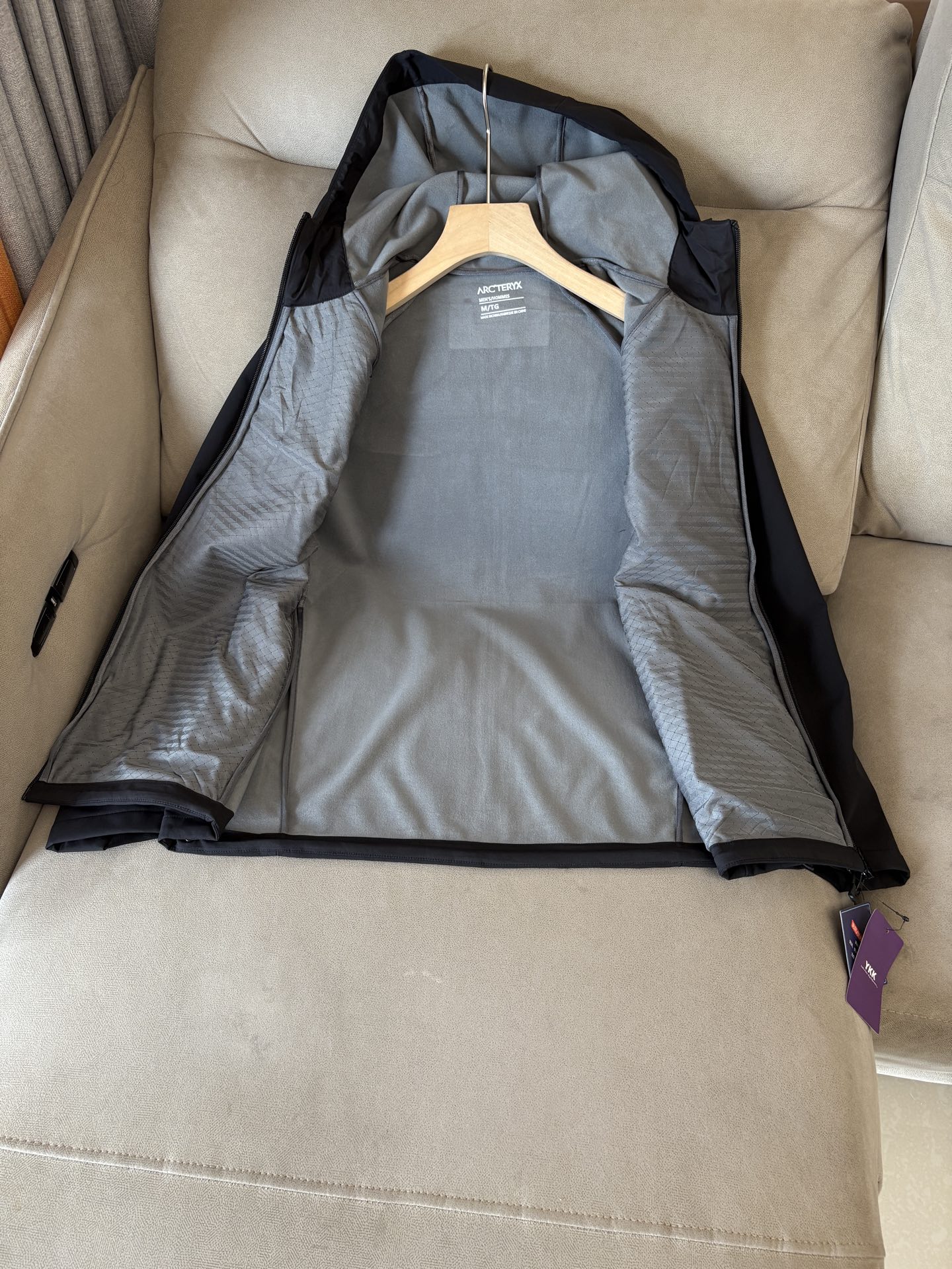 这款衣服是AAAAA 1:1 质量 (非常棒). 使用了和原版一模一样的材料. 商标部分也保持了和ARC'TERYX一样. 图片拍摄是实物衣服拍摄, 您所收到的实物保证和我们图片一模一样.