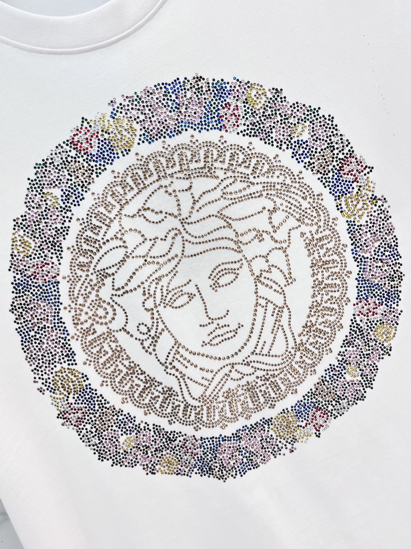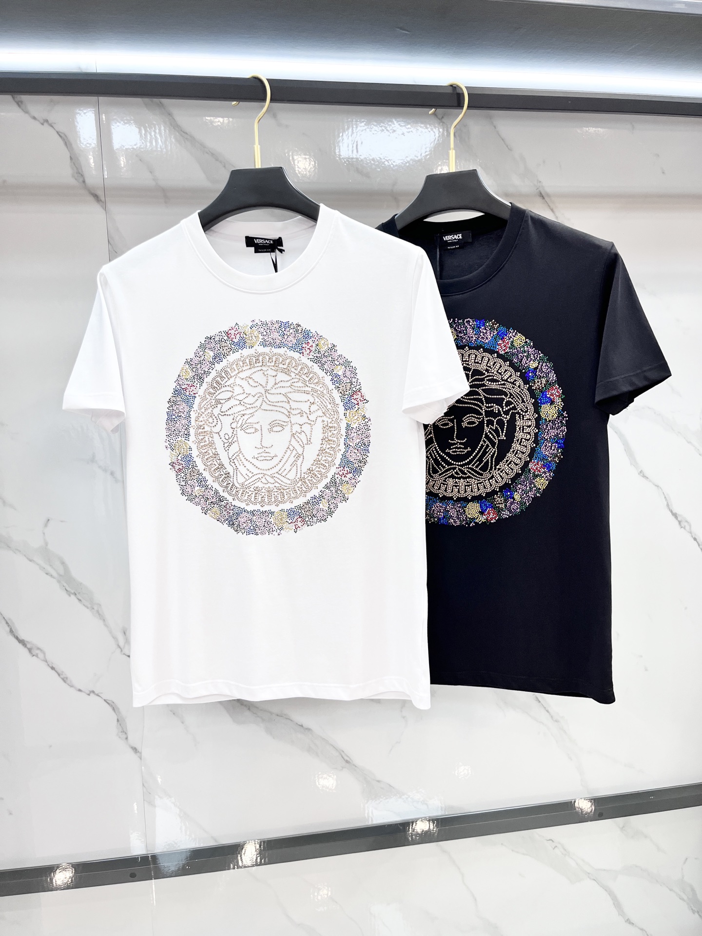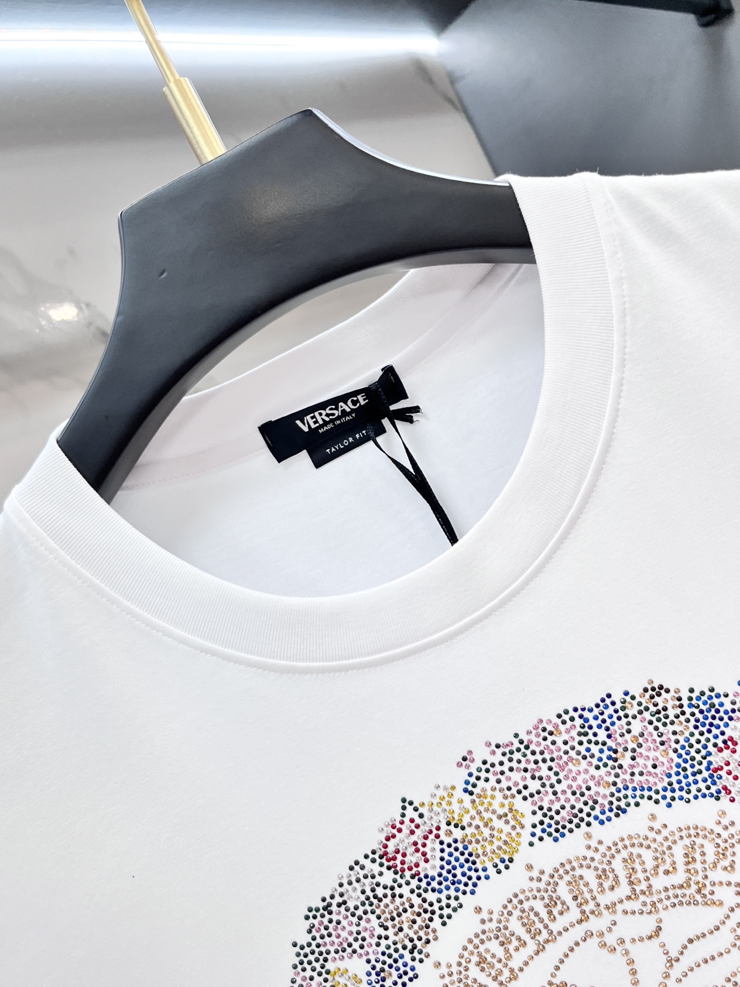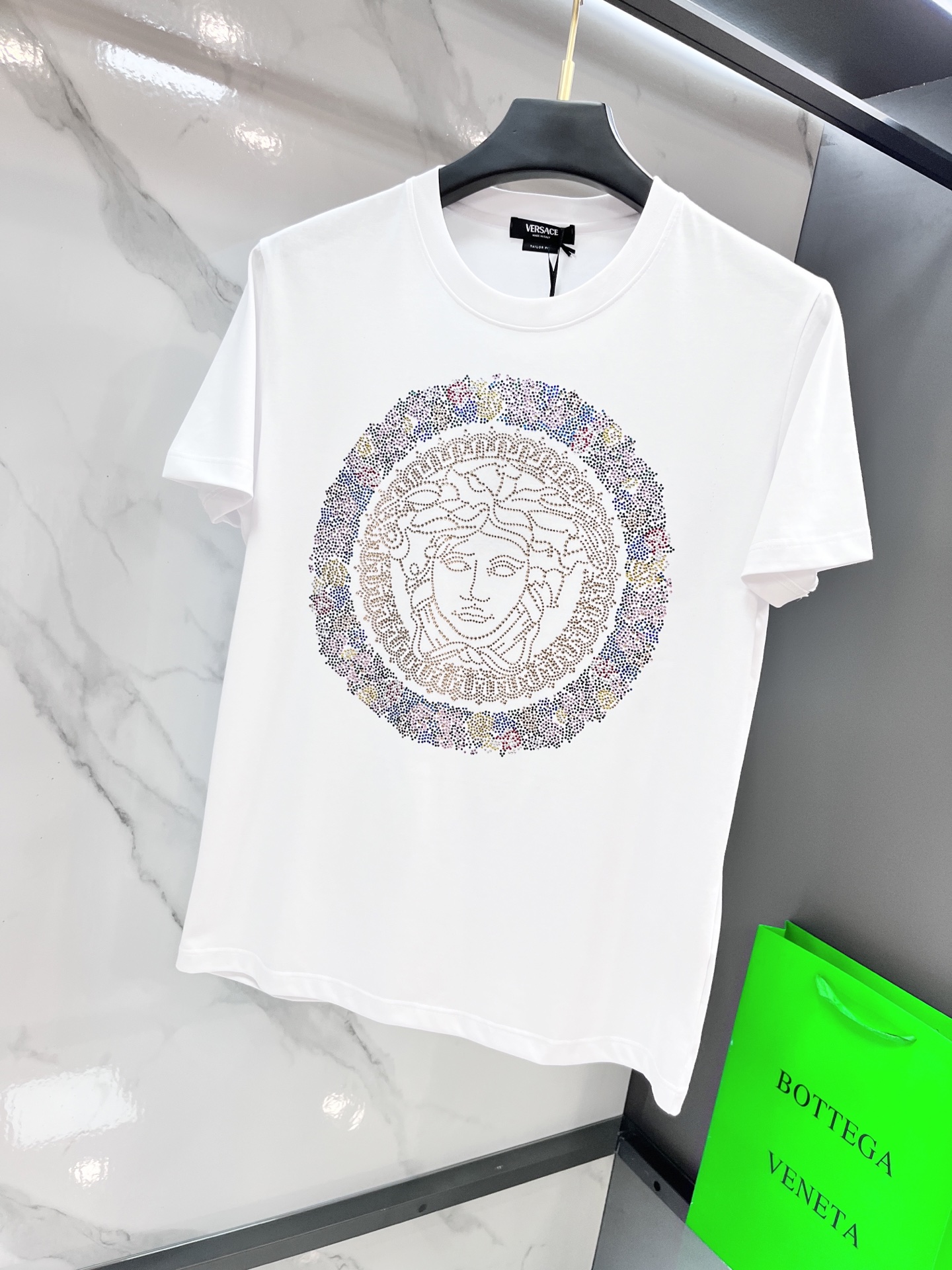 这款衣服是AAAAA 1:1 质量 (非常棒). 使用了和原版一模一样的材料. 商标部分也保持了和范思哲/Versace一样. 图片拍摄是实物衣服拍摄, 您所收到的实物保证和我们图片一模一样.