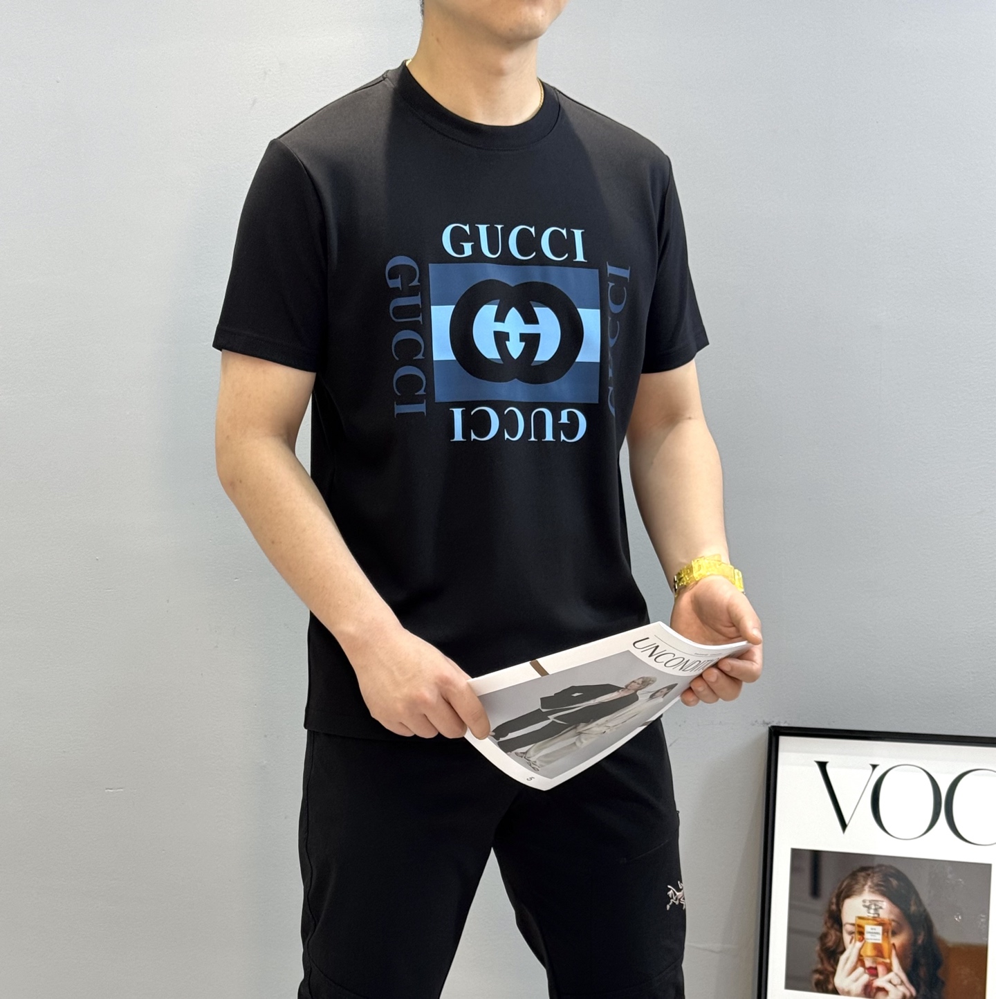 这款衣服是AAAAA 1:1 质量 (非常棒). 使用了和原版一模一样的材料. 商标部分也保持了和古奇/Gucci一样. 图片拍摄是实物衣服拍摄, 您所收到的实物保证和我们图片一模一样.