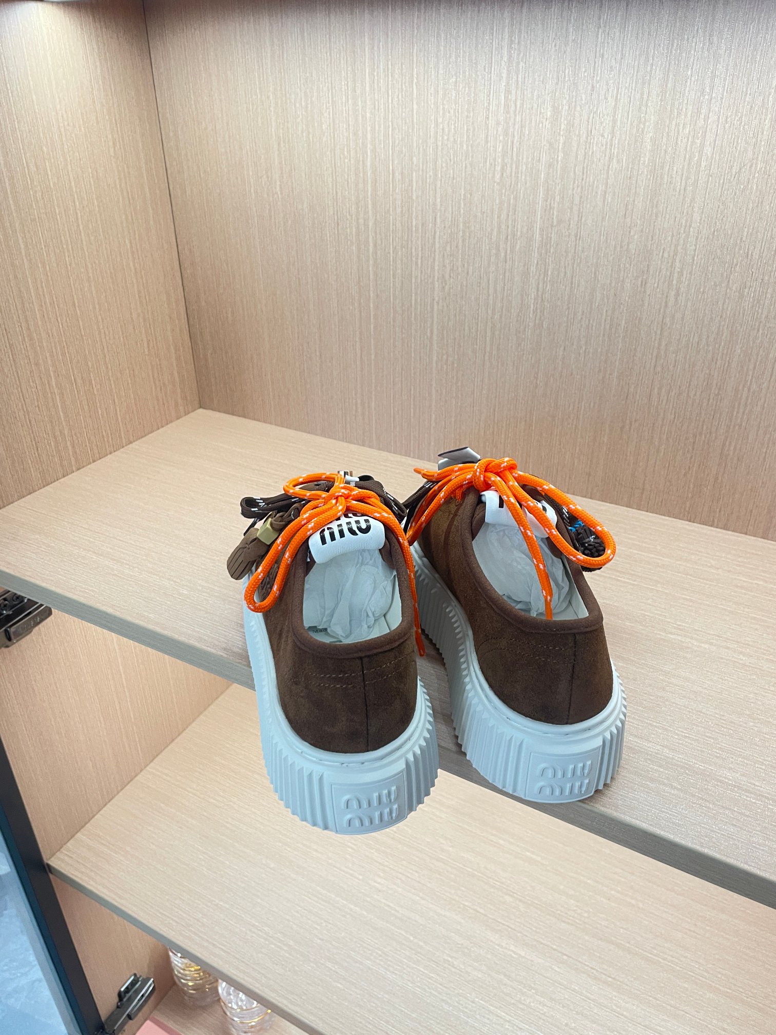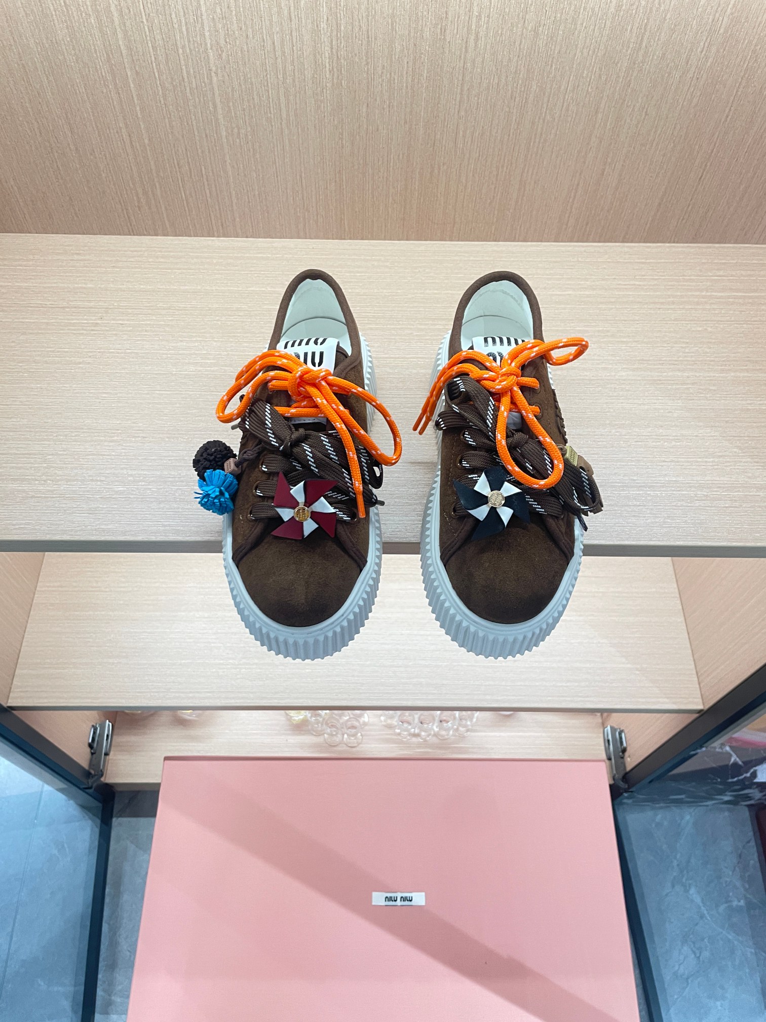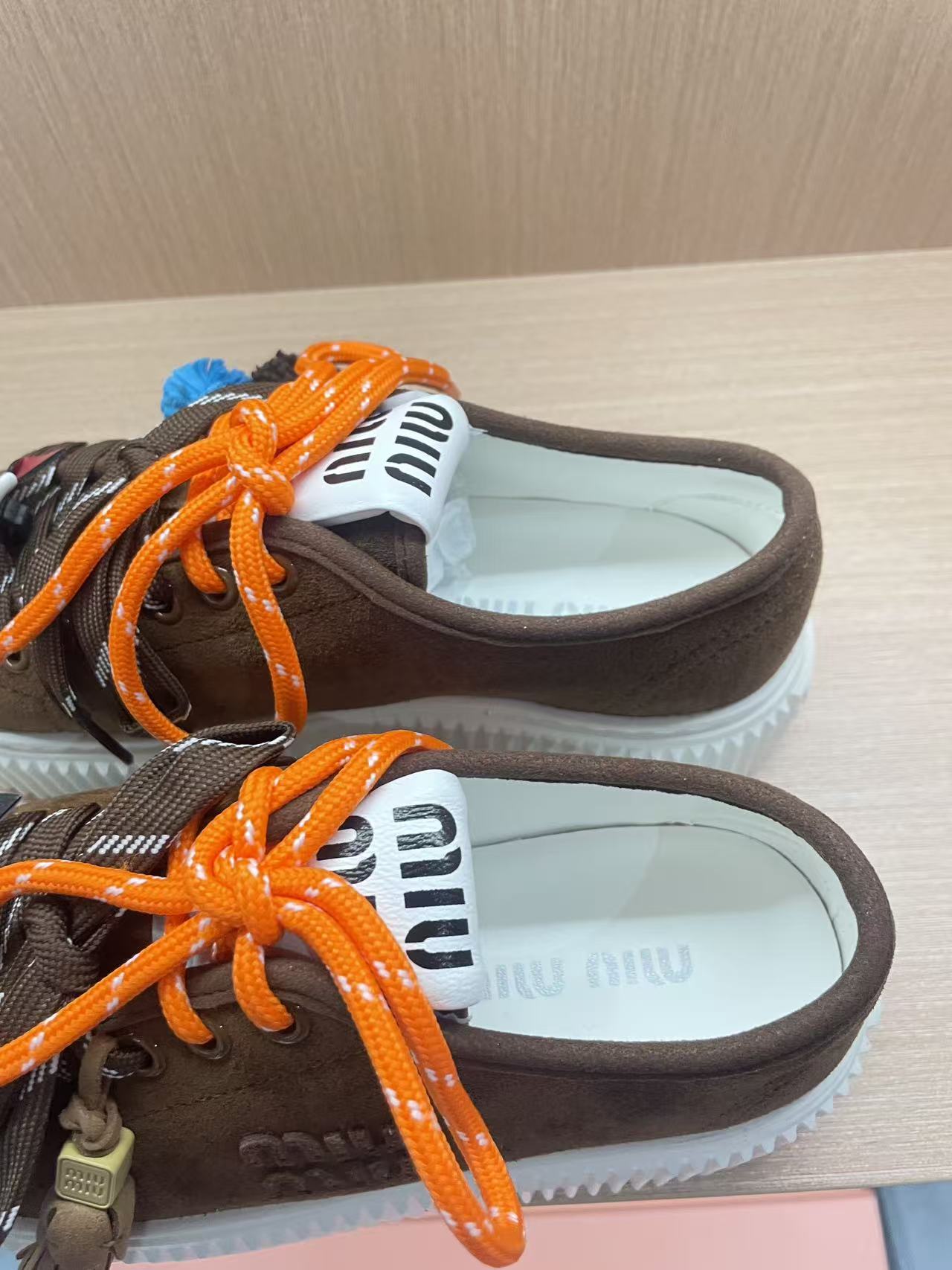 这款鞋子是AAAAA 1:1 质量 (非常棒). 使用了和原版一模一样的材料. 商标部分也保持了和缪缪/Miu Miu一样. 图片拍摄是实物鞋子拍摄, 您所收到的实物保证和我们图片一模一样.