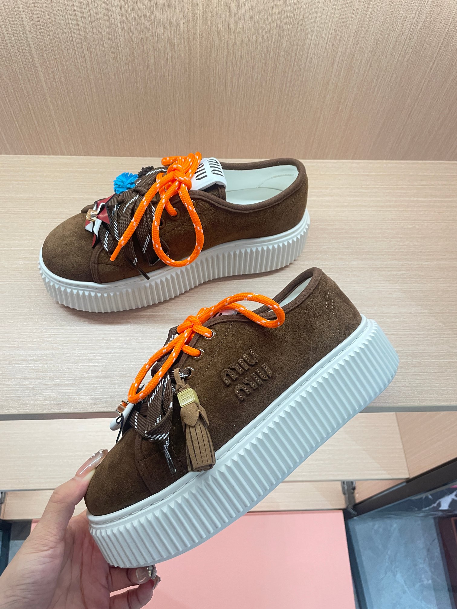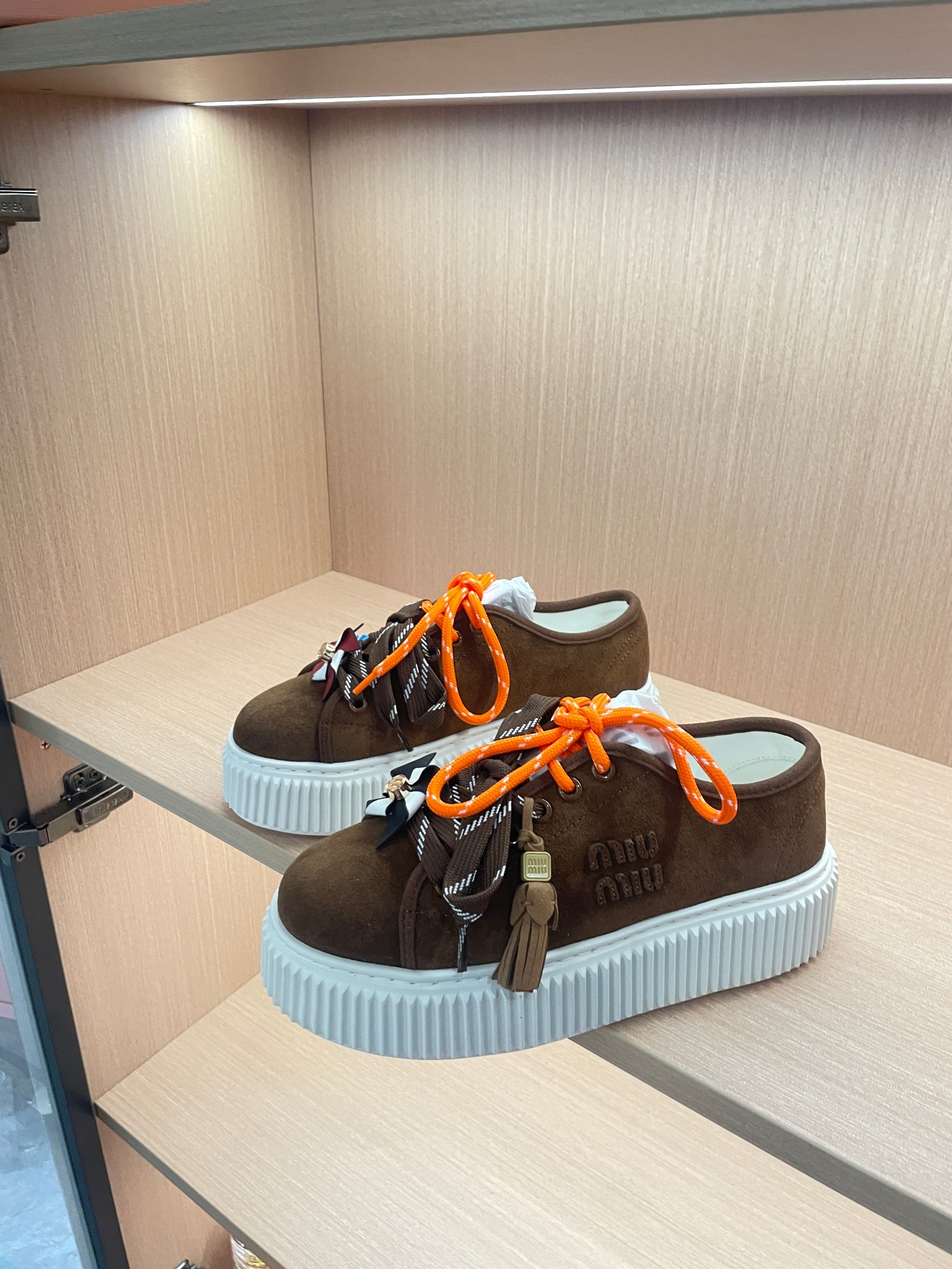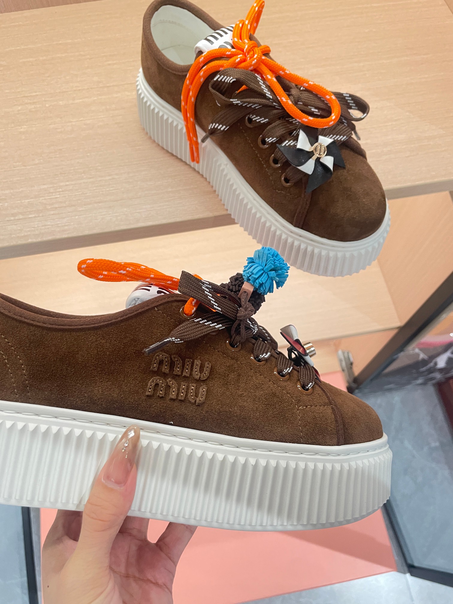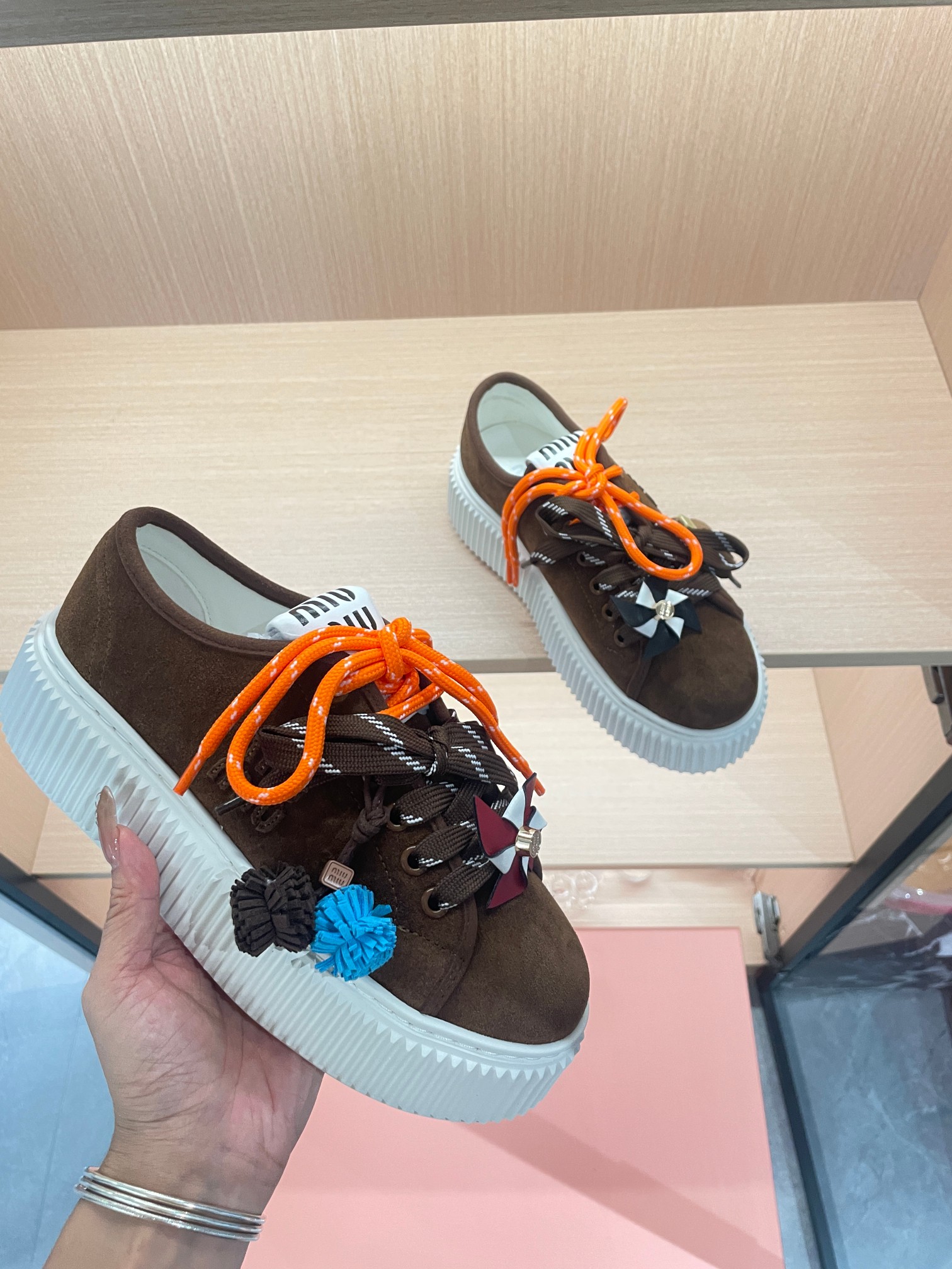 这款鞋子是AAAAA 1:1 质量 (非常棒). 使用了和原版一模一样的材料. 商标部分也保持了和缪缪/Miu Miu一样. 图片拍摄是实物鞋子拍摄, 您所收到的实物保证和我们图片一模一样.