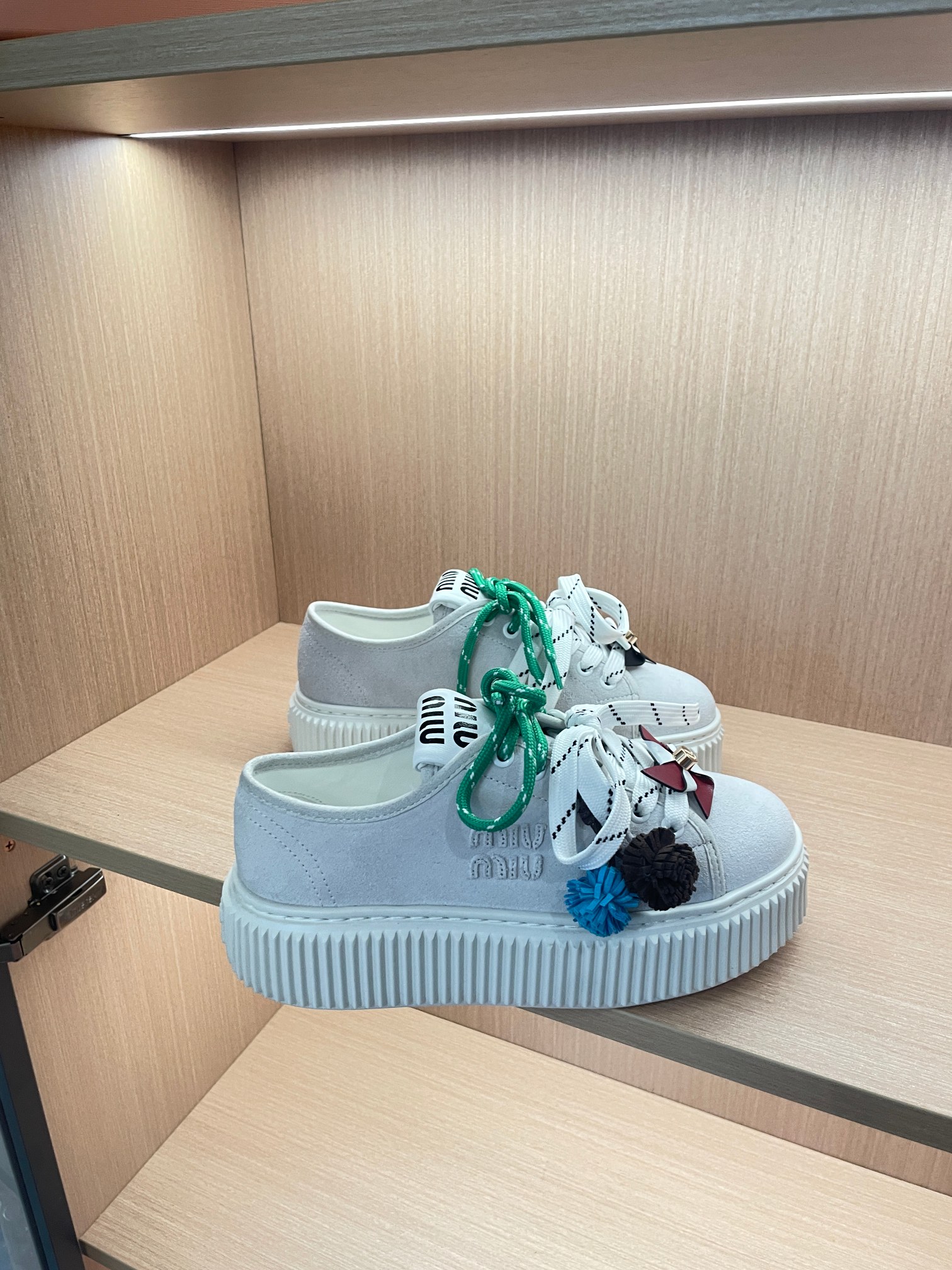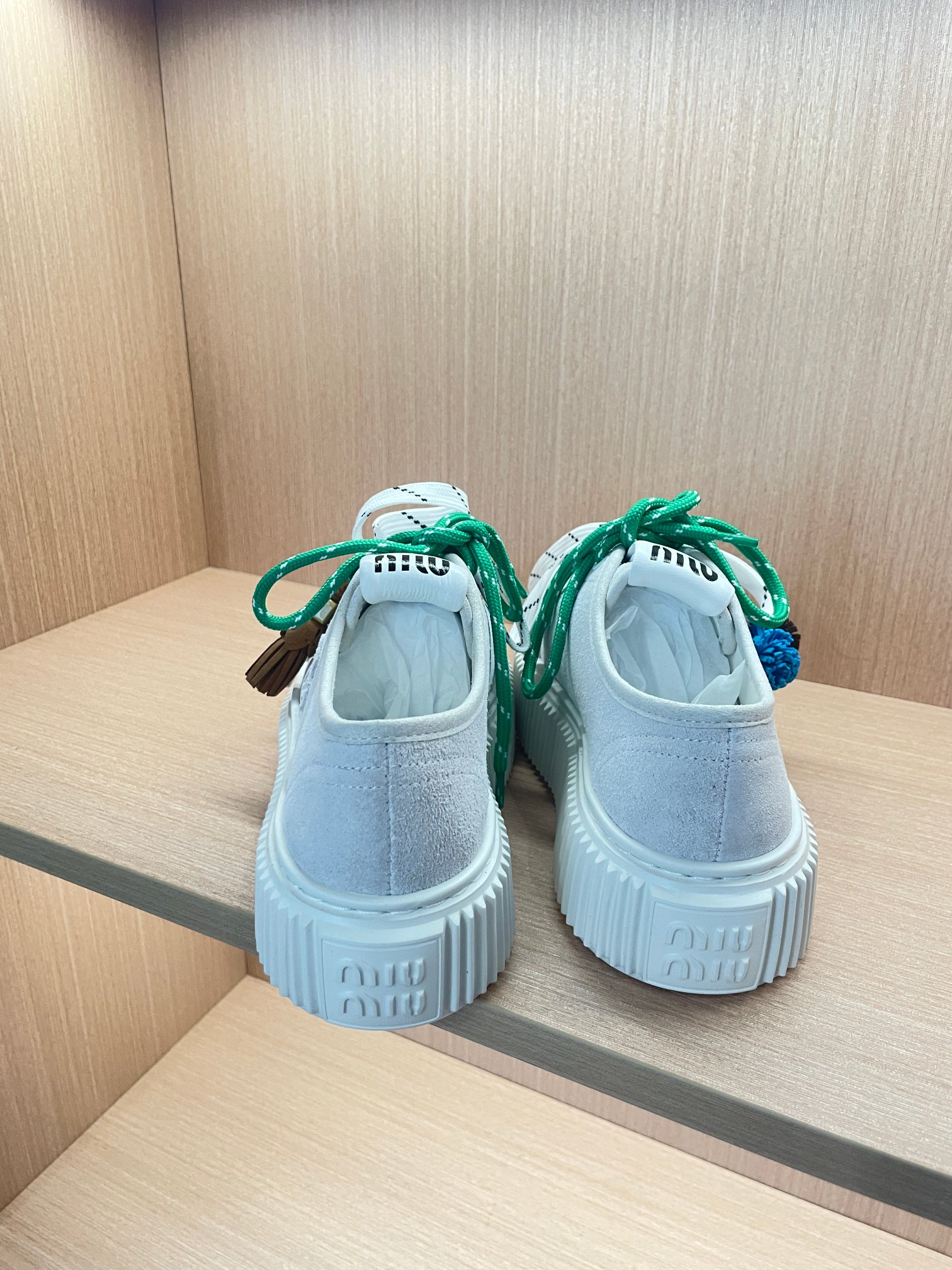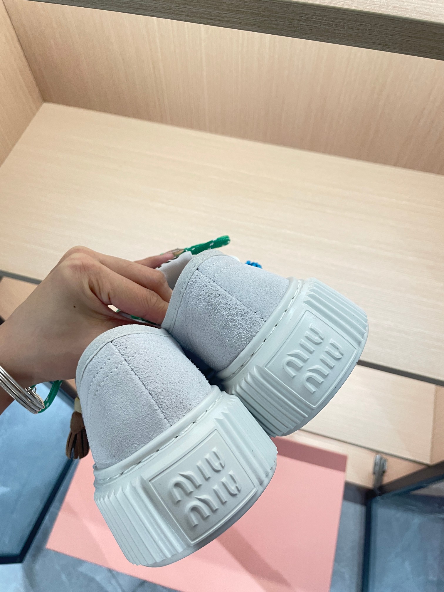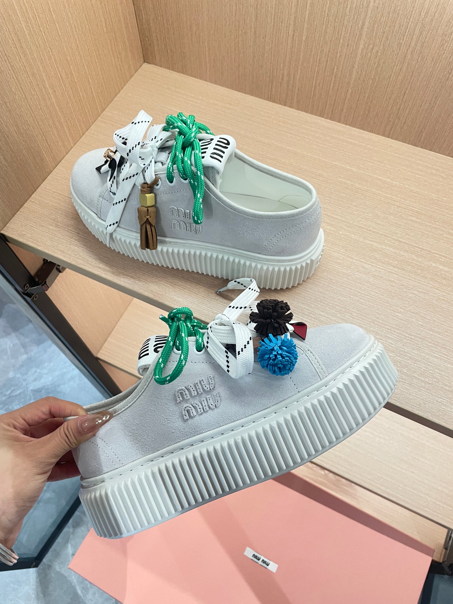 这款鞋子是AAAAA 1:1 质量 (非常棒). 使用了和原版一模一样的材料. 商标部分也保持了和缪缪/Miu Miu一样. 图片拍摄是实物鞋子拍摄, 您所收到的实物保证和我们图片一模一样.