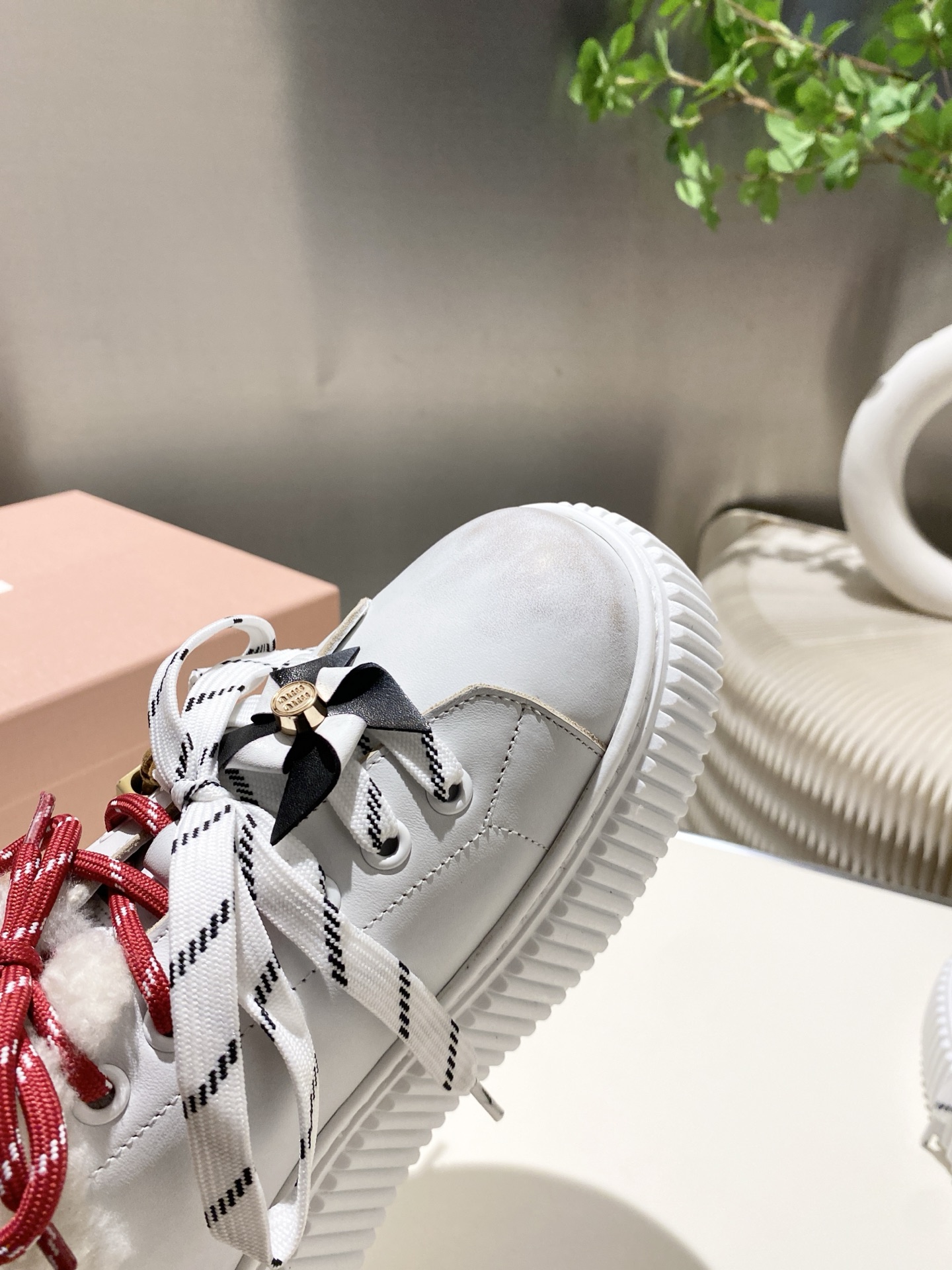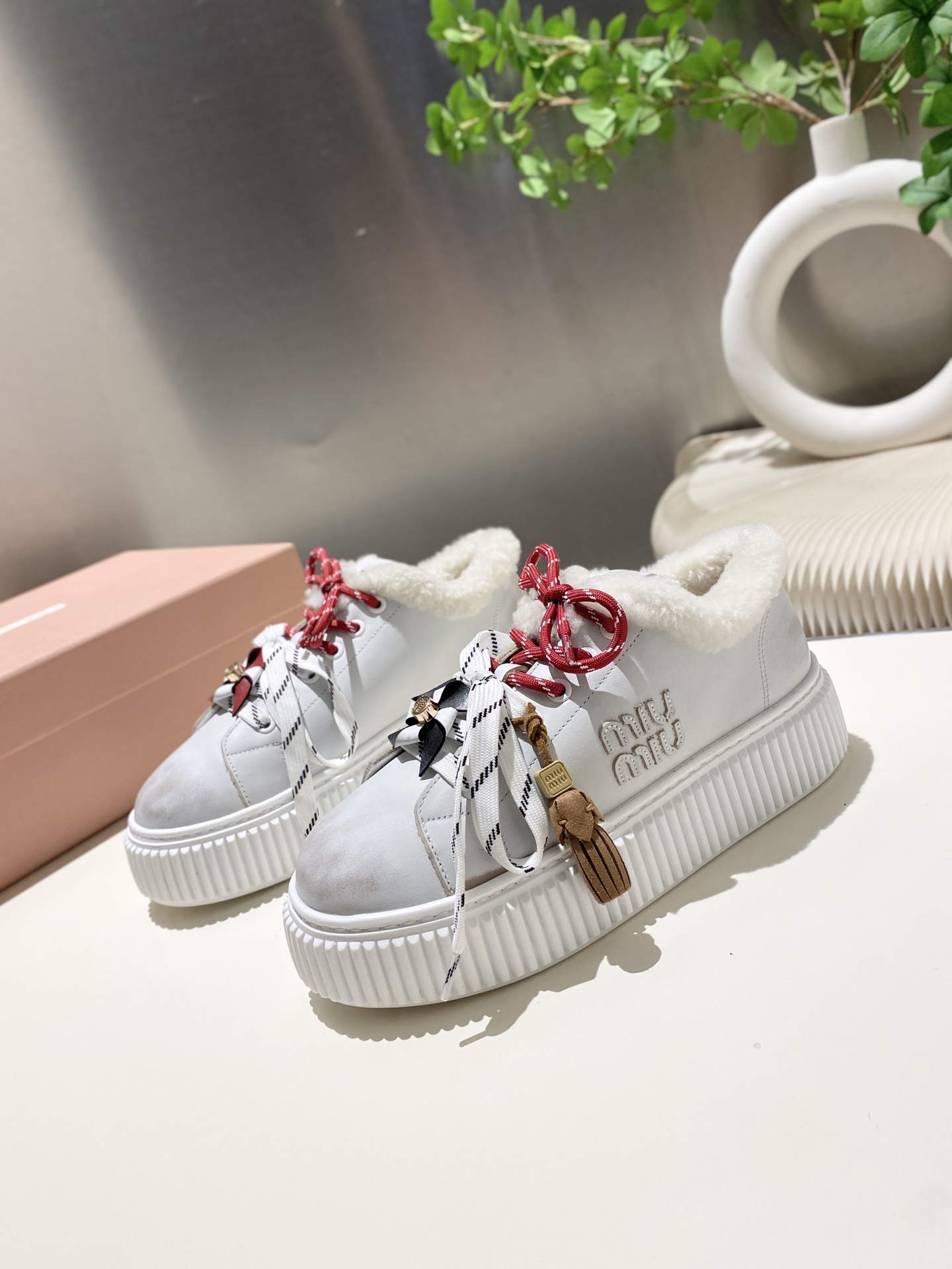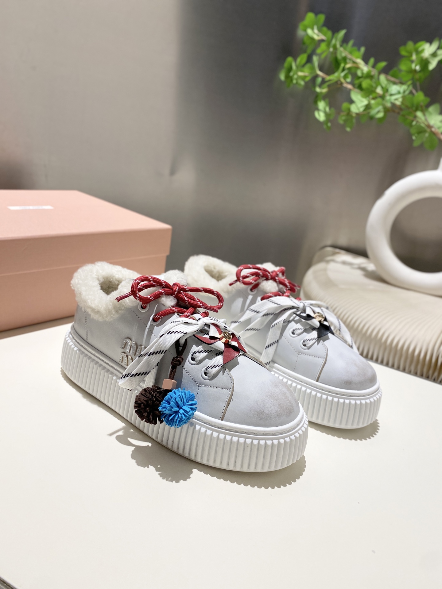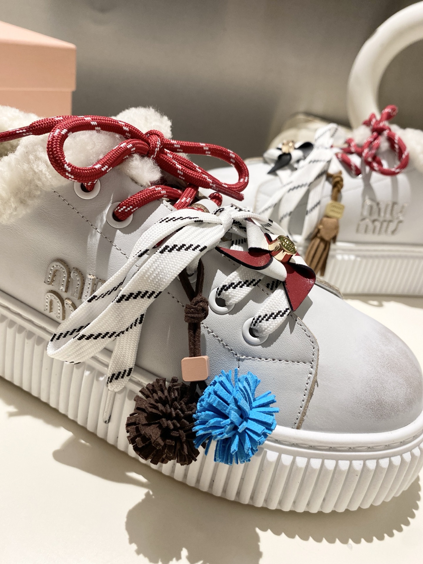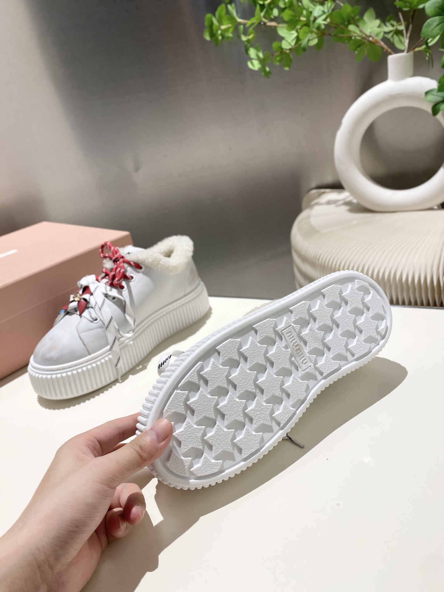 这款鞋子是AAAAA 1:1 质量 (非常棒). 使用了和原版一模一样的材料. 商标部分也保持了和缪缪/Miu Miu一样. 图片拍摄是实物鞋子拍摄, 您所收到的实物保证和我们图片一模一样.