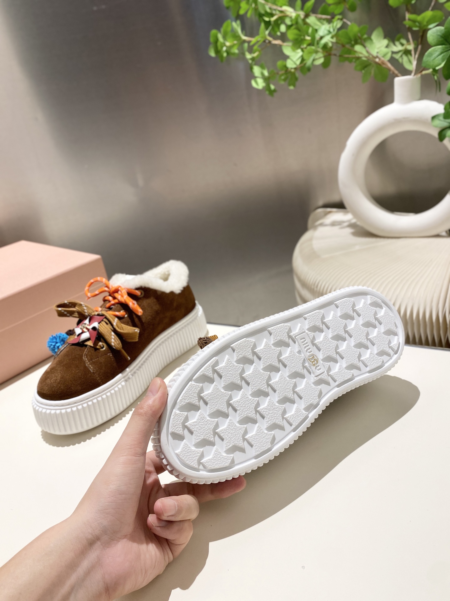 这款鞋子是AAAAA 1:1 质量 (非常棒). 使用了和原版一模一样的材料. 商标部分也保持了和缪缪/Miu Miu一样. 图片拍摄是实物鞋子拍摄, 您所收到的实物保证和我们图片一模一样.