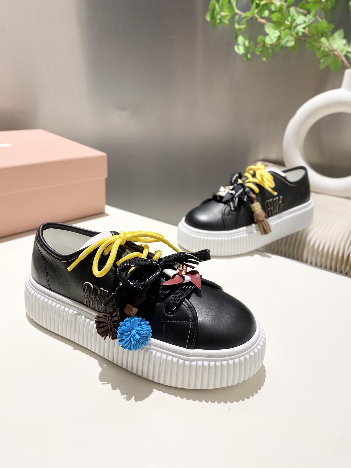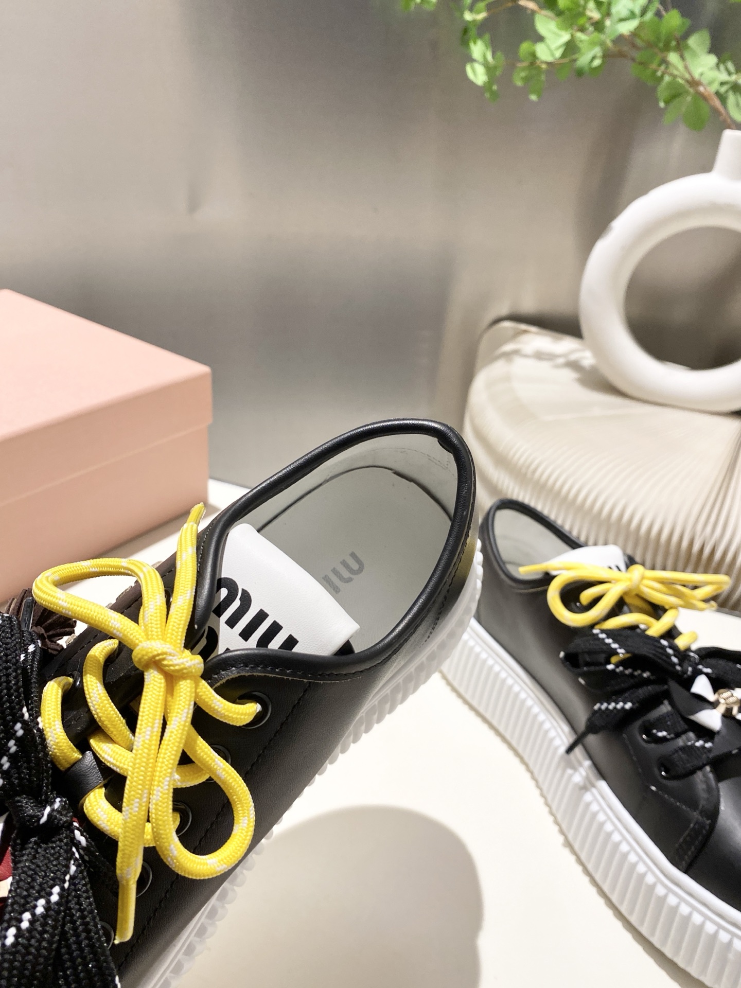 这款鞋子是AAAAA 1:1 质量 (非常棒). 使用了和原版一模一样的材料. 商标部分也保持了和缪缪/Miu Miu一样. 图片拍摄是实物鞋子拍摄, 您所收到的实物保证和我们图片一模一样.