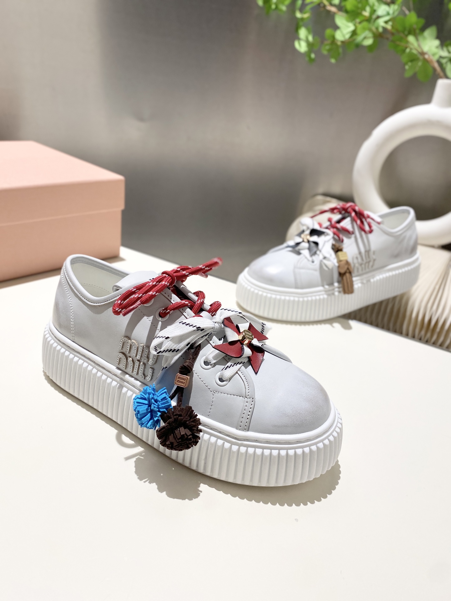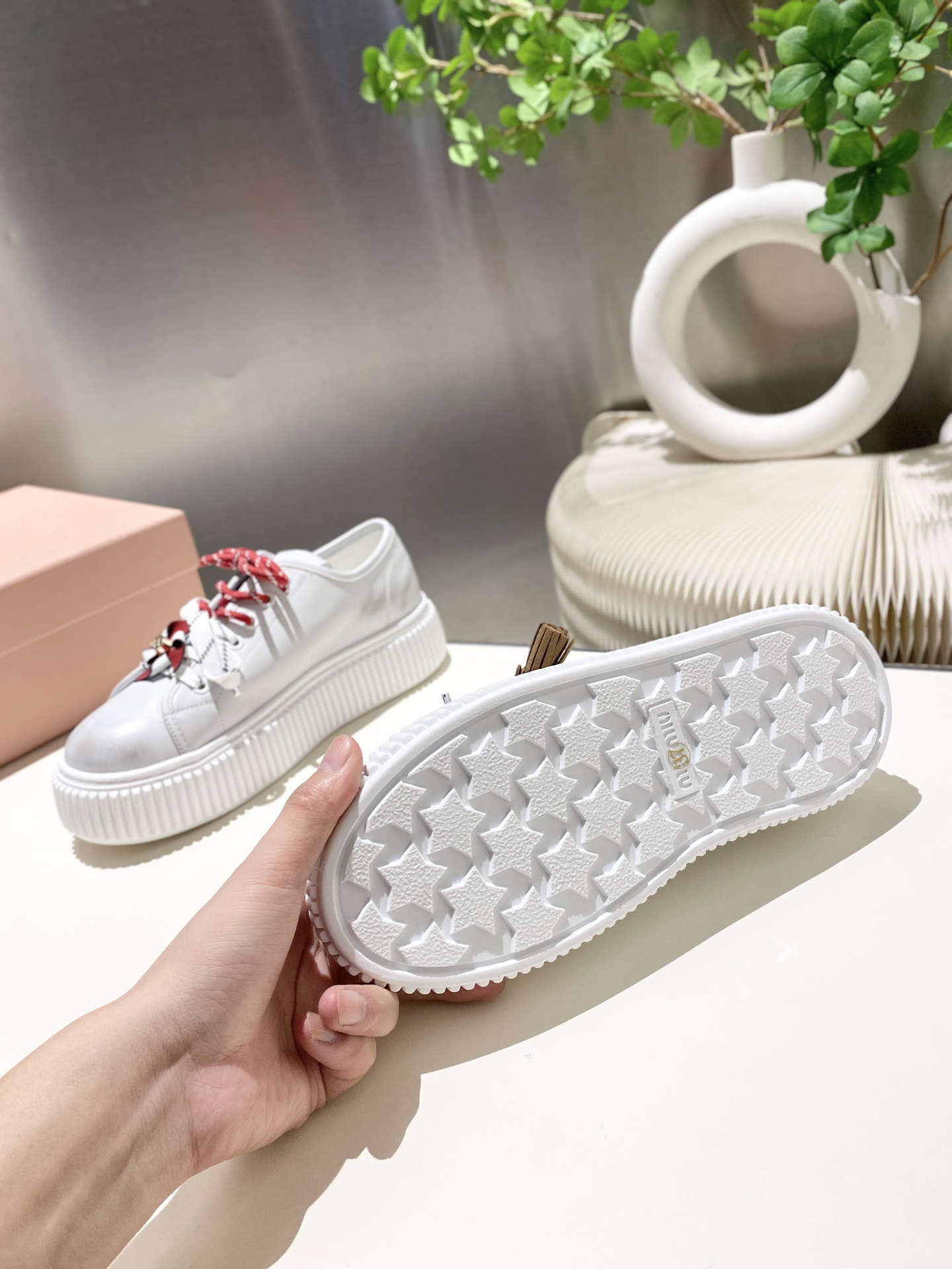 这款鞋子是AAAAA 1:1 质量 (非常棒). 使用了和原版一模一样的材料. 商标部分也保持了和缪缪/Miu Miu一样. 图片拍摄是实物鞋子拍摄, 您所收到的实物保证和我们图片一模一样.