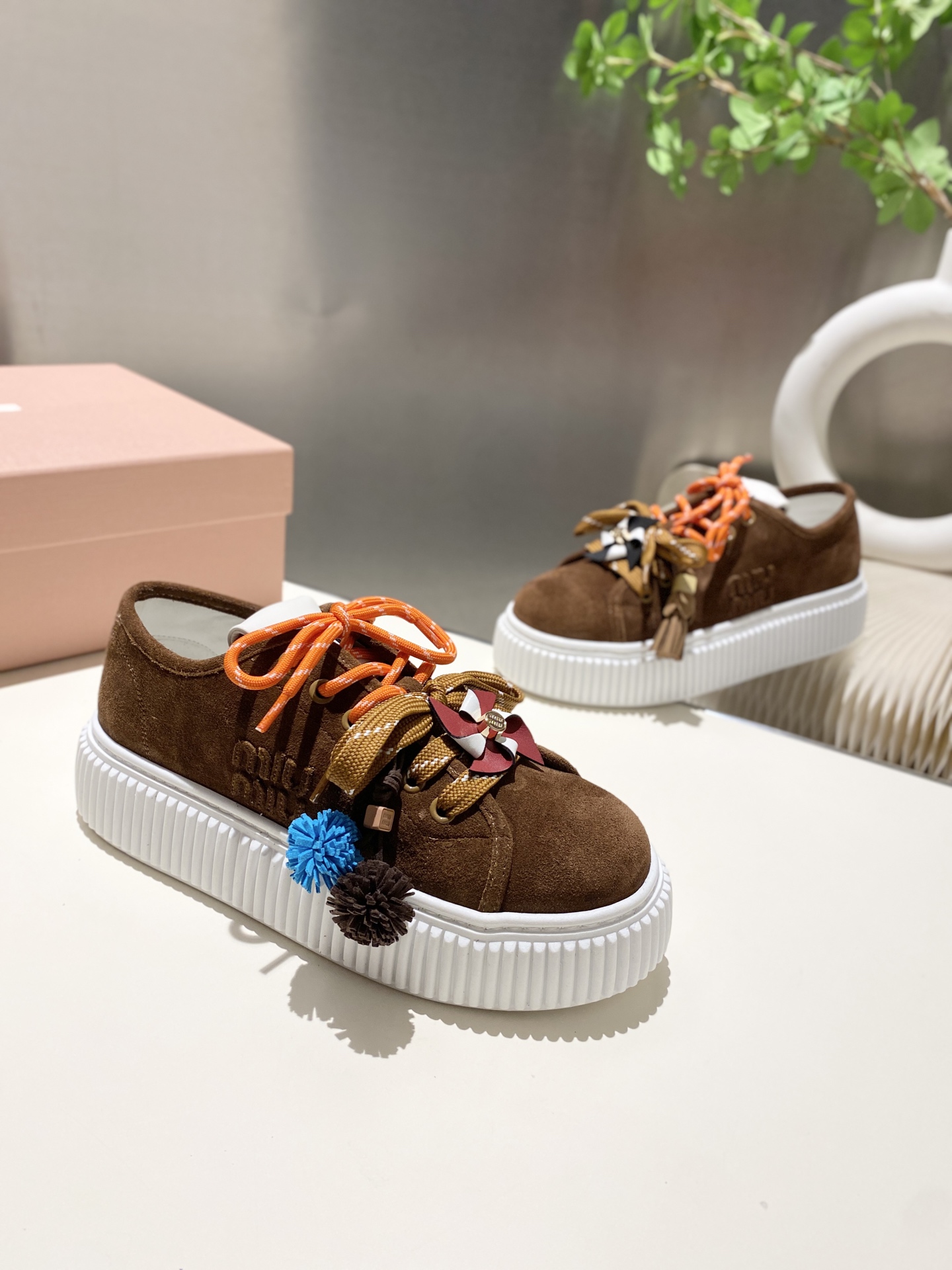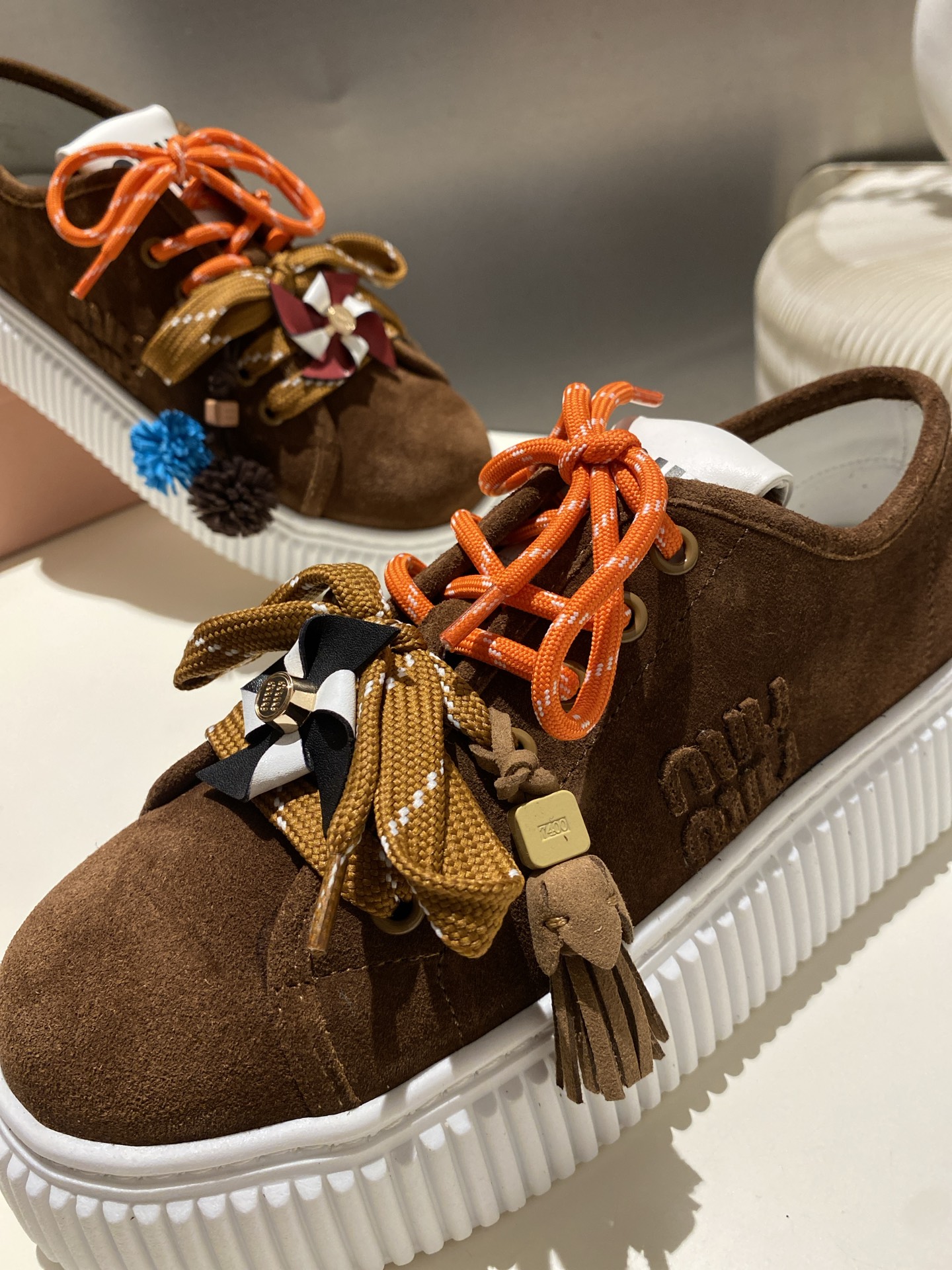 这款鞋子是AAAAA 1:1 质量 (非常棒). 使用了和原版一模一样的材料. 商标部分也保持了和缪缪/Miu Miu一样. 图片拍摄是实物鞋子拍摄, 您所收到的实物保证和我们图片一模一样.