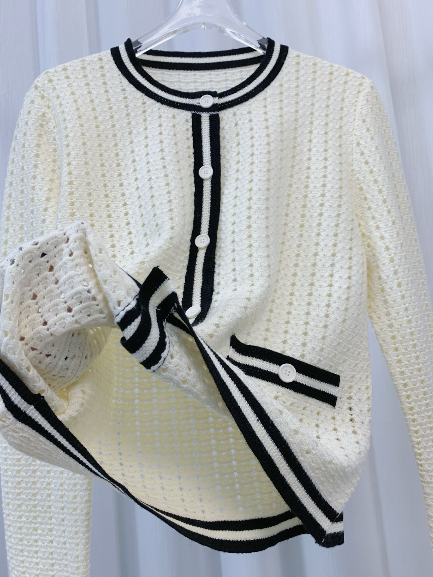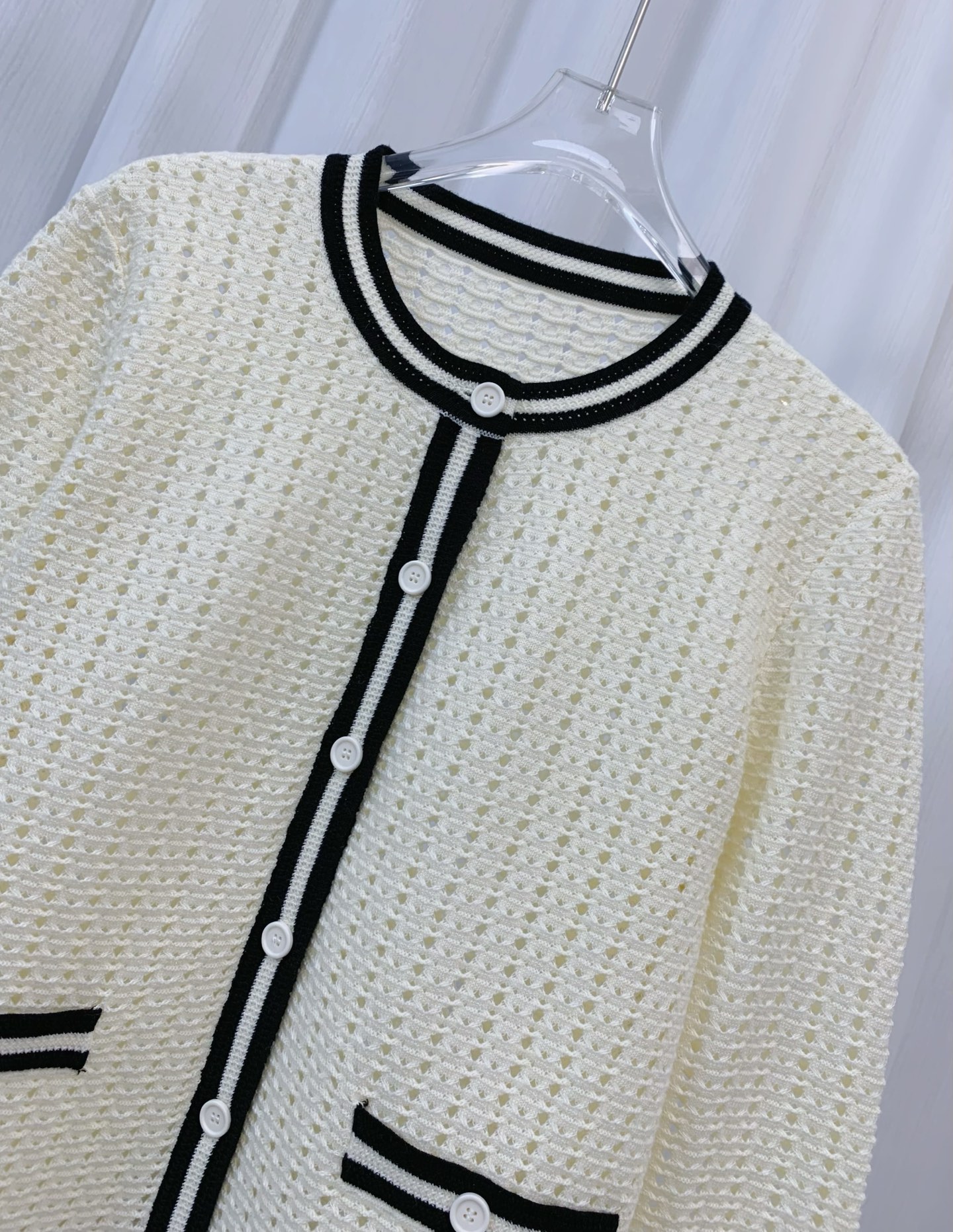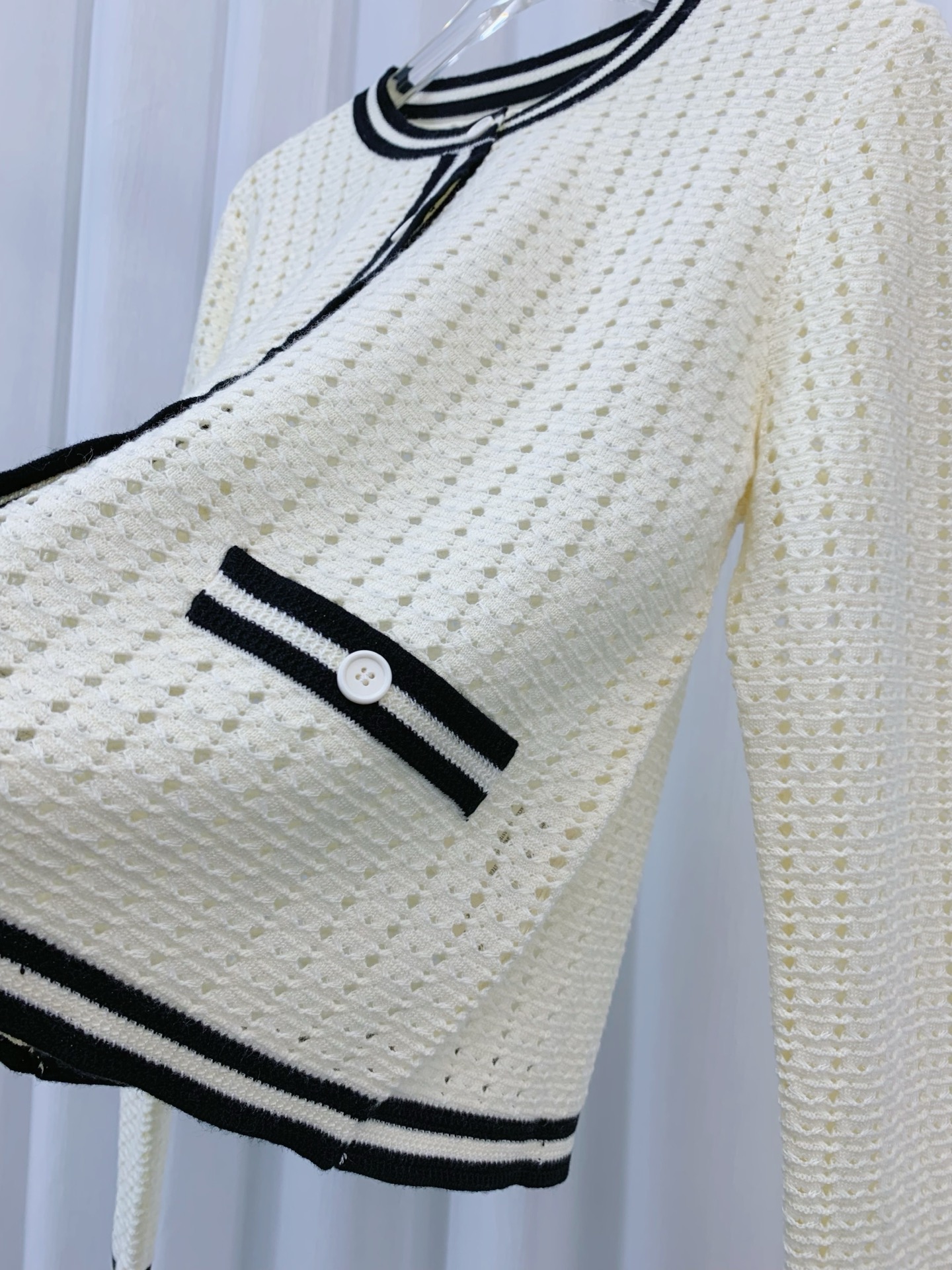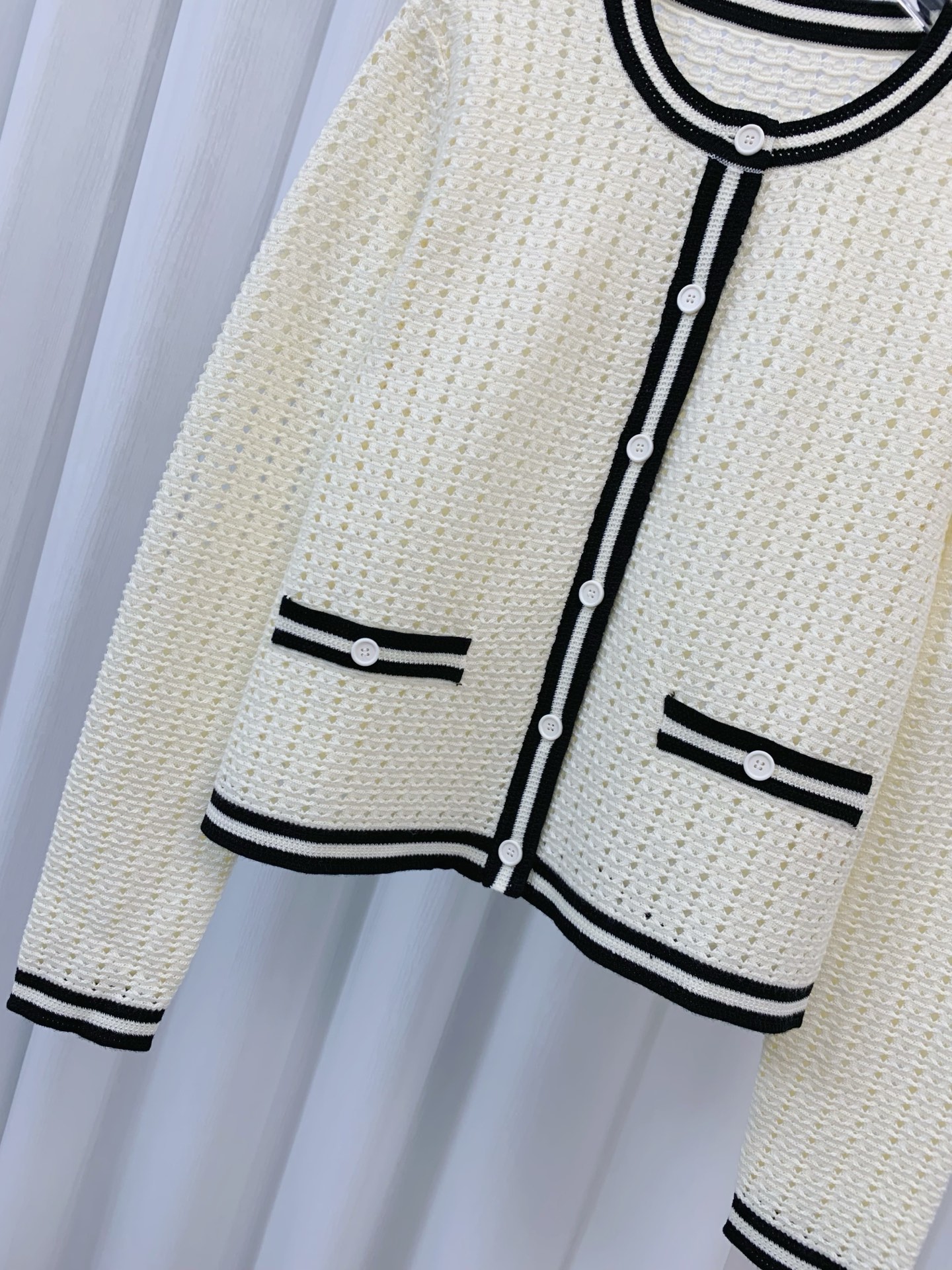 这款衣服是AAAAA 1:1 质量 (非常棒). 使用了和原版一模一样的材料. 商标部分也保持了和香奈儿/Chanel一样. 图片拍摄是实物衣服拍摄, 您所收到的实物保证和我们图片一模一样.