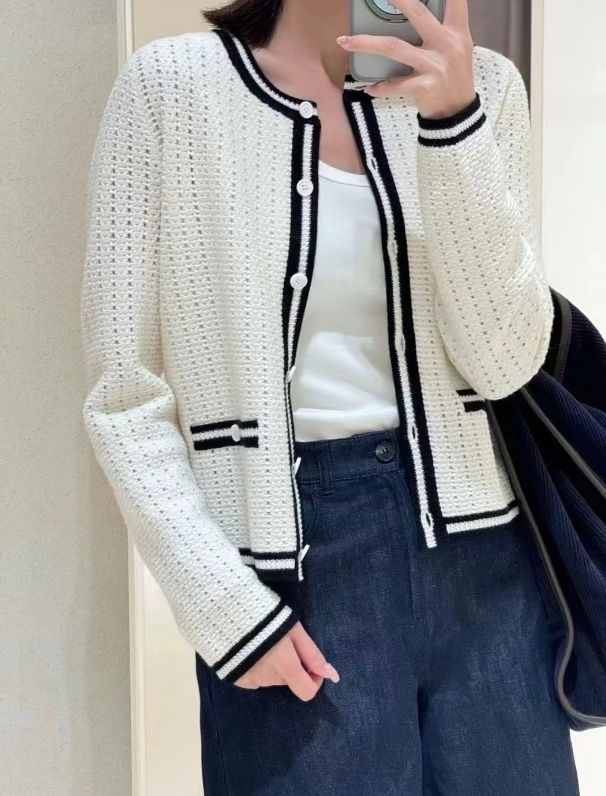 这款衣服是AAAAA 1:1 质量 (非常棒). 使用了和原版一模一样的材料. 商标部分也保持了和香奈儿/Chanel一样. 图片拍摄是实物衣服拍摄, 您所收到的实物保证和我们图片一模一样.