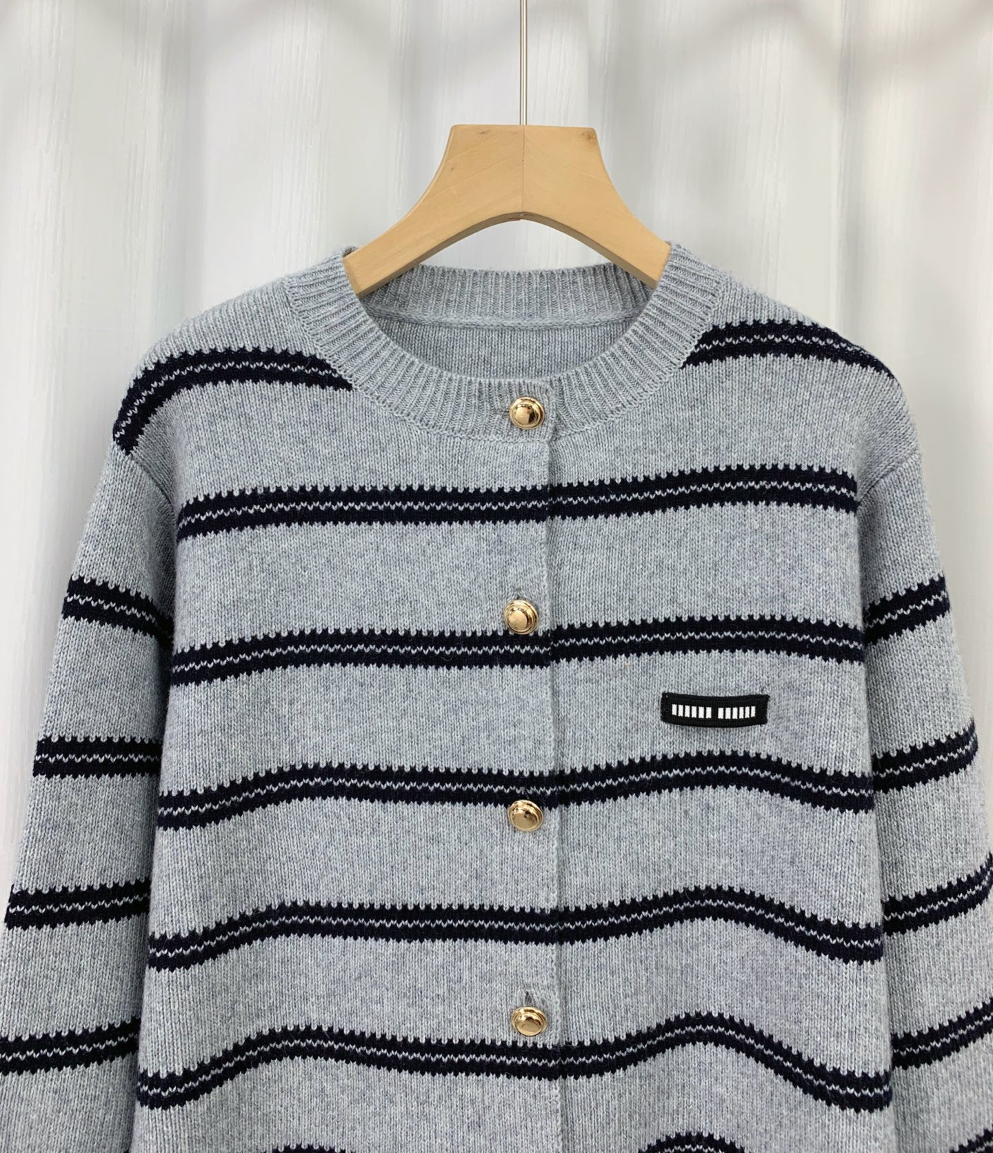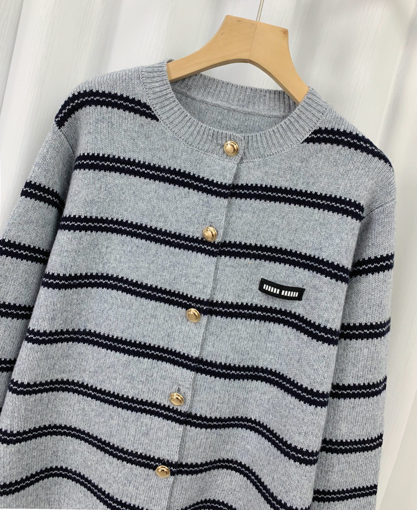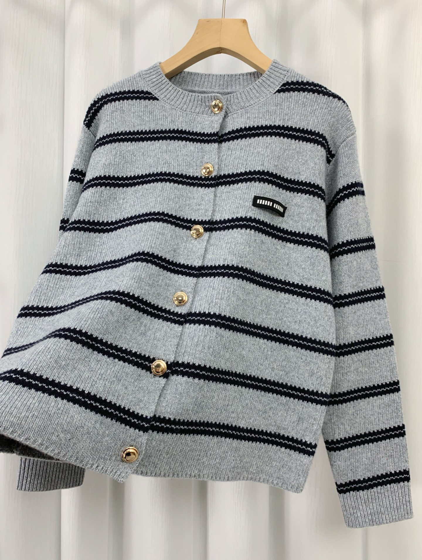 这款衣服是AAAAA 1:1 质量 (非常棒). 使用了和原版一模一样的材料. 商标部分也保持了和缪缪/Miu Miu一样. 图片拍摄是实物衣服拍摄, 您所收到的实物保证和我们图片一模一样.