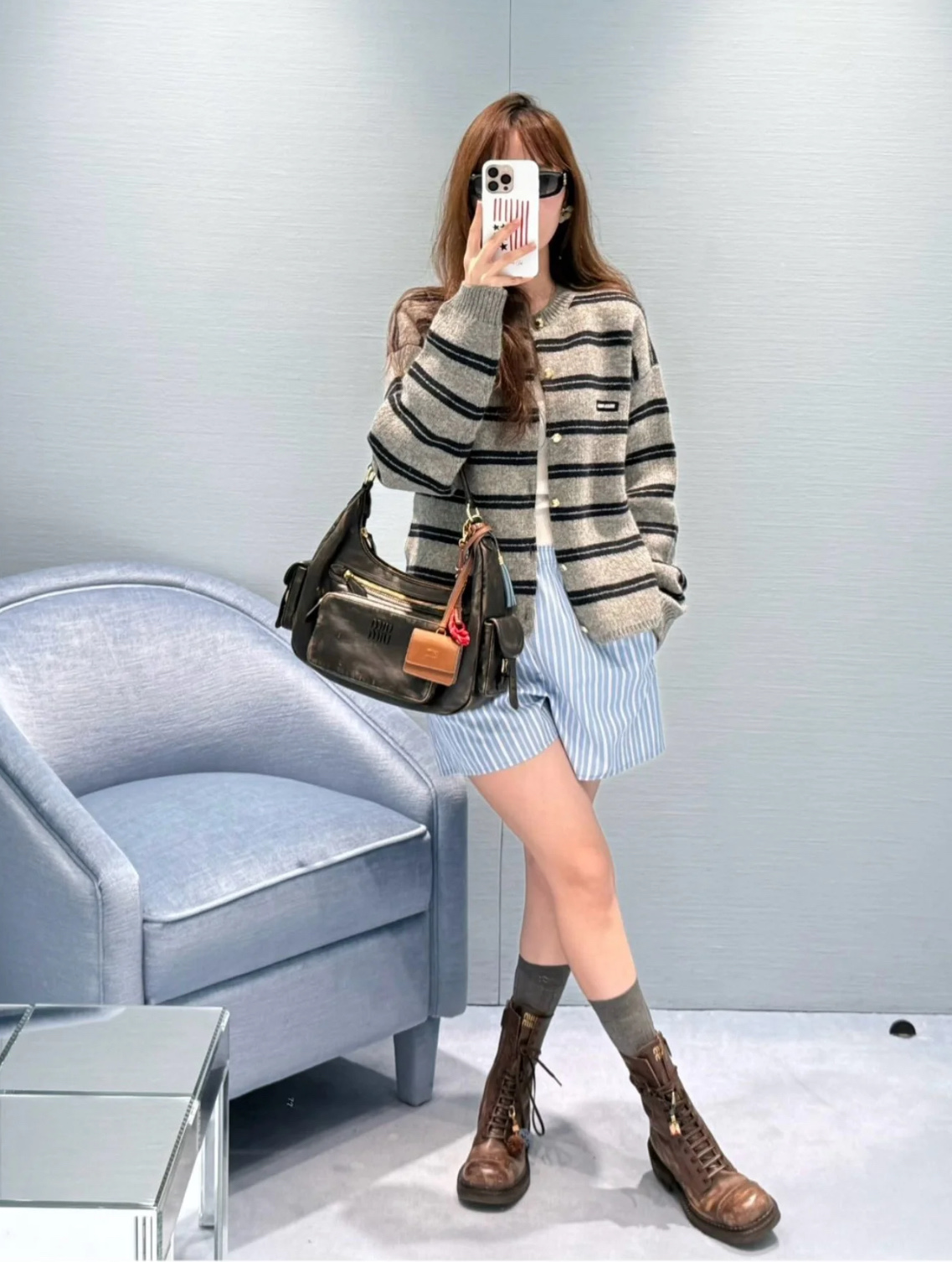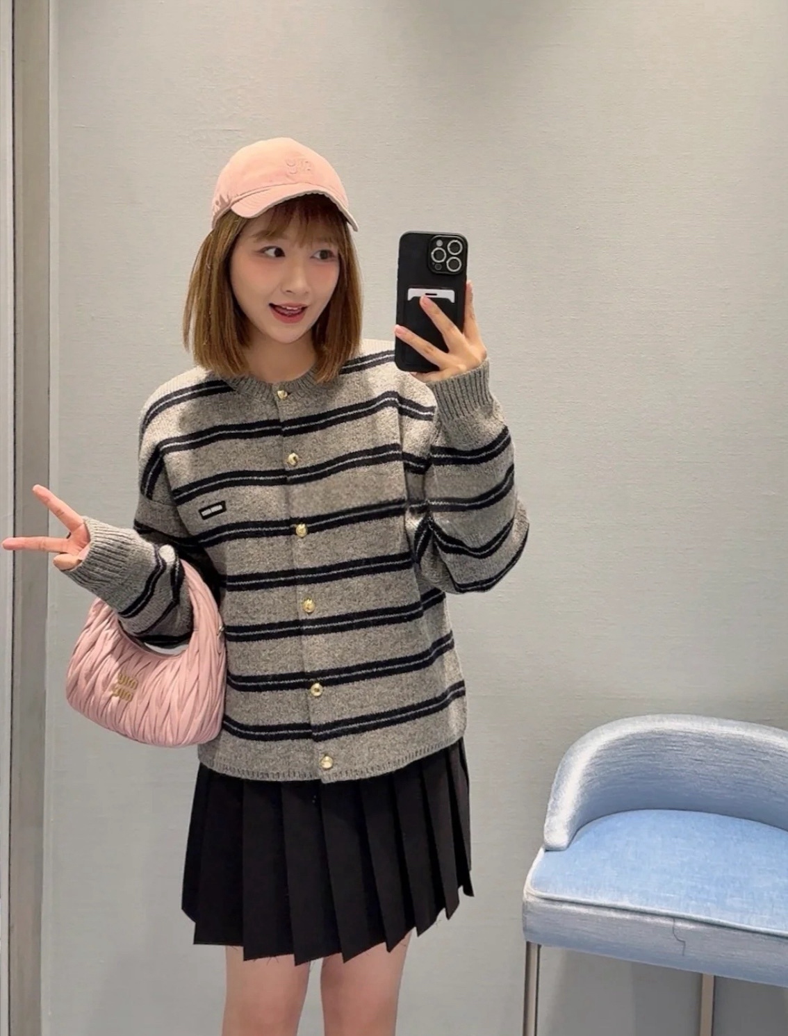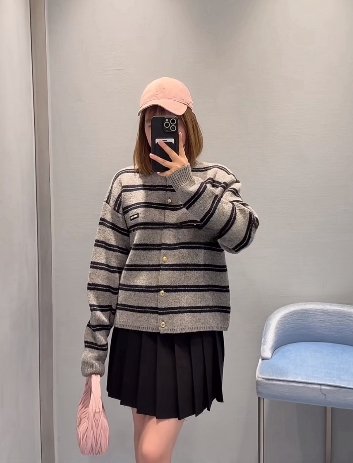 这款衣服是AAAAA 1:1 质量 (非常棒). 使用了和原版一模一样的材料. 商标部分也保持了和缪缪/Miu Miu一样. 图片拍摄是实物衣服拍摄, 您所收到的实物保证和我们图片一模一样.