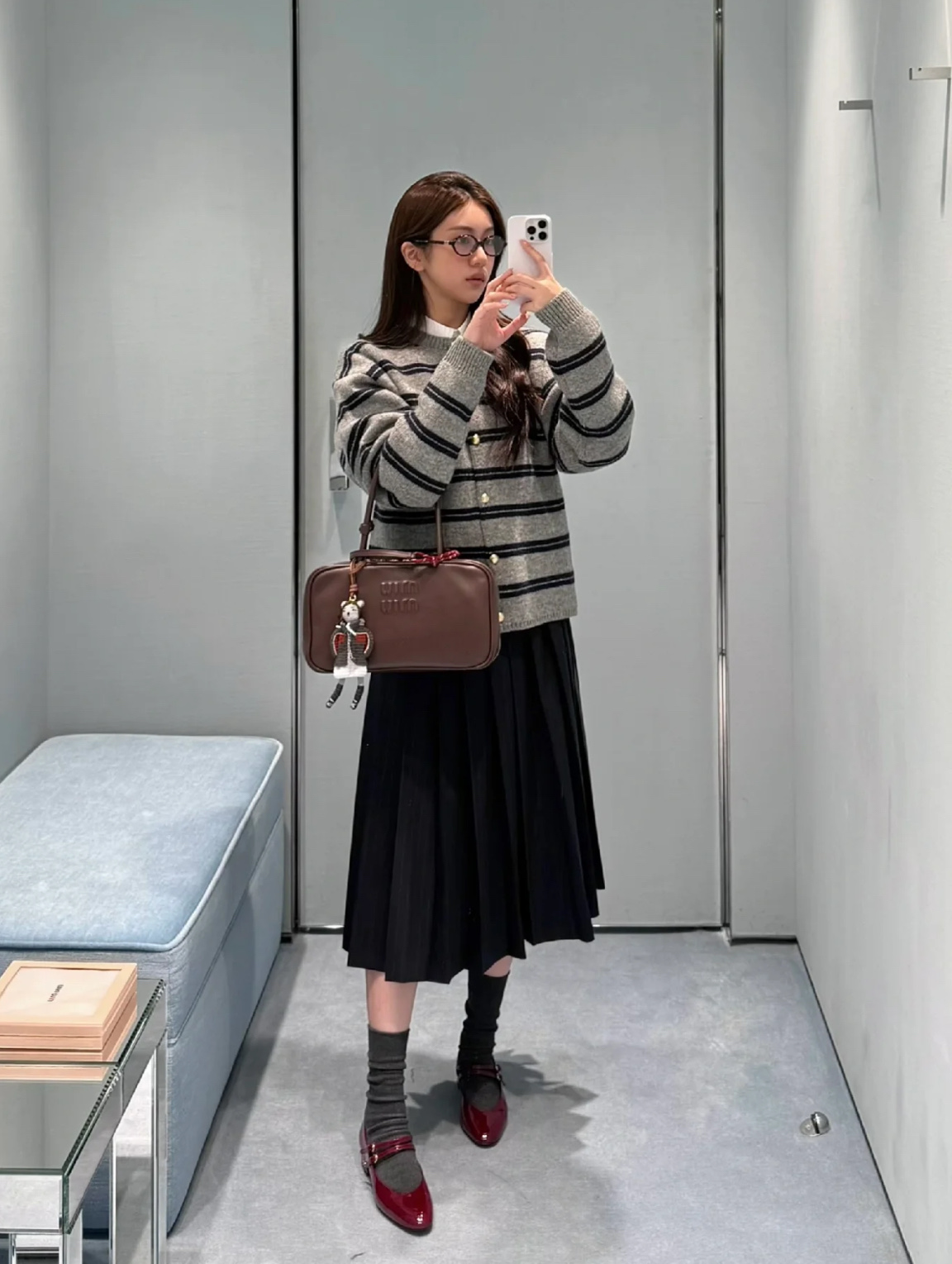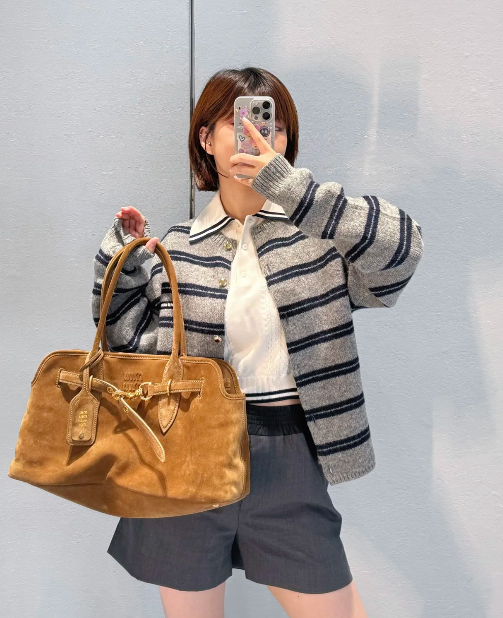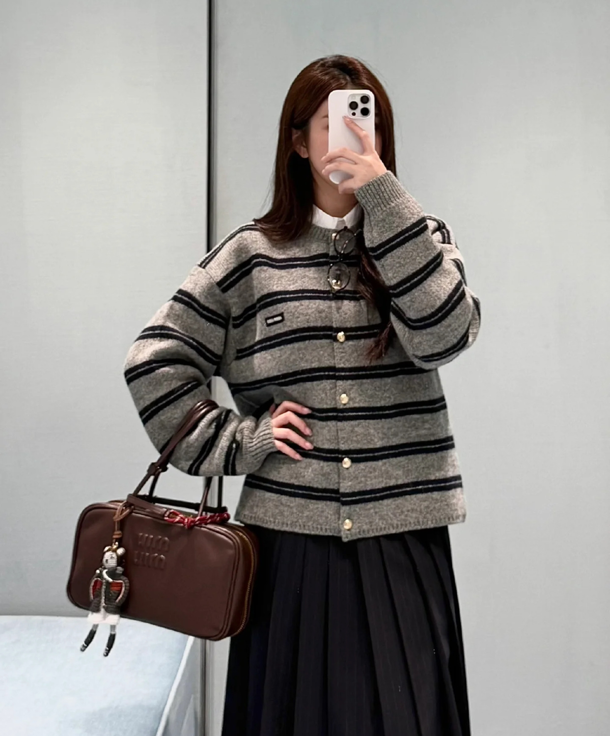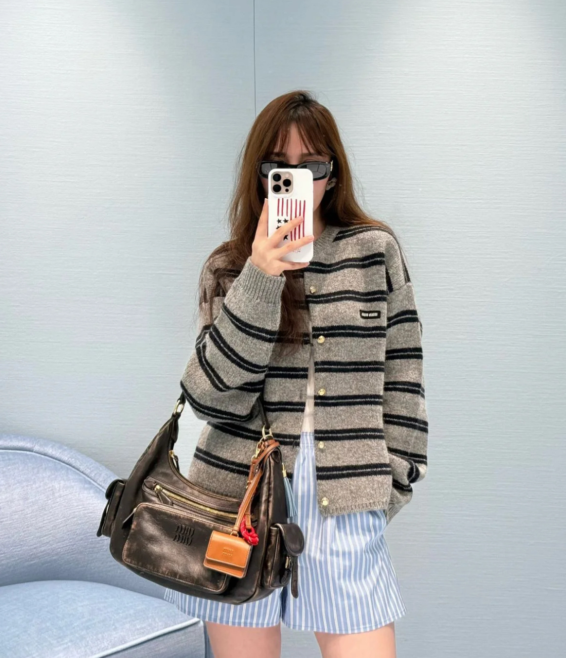 这款衣服是AAAAA 1:1 质量 (非常棒). 使用了和原版一模一样的材料. 商标部分也保持了和缪缪/Miu Miu一样. 图片拍摄是实物衣服拍摄, 您所收到的实物保证和我们图片一模一样.