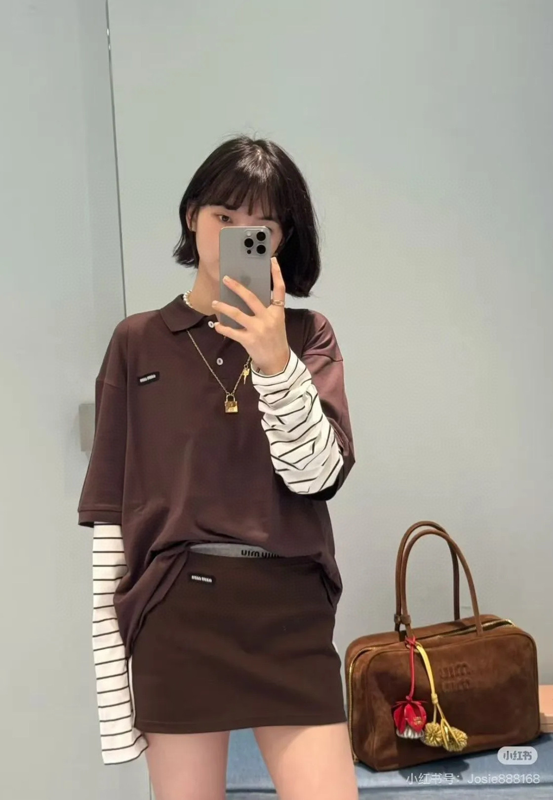 这款衣服是AAAAA 1:1 质量 (非常棒). 使用了和原版一模一样的材料. 商标部分也保持了和缪缪/Miu Miu一样. 图片拍摄是实物衣服拍摄, 您所收到的实物保证和我们图片一模一样.