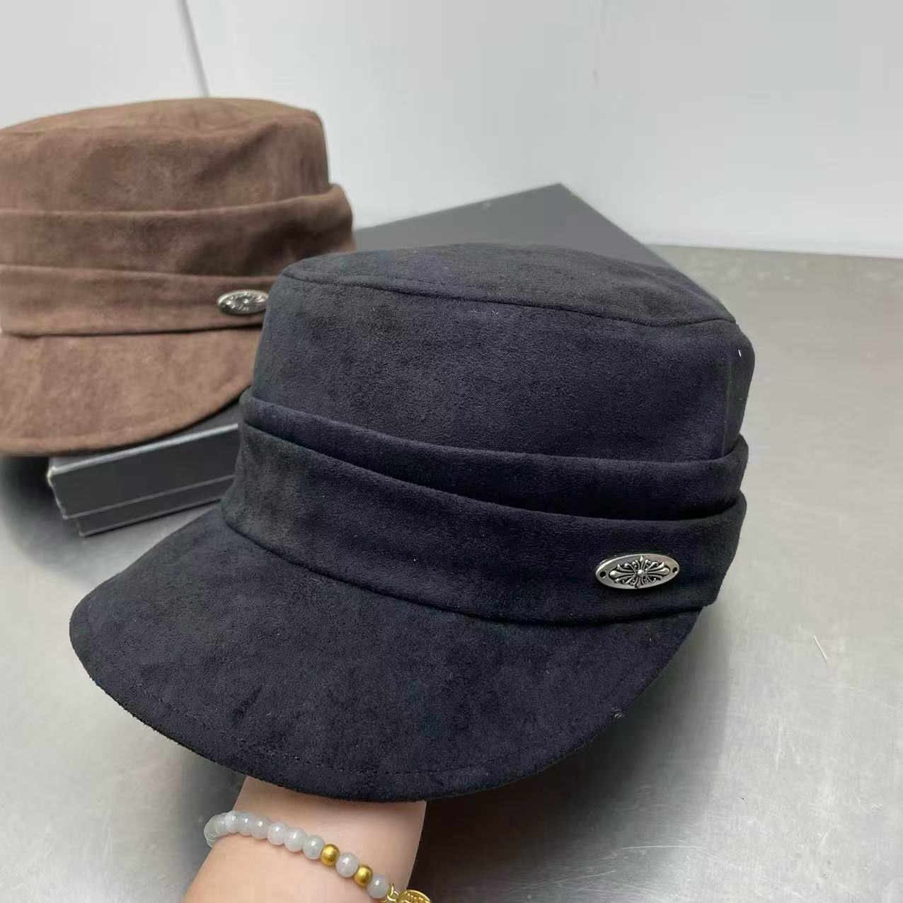 这款帽子是AAAAA 1:1 质量 (非常棒). 使用了和原版一模一样的材料. 商标部分也保持了和克罗心/Chrome Hearts一样. 图片拍摄是实物帽子拍摄, 您所收到的实物保证和我们图片一模一样.