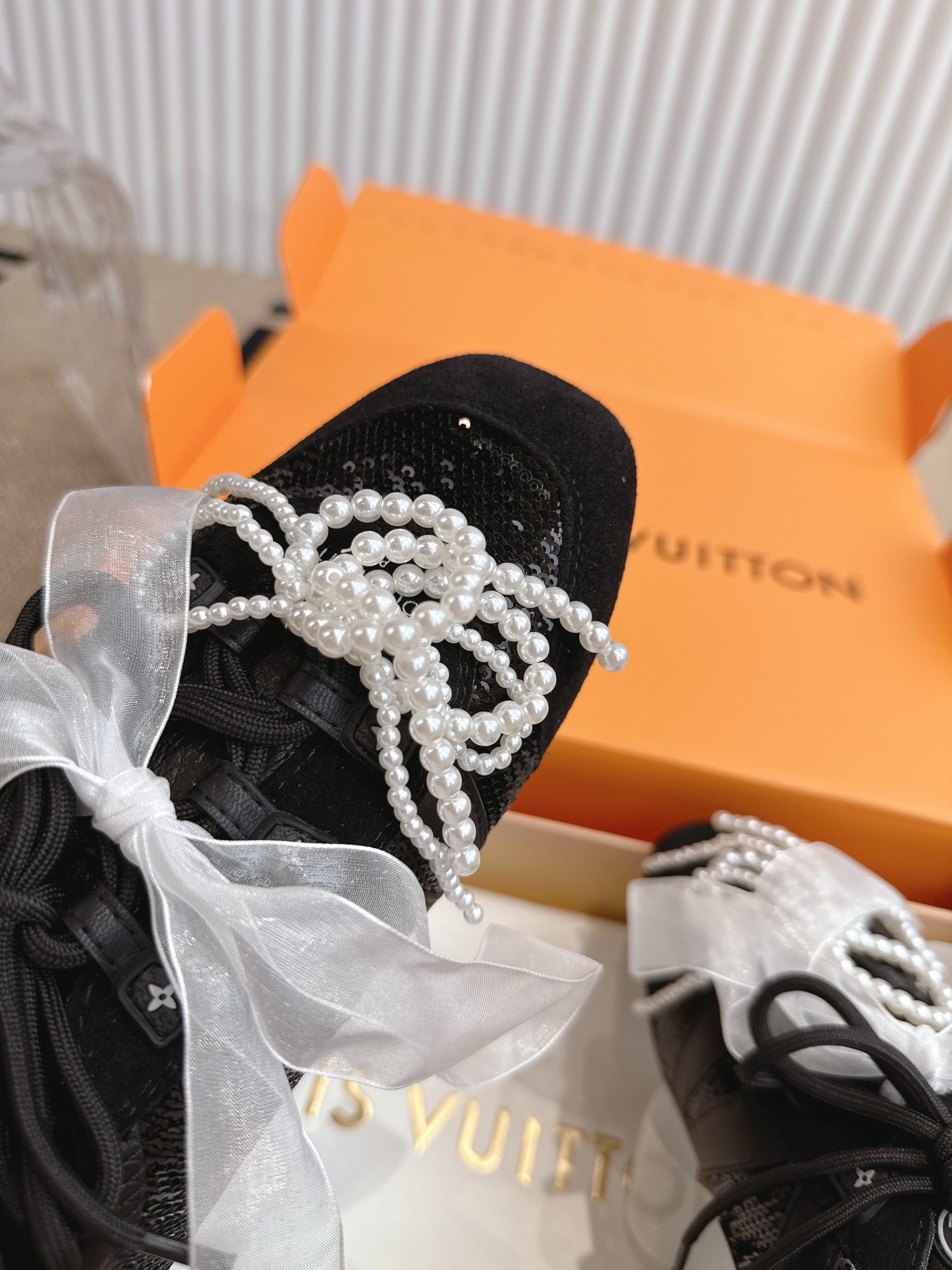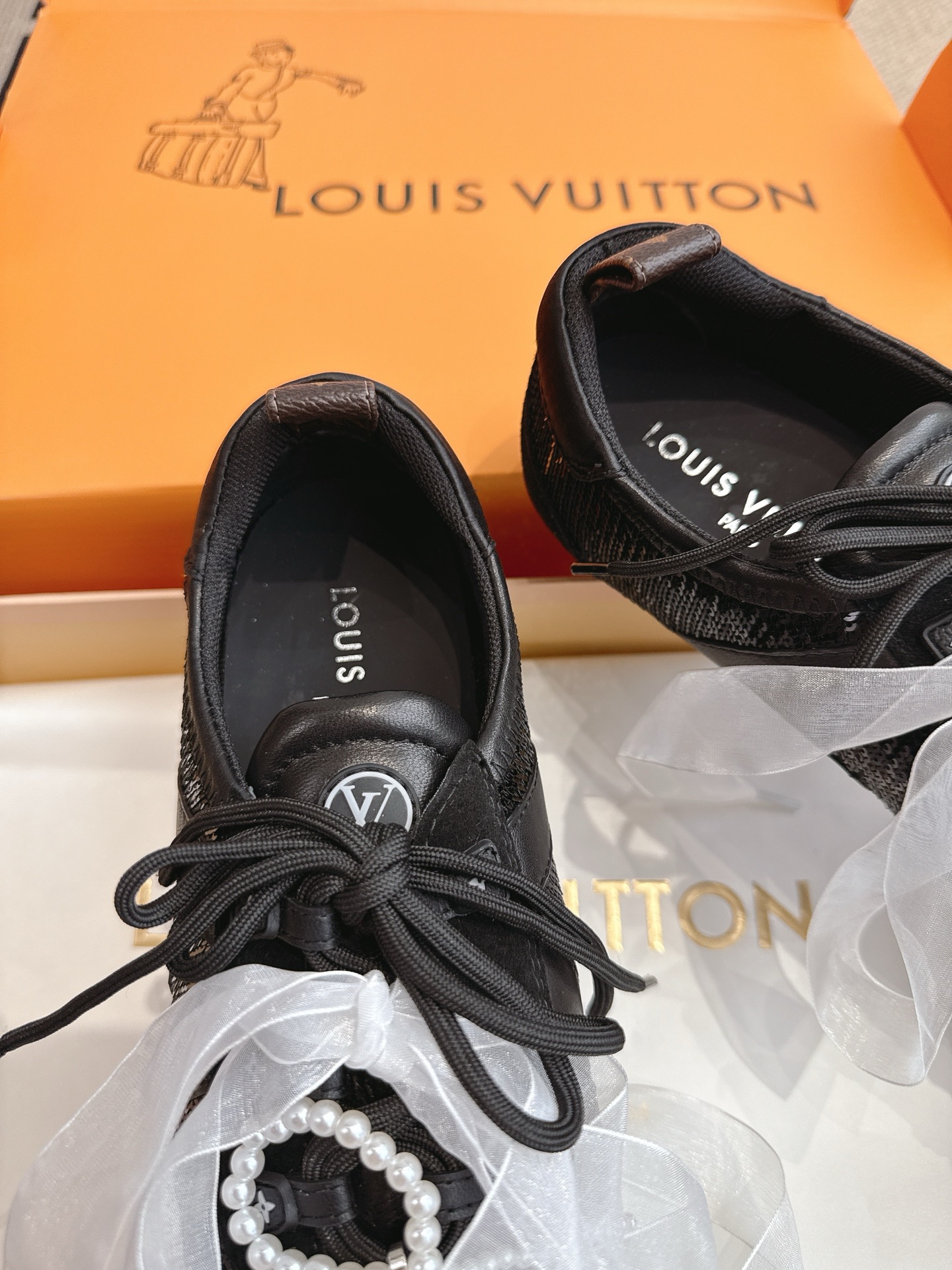 这款鞋子是AAAAA 1:1 质量 (非常棒). 使用了和原版一模一样的材料. 商标部分也保持了和路易威登/Louis Vuitton一样. 图片拍摄是实物鞋子拍摄, 您所收到的实物保证和我们图片一模一样.