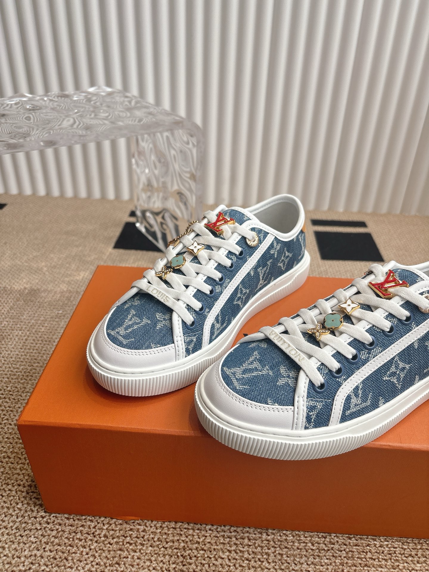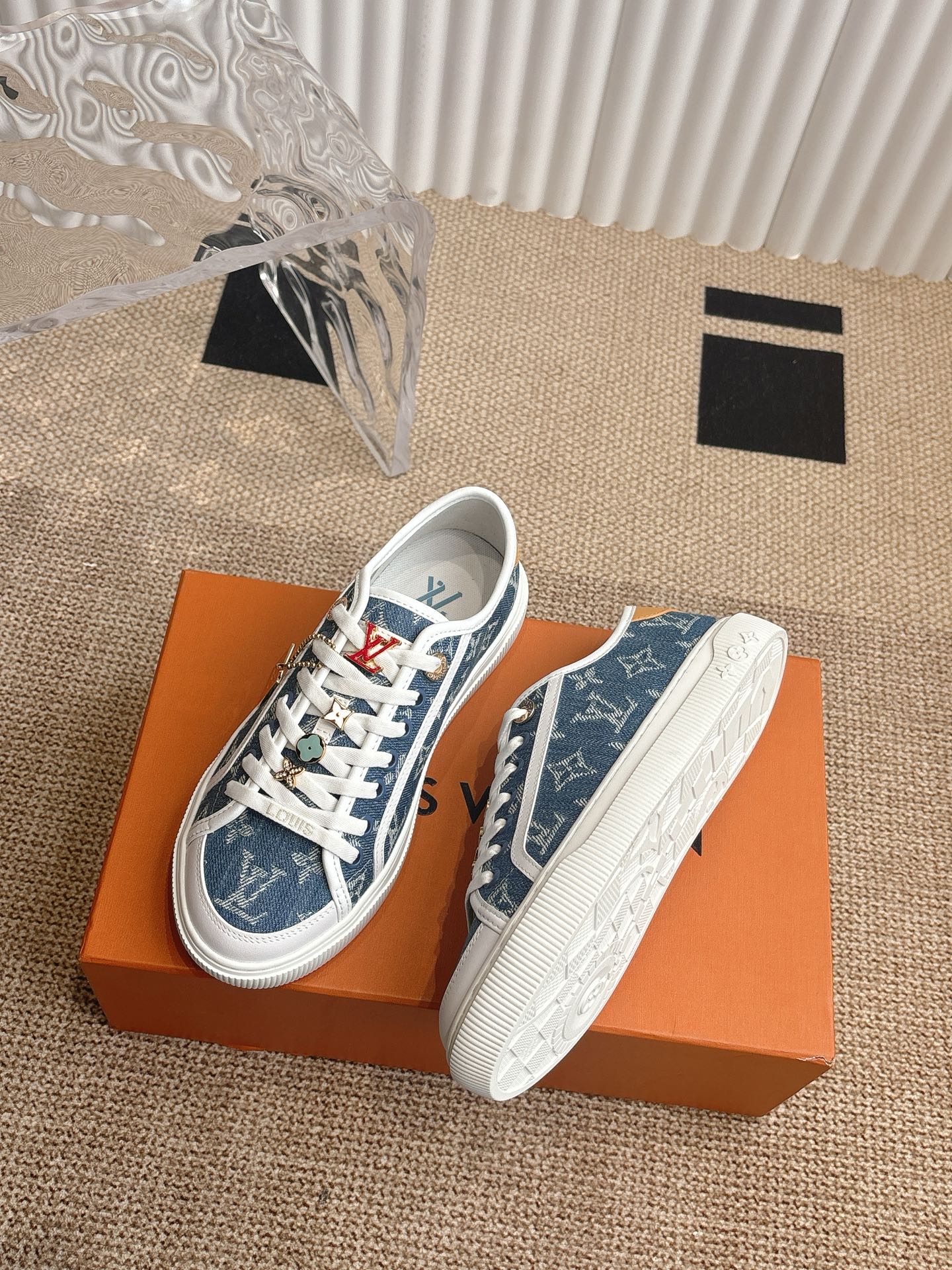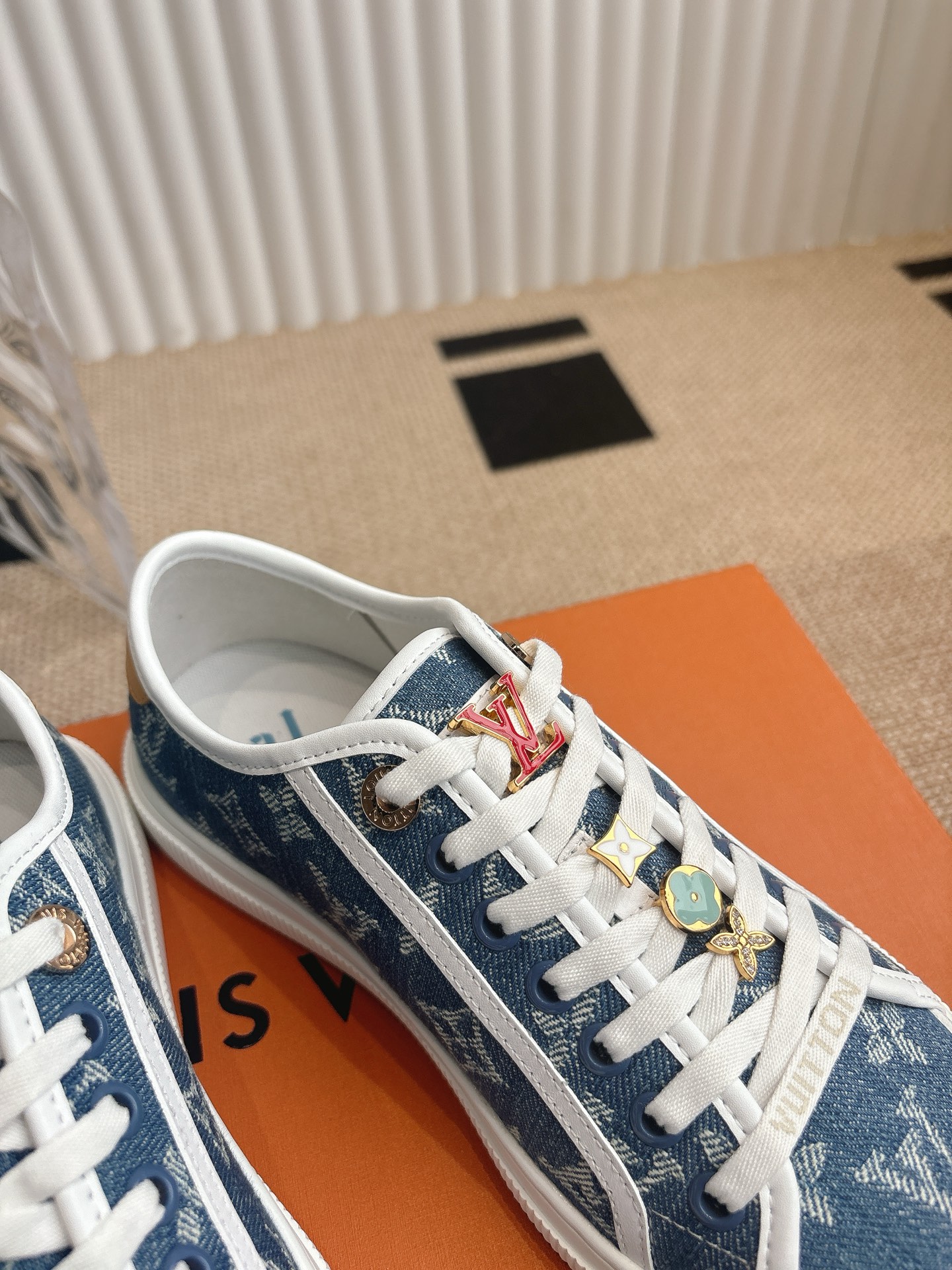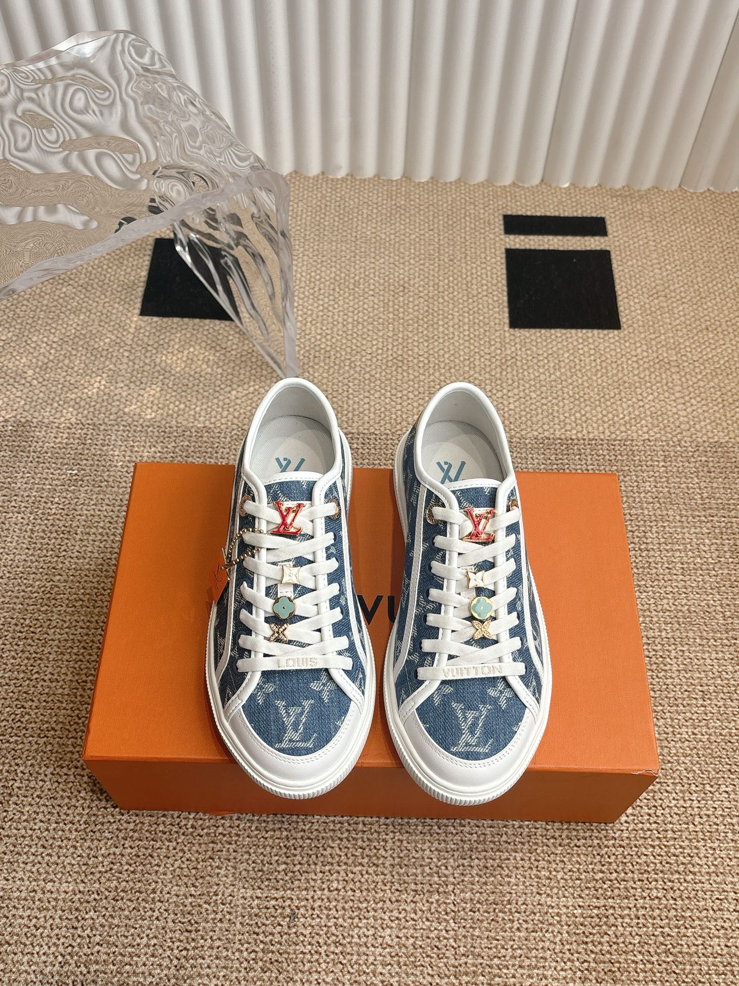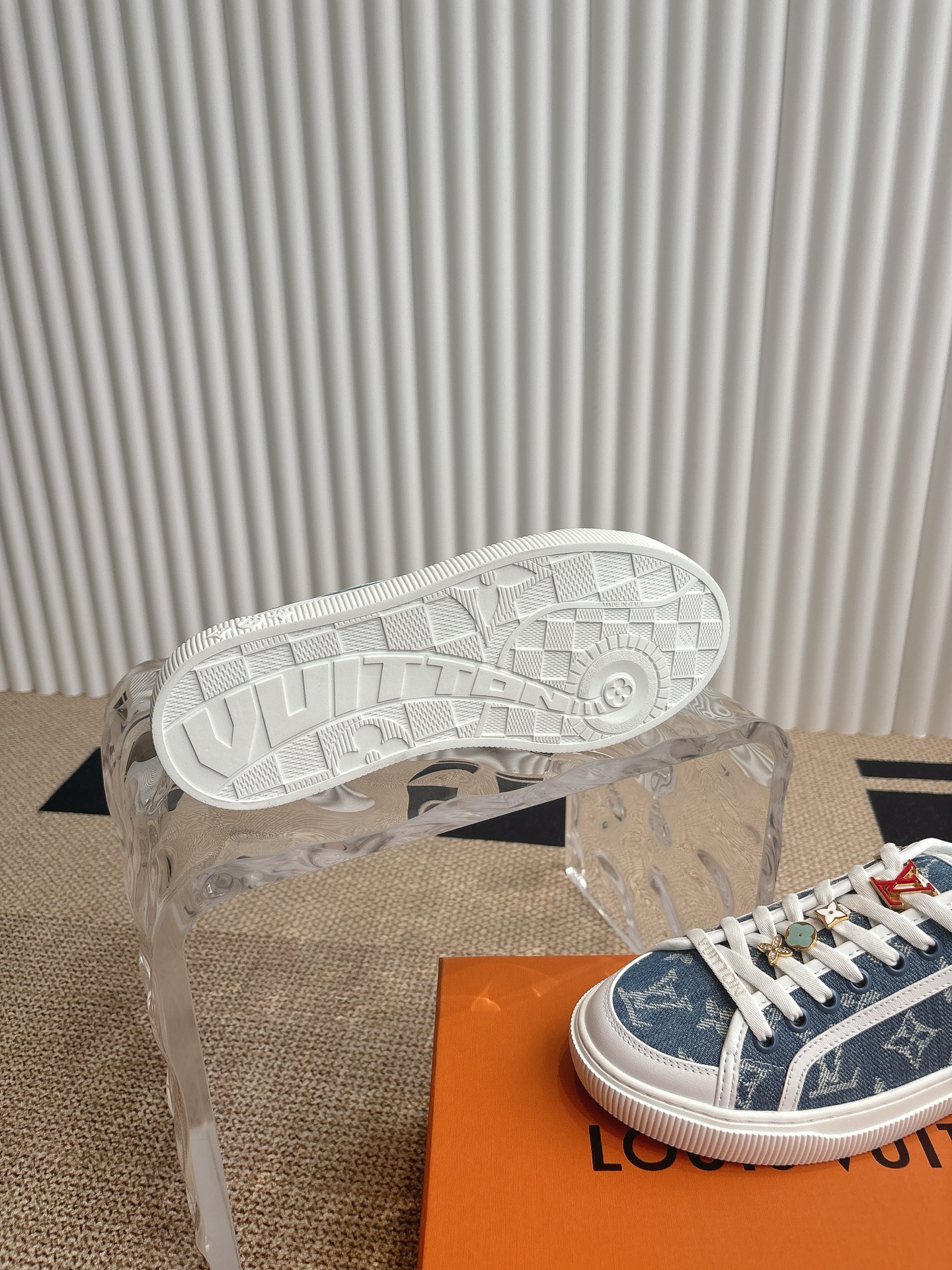 这款鞋子是AAAAA 1:1 质量 (非常棒). 使用了和原版一模一样的材料. 商标部分也保持了和路易威登/Louis Vuitton一样. 图片拍摄是实物鞋子拍摄, 您所收到的实物保证和我们图片一模一样.