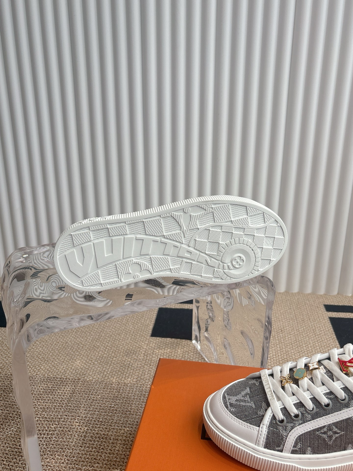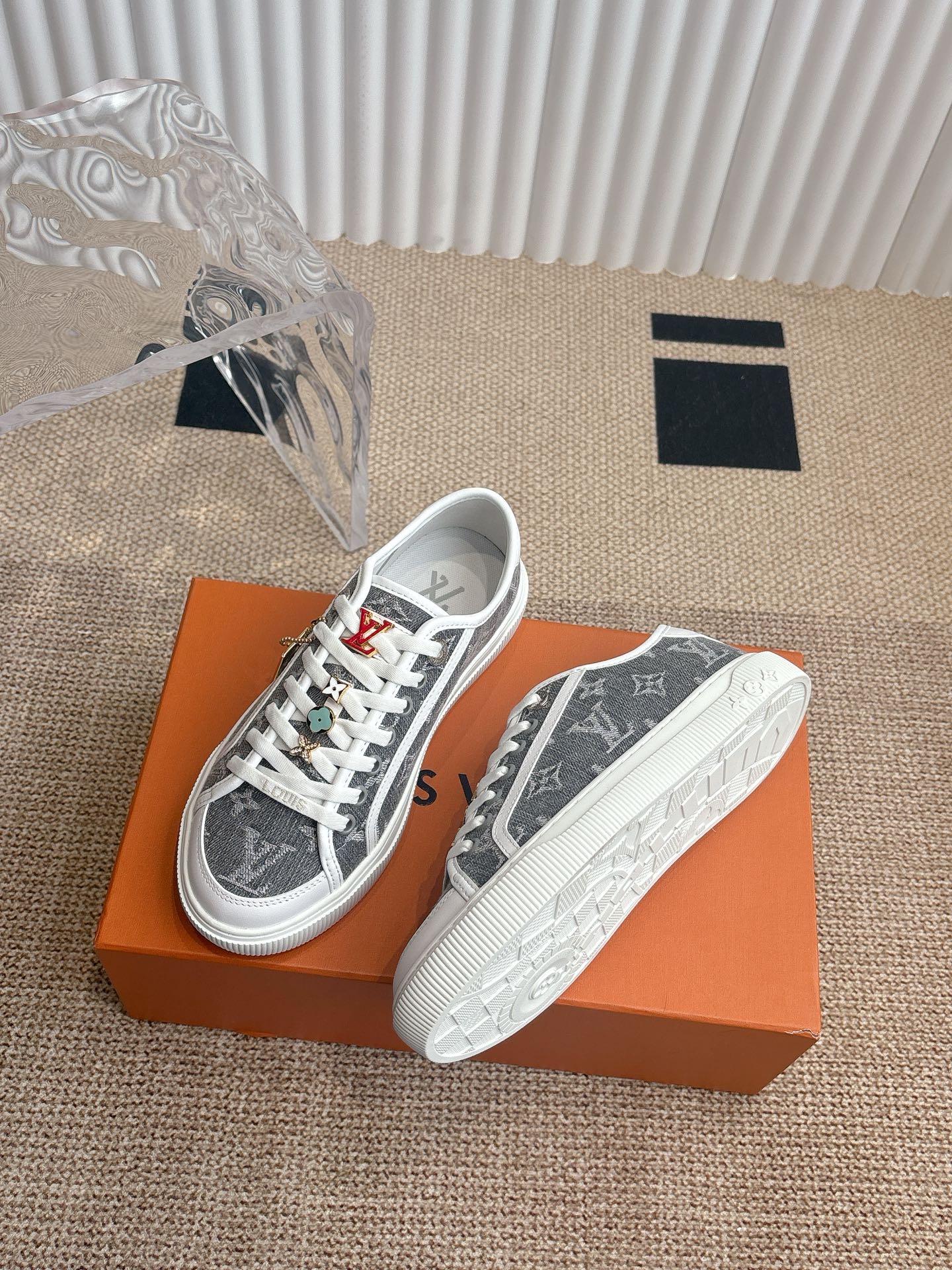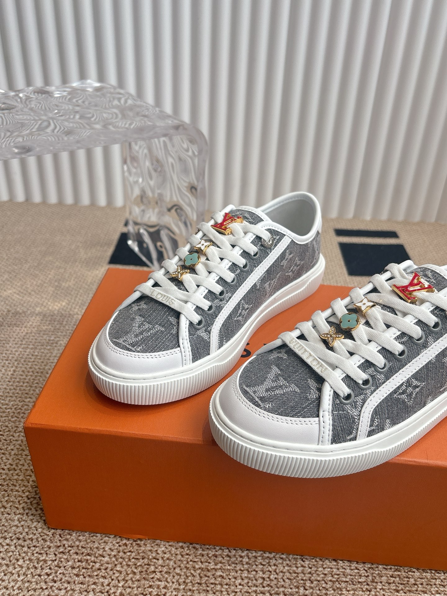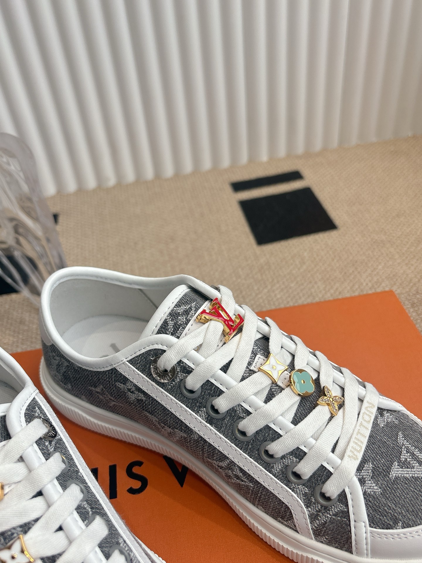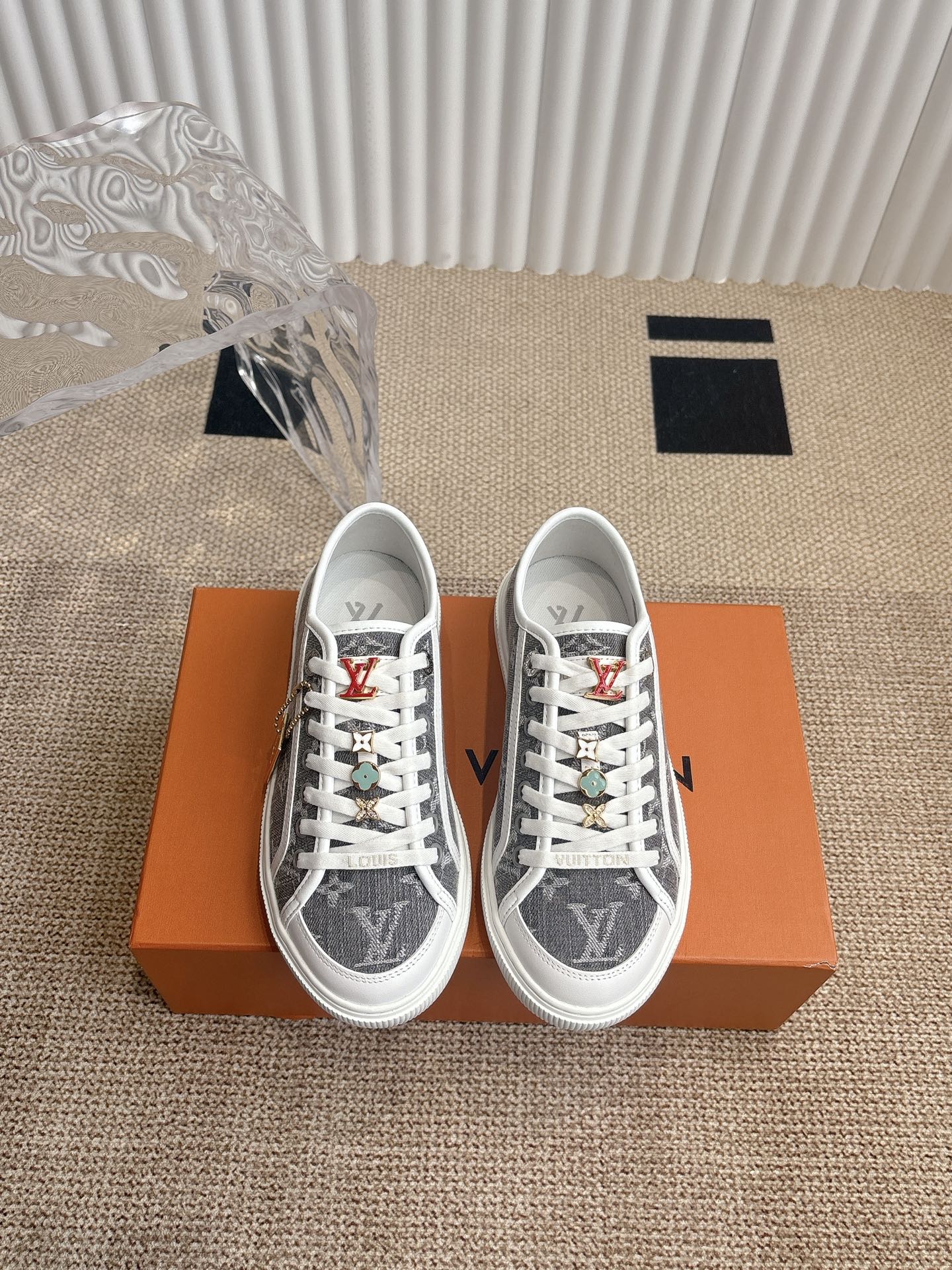 这款鞋子是AAAAA 1:1 质量 (非常棒). 使用了和原版一模一样的材料. 商标部分也保持了和路易威登/Louis Vuitton一样. 图片拍摄是实物鞋子拍摄, 您所收到的实物保证和我们图片一模一样.