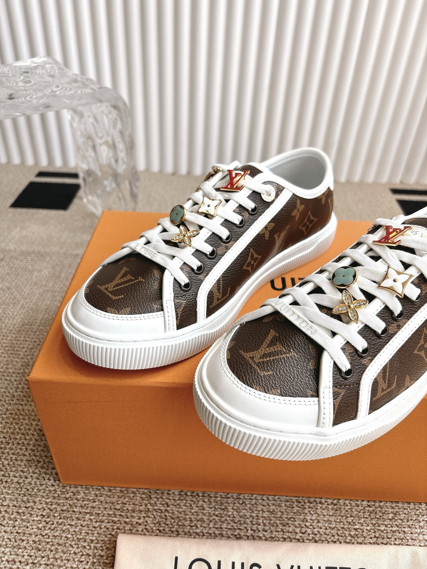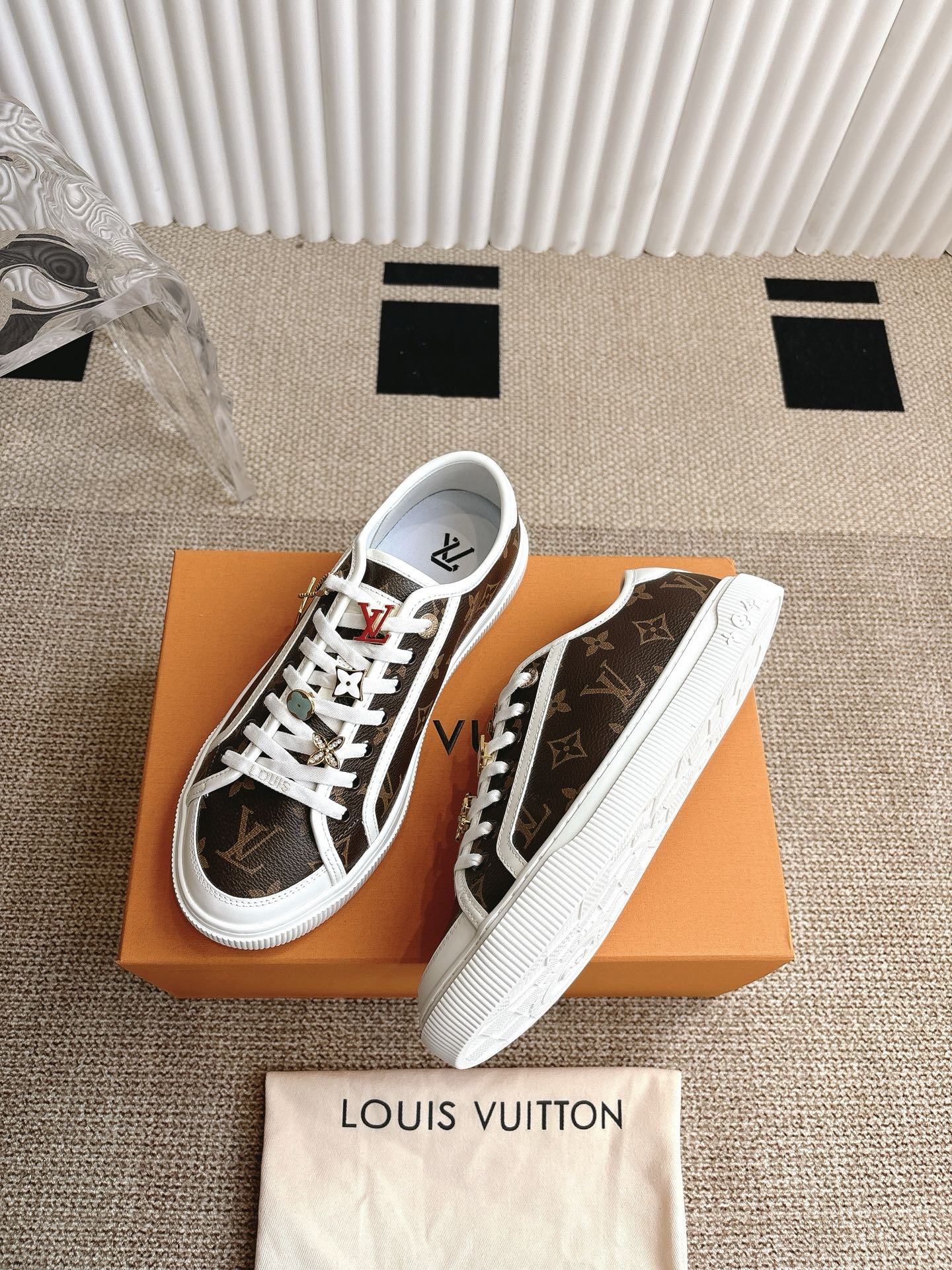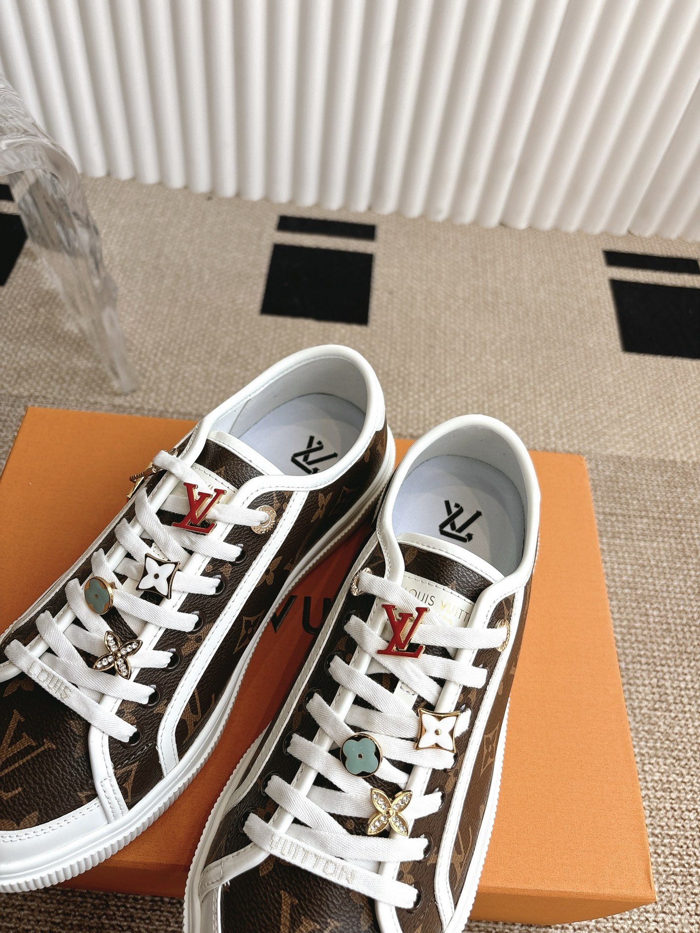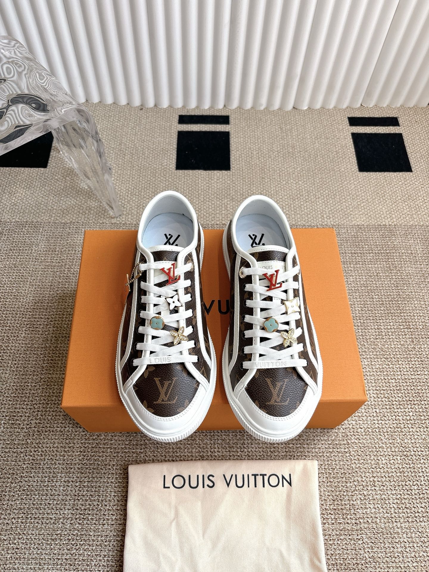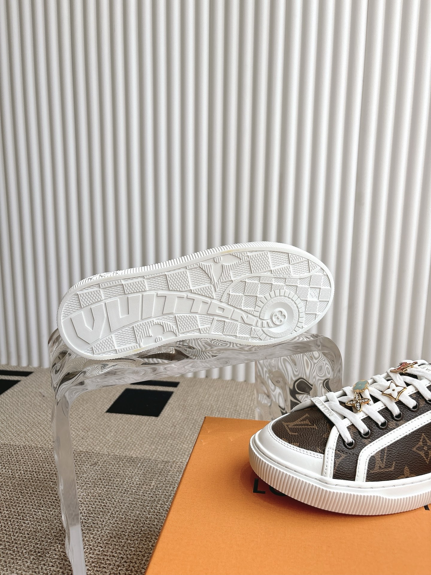 这款鞋子是AAAAA 1:1 质量 (非常棒). 使用了和原版一模一样的材料. 商标部分也保持了和路易威登/Louis Vuitton一样. 图片拍摄是实物鞋子拍摄, 您所收到的实物保证和我们图片一模一样.