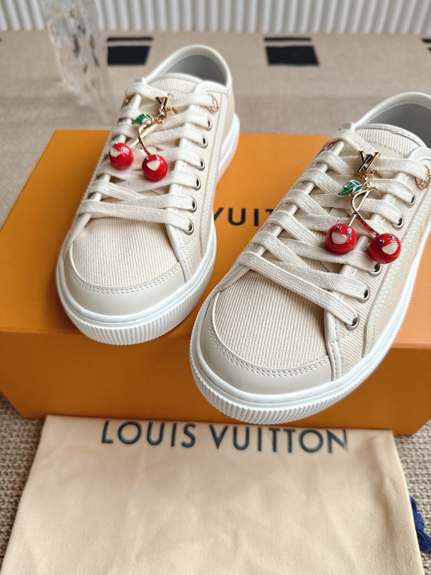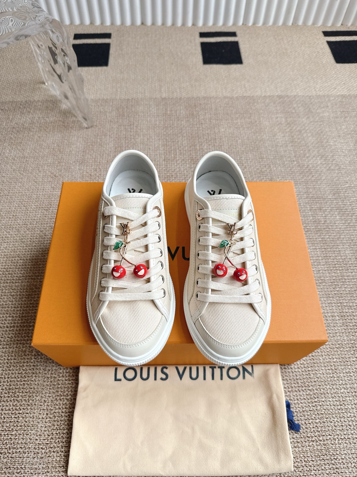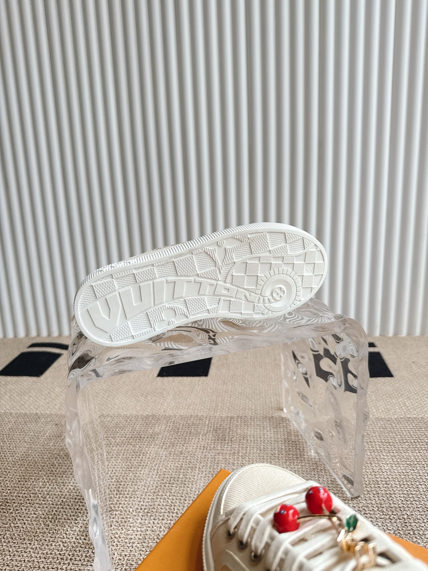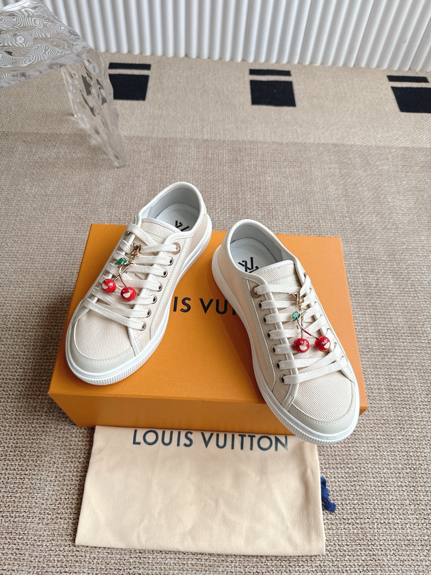 这款鞋子是AAAAA 1:1 质量 (非常棒). 使用了和原版一模一样的材料. 商标部分也保持了和路易威登/Louis Vuitton一样. 图片拍摄是实物鞋子拍摄, 您所收到的实物保证和我们图片一模一样.