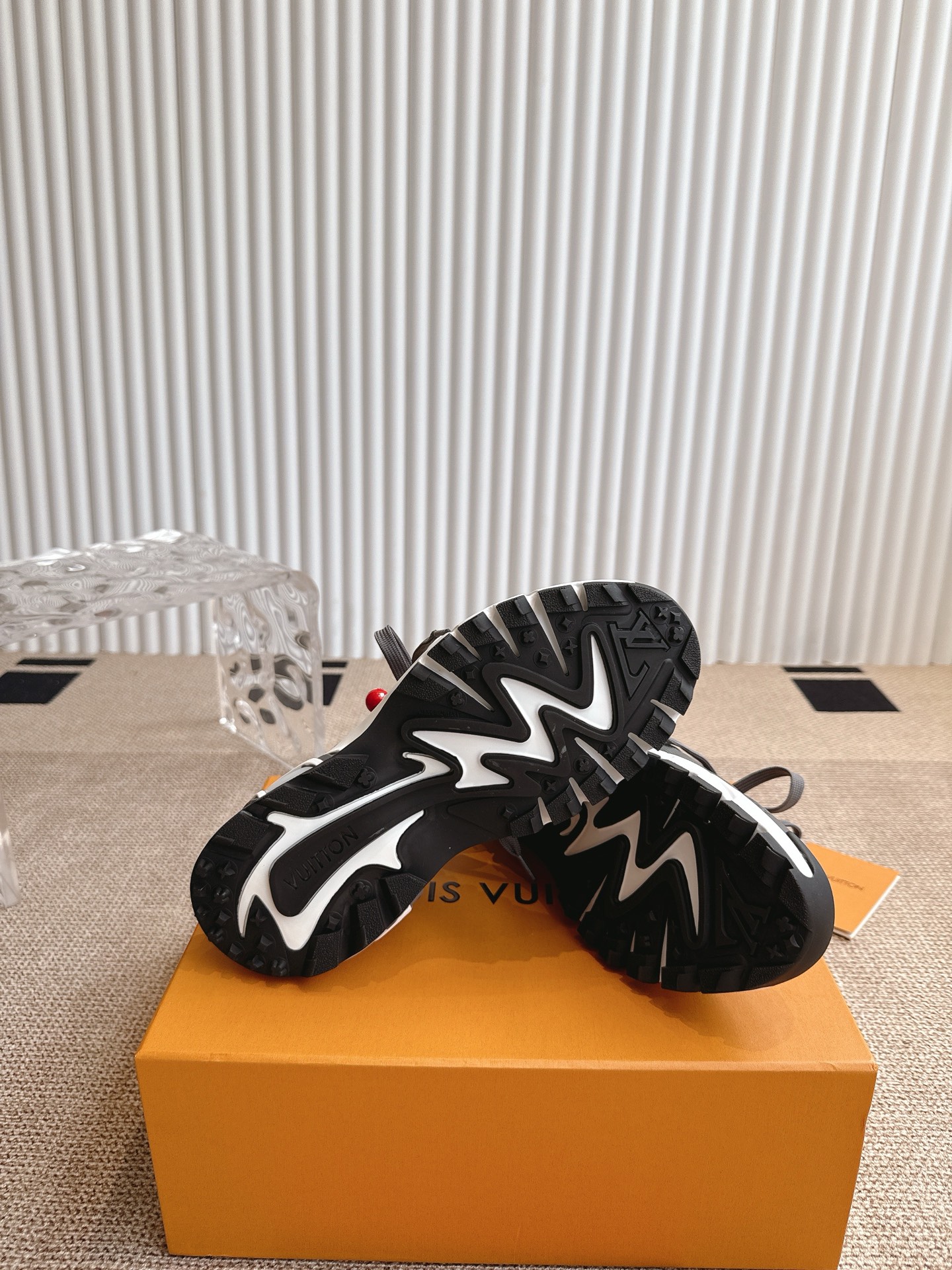 这款鞋子是AAAAA 1:1 质量 (非常棒). 使用了和原版一模一样的材料. 商标部分也保持了和路易威登/Louis Vuitton一样. 图片拍摄是实物鞋子拍摄, 您所收到的实物保证和我们图片一模一样.