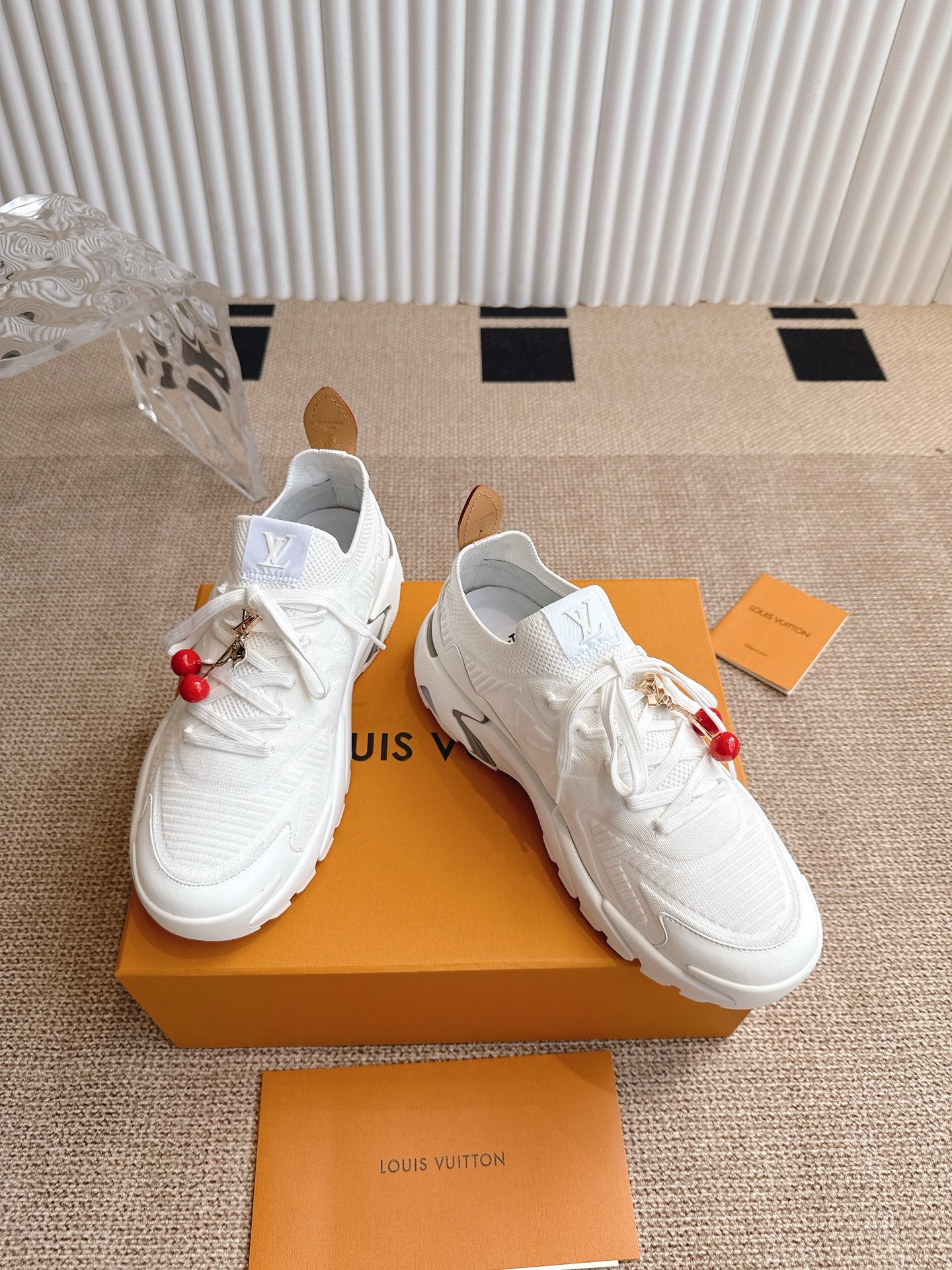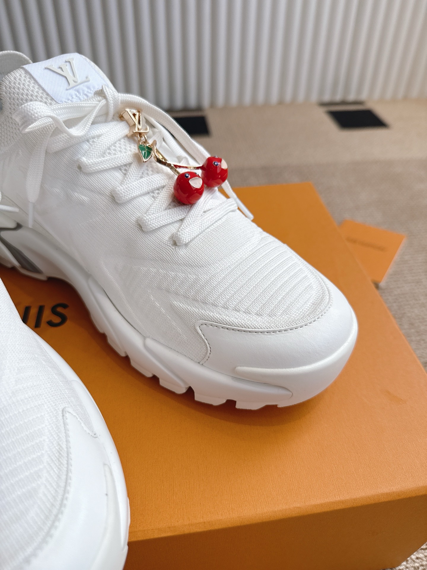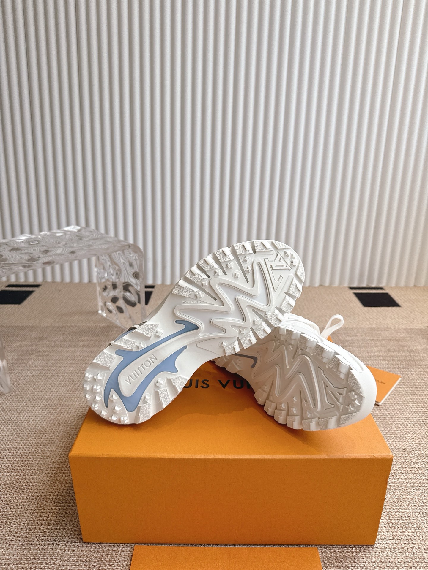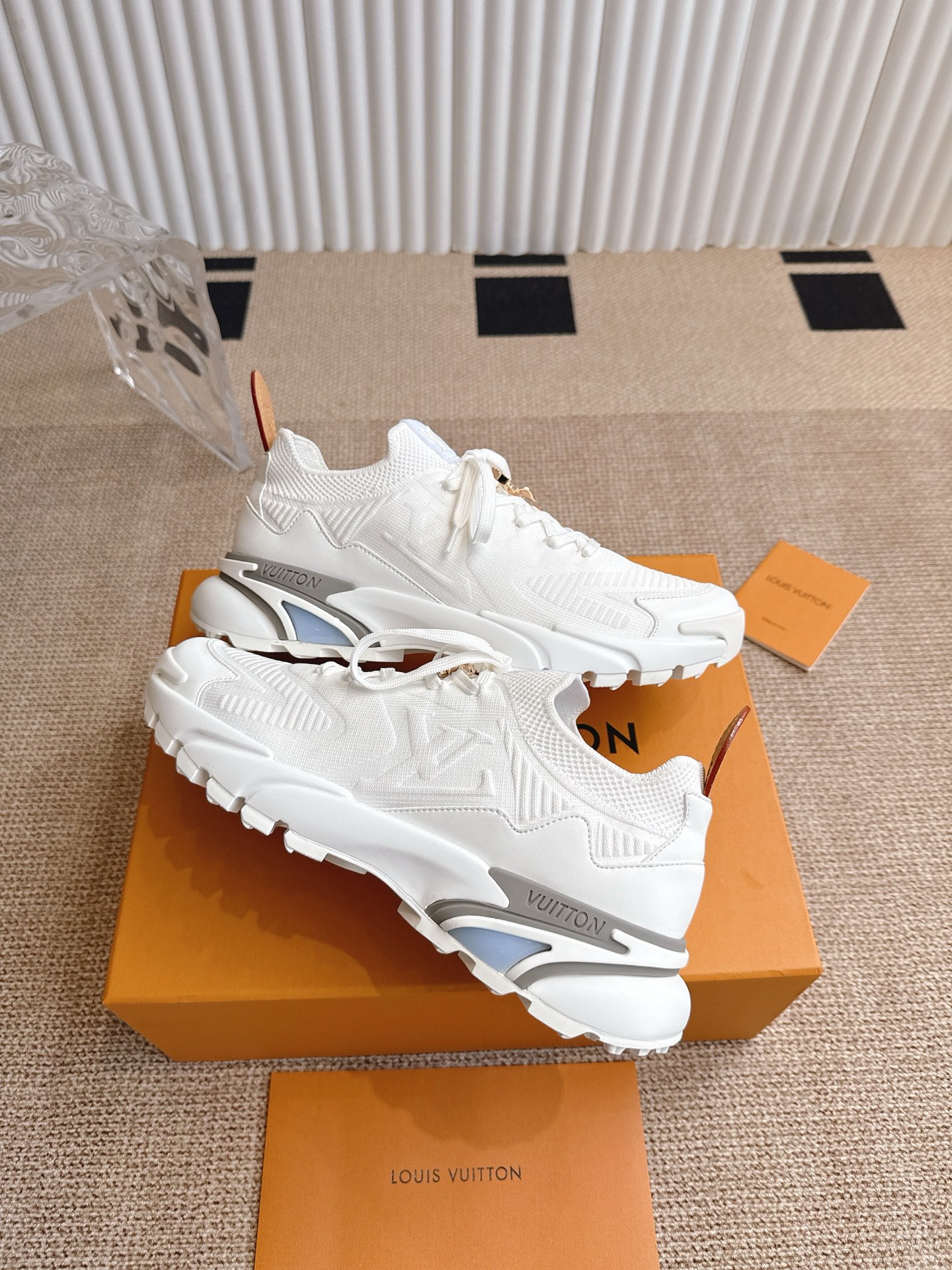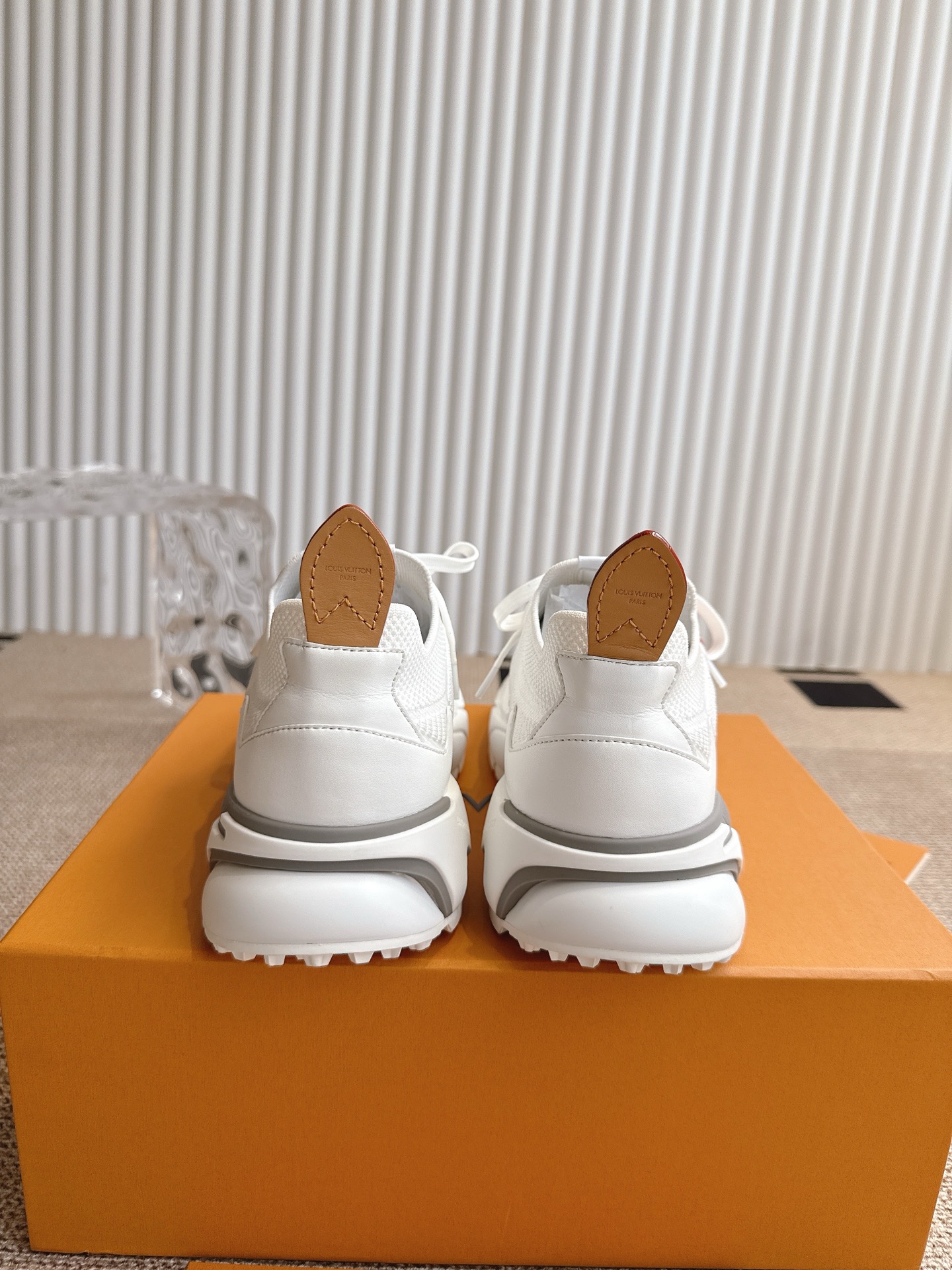 这款鞋子是AAAAA 1:1 质量 (非常棒). 使用了和原版一模一样的材料. 商标部分也保持了和路易威登/Louis Vuitton一样. 图片拍摄是实物鞋子拍摄, 您所收到的实物保证和我们图片一模一样.