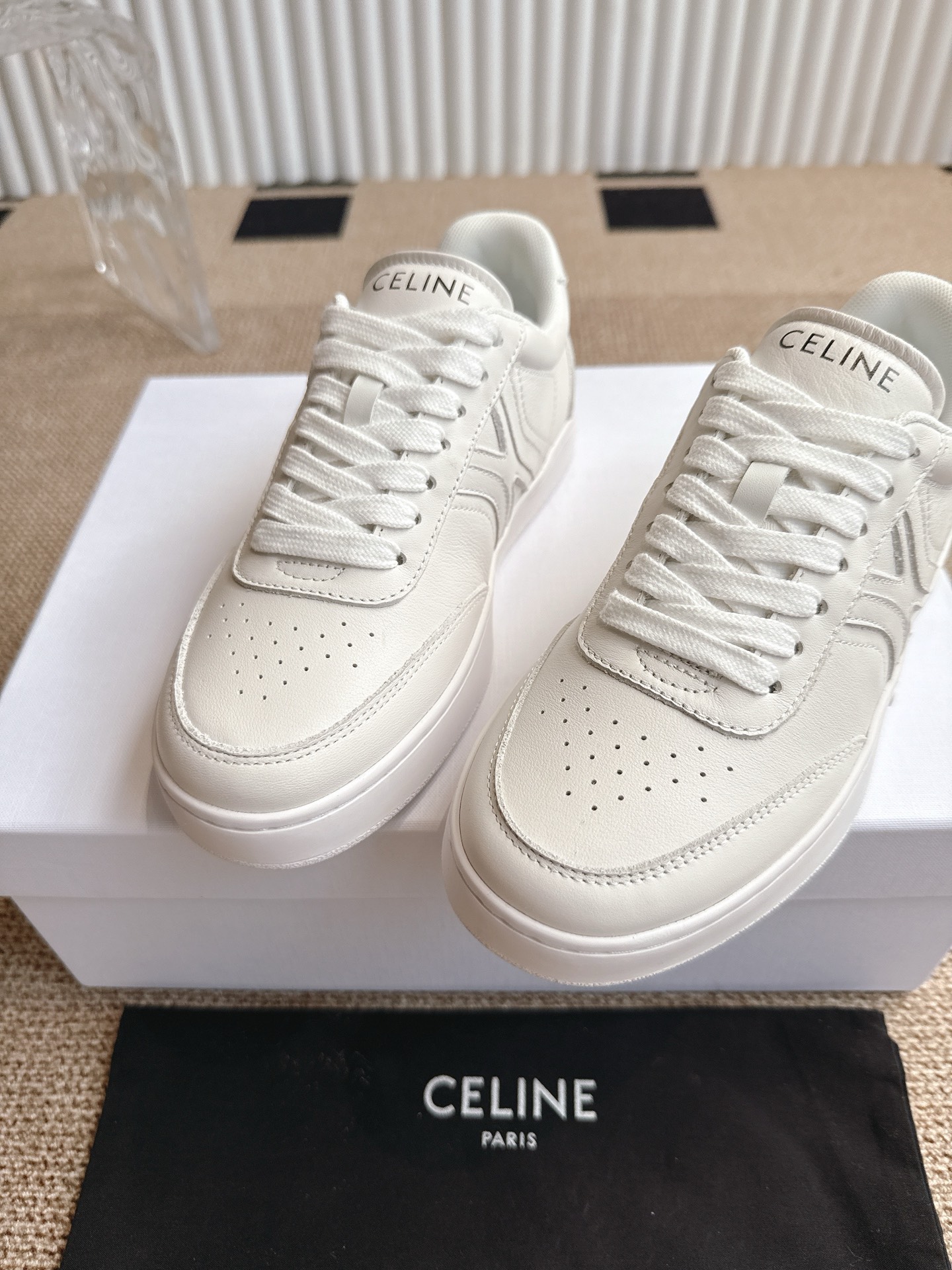 这款鞋子是AAAAA 1:1 质量 (非常棒). 使用了和原版一模一样的材料. 商标部分也保持了和思琳/Celine一样. 图片拍摄是实物鞋子拍摄, 您所收到的实物保证和我们图片一模一样.