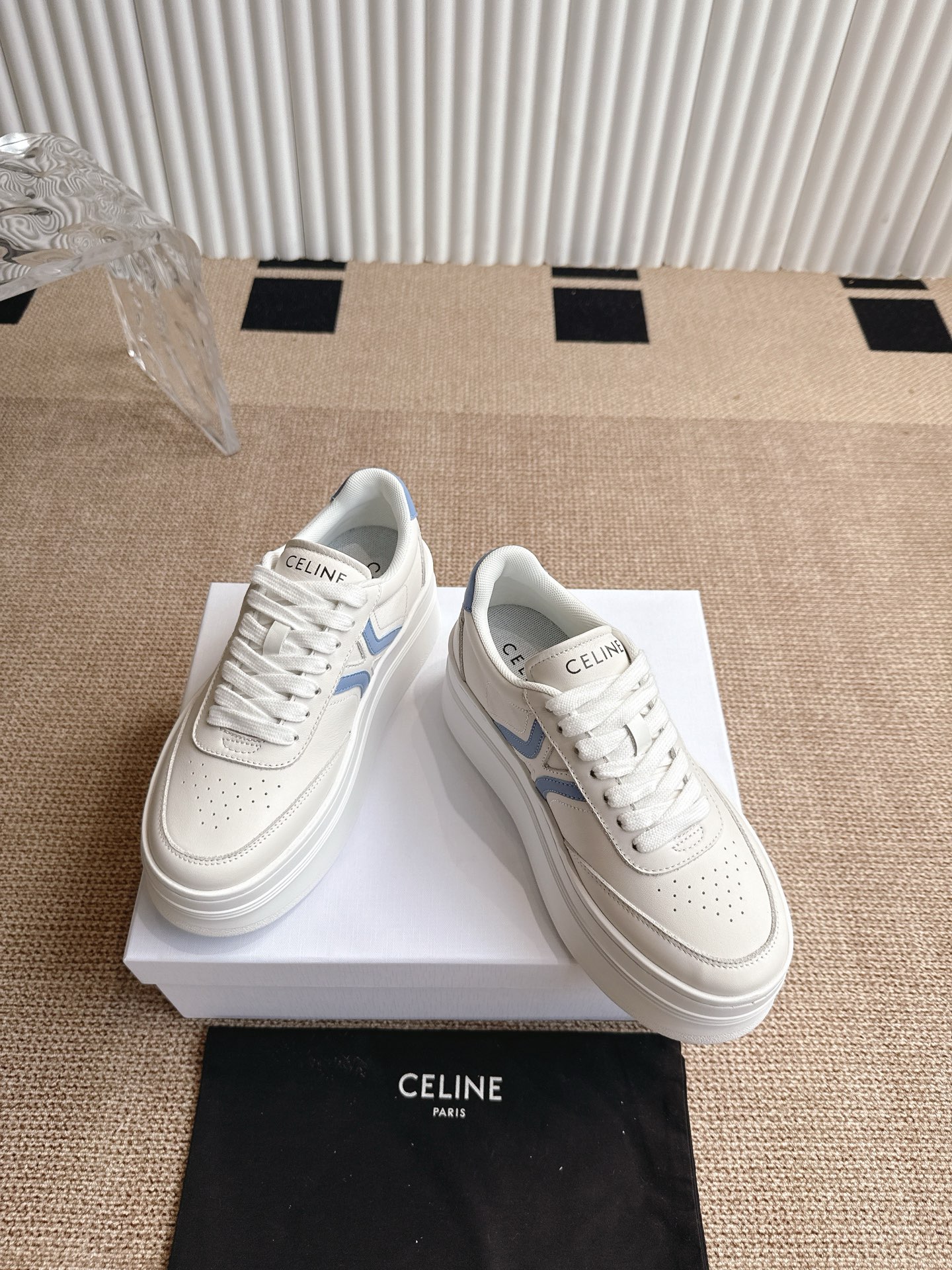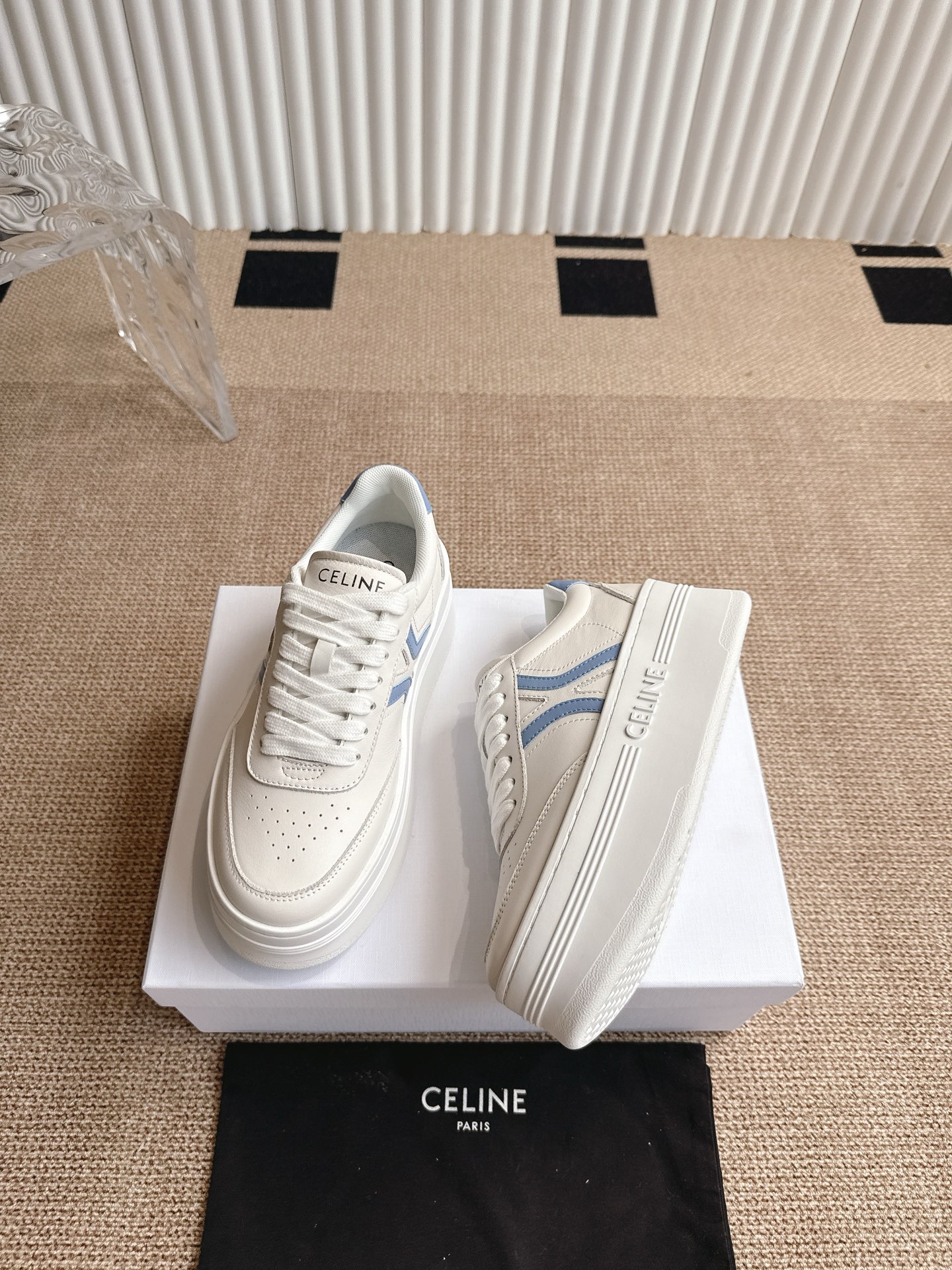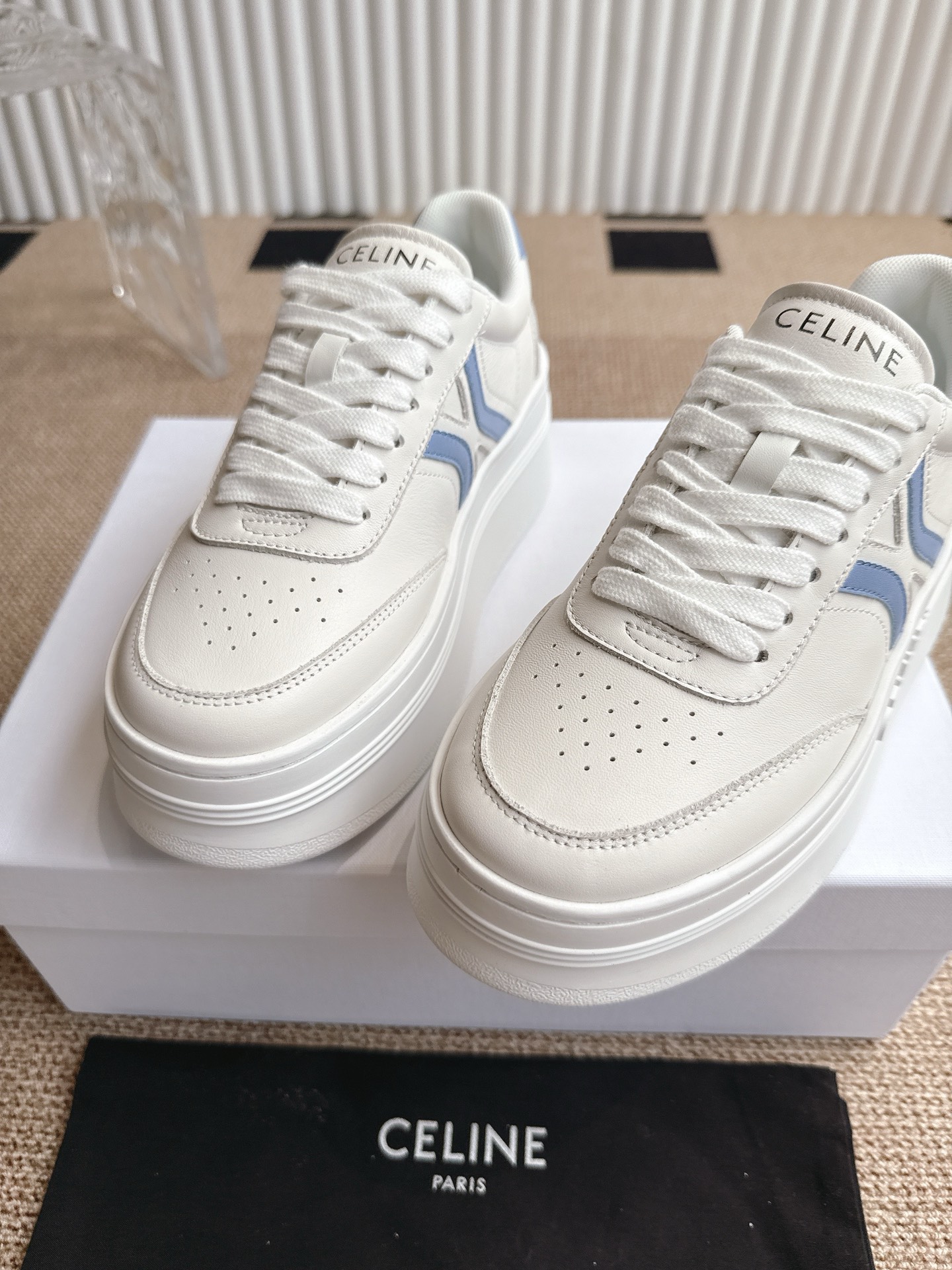 这款鞋子是AAAAA 1:1 质量 (非常棒). 使用了和原版一模一样的材料. 商标部分也保持了和思琳/Celine一样. 图片拍摄是实物鞋子拍摄, 您所收到的实物保证和我们图片一模一样.