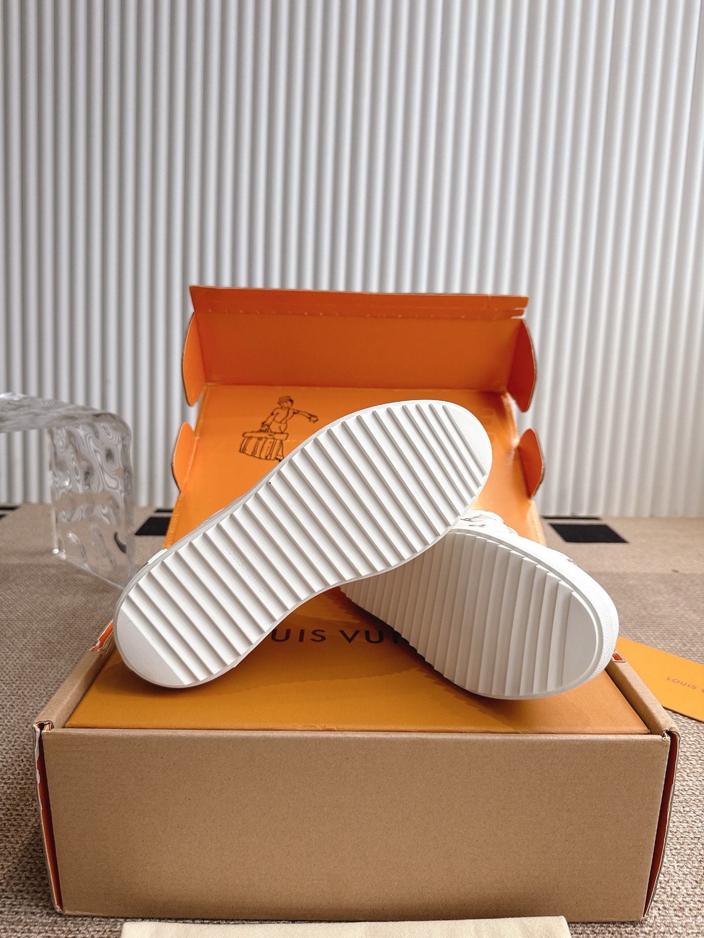 这款鞋子是AAAAA 1:1 质量 (非常棒). 使用了和原版一模一样的材料. 商标部分也保持了和路易威登/Louis Vuitton一样. 图片拍摄是实物鞋子拍摄, 您所收到的实物保证和我们图片一模一样.