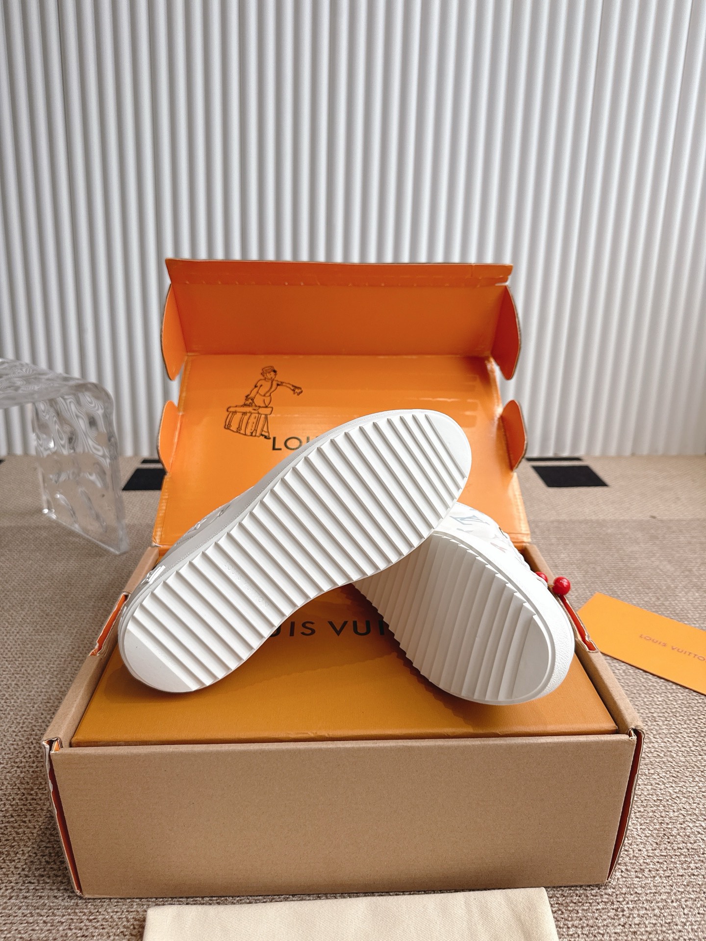 这款鞋子是AAAAA 1:1 质量 (非常棒). 使用了和原版一模一样的材料. 商标部分也保持了和路易威登/Louis Vuitton一样. 图片拍摄是实物鞋子拍摄, 您所收到的实物保证和我们图片一模一样.