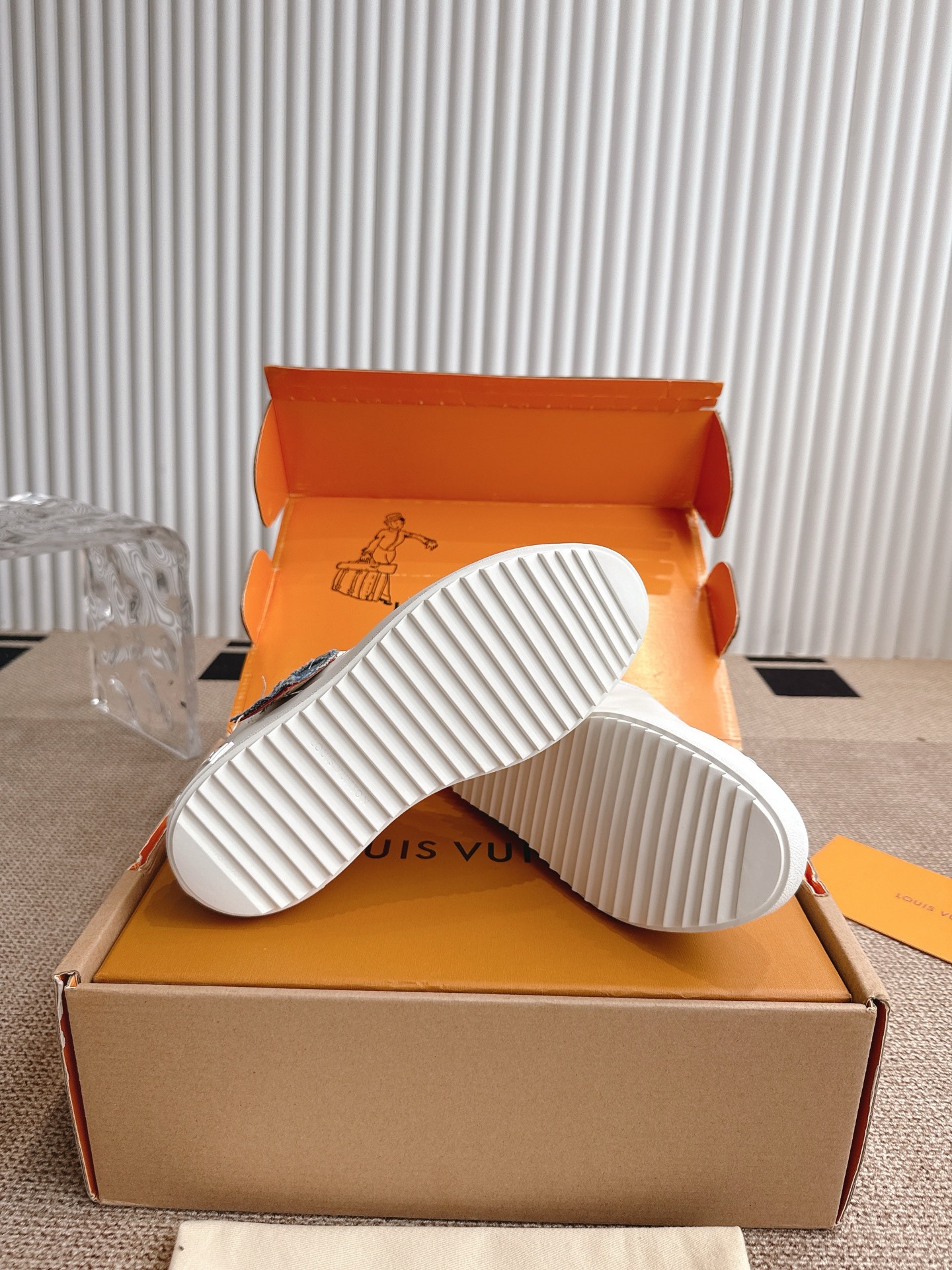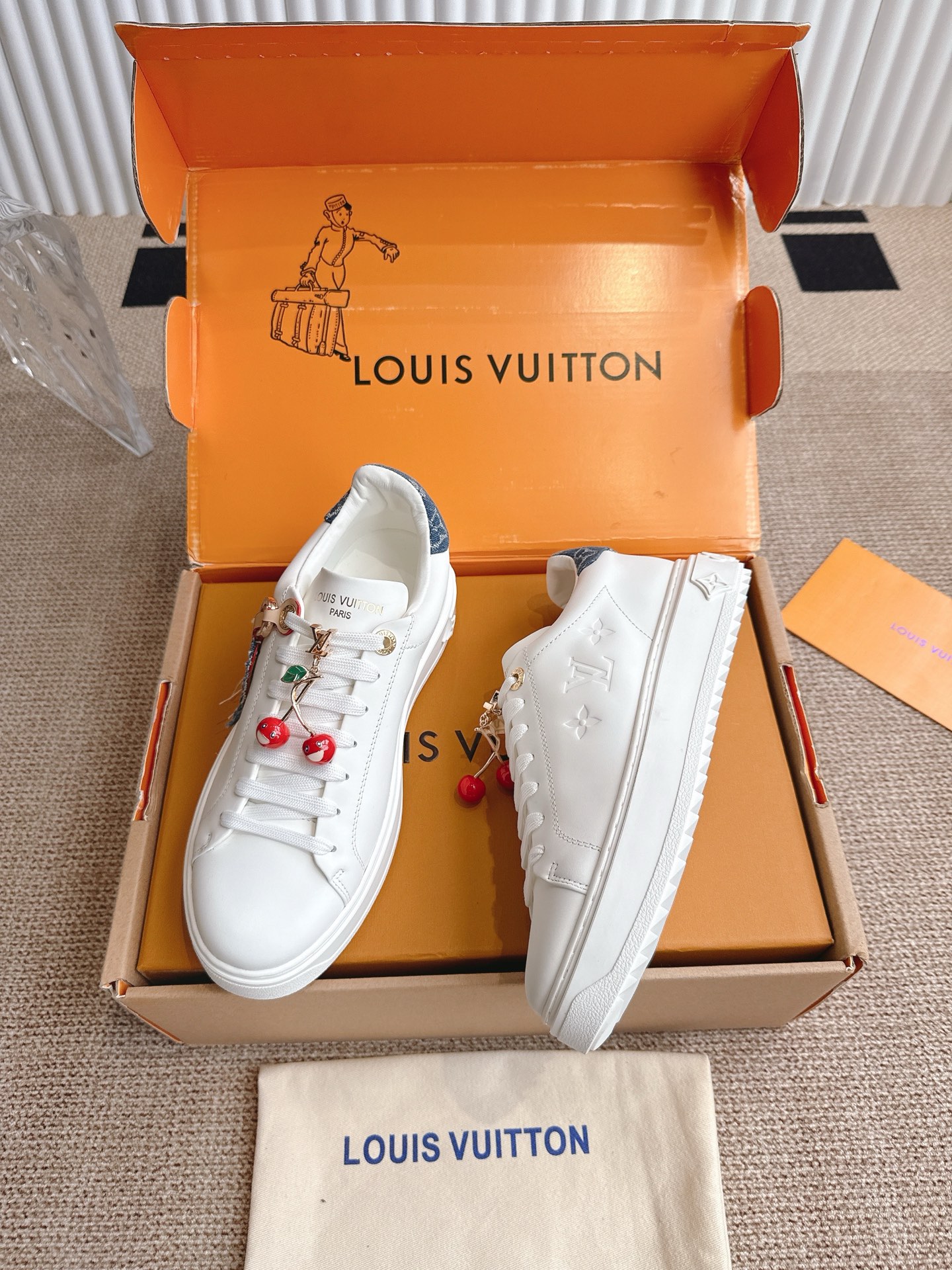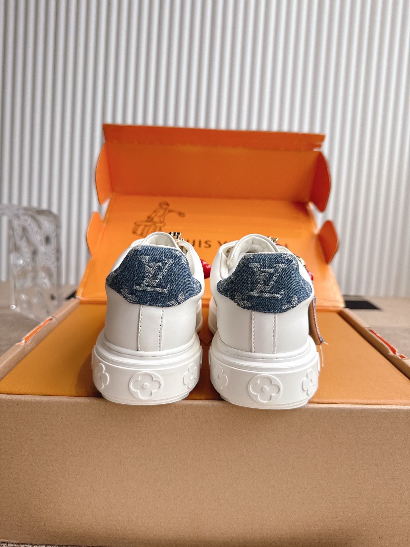这款鞋子是AAAAA 1:1 质量 (非常棒). 使用了和原版一模一样的材料. 商标部分也保持了和路易威登/Louis Vuitton一样. 图片拍摄是实物鞋子拍摄, 您所收到的实物保证和我们图片一模一样.