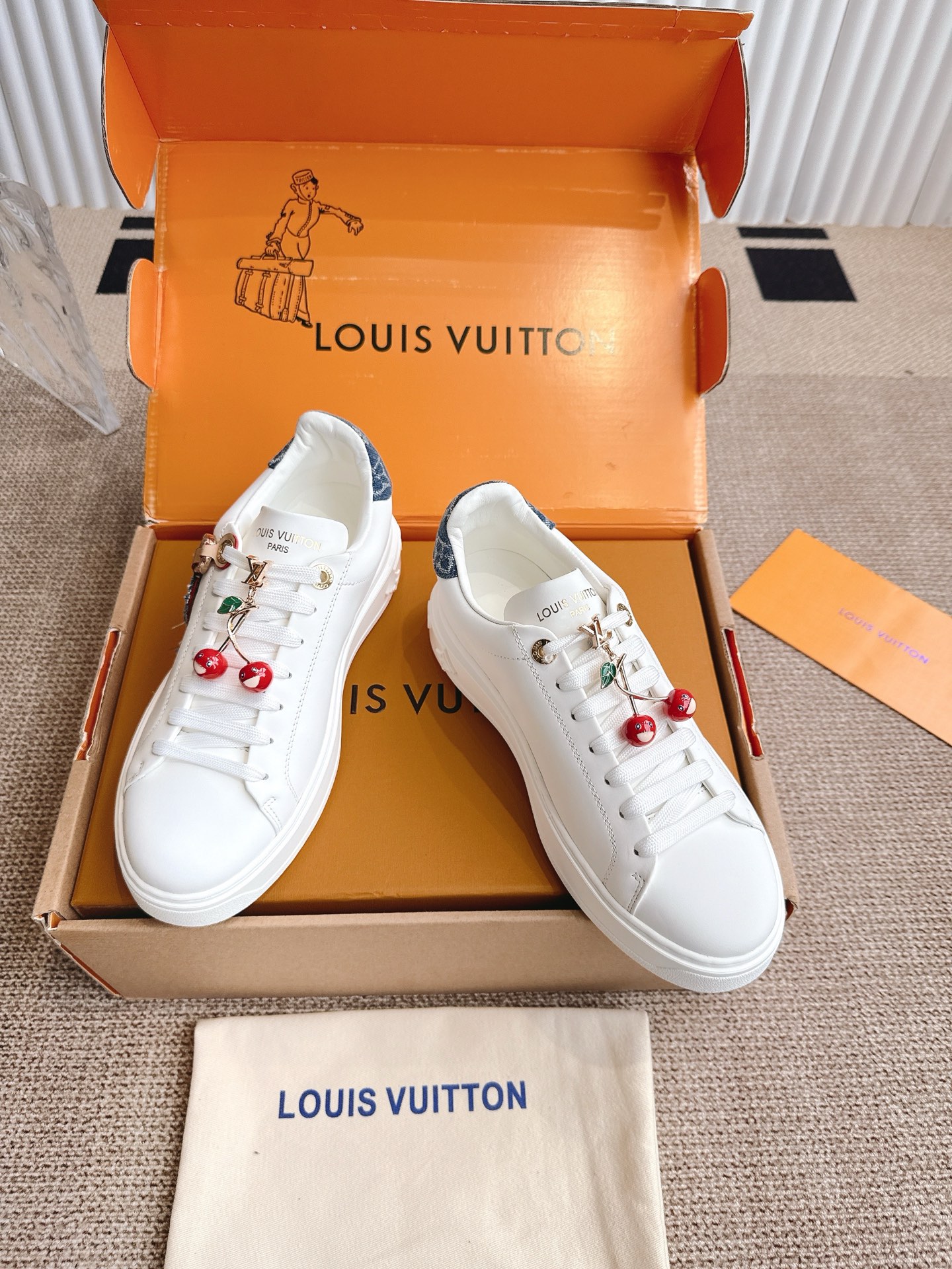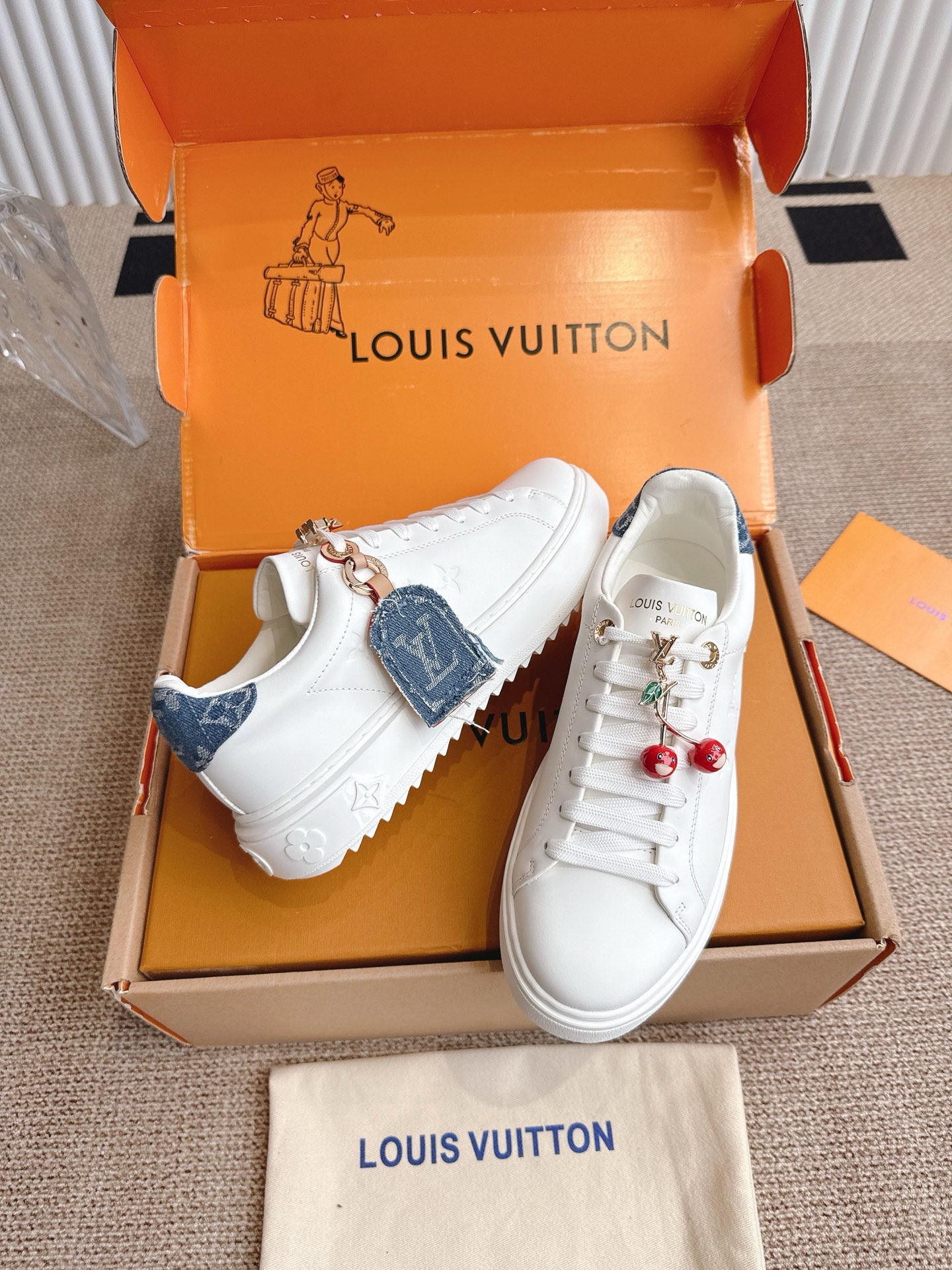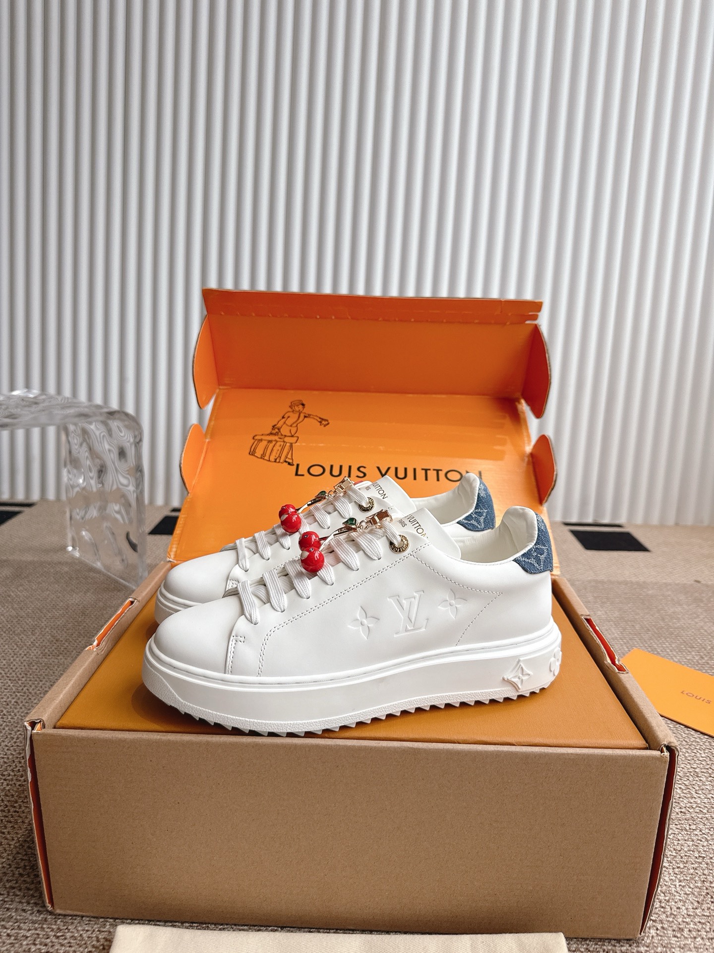 这款鞋子是AAAAA 1:1 质量 (非常棒). 使用了和原版一模一样的材料. 商标部分也保持了和路易威登/Louis Vuitton一样. 图片拍摄是实物鞋子拍摄, 您所收到的实物保证和我们图片一模一样.