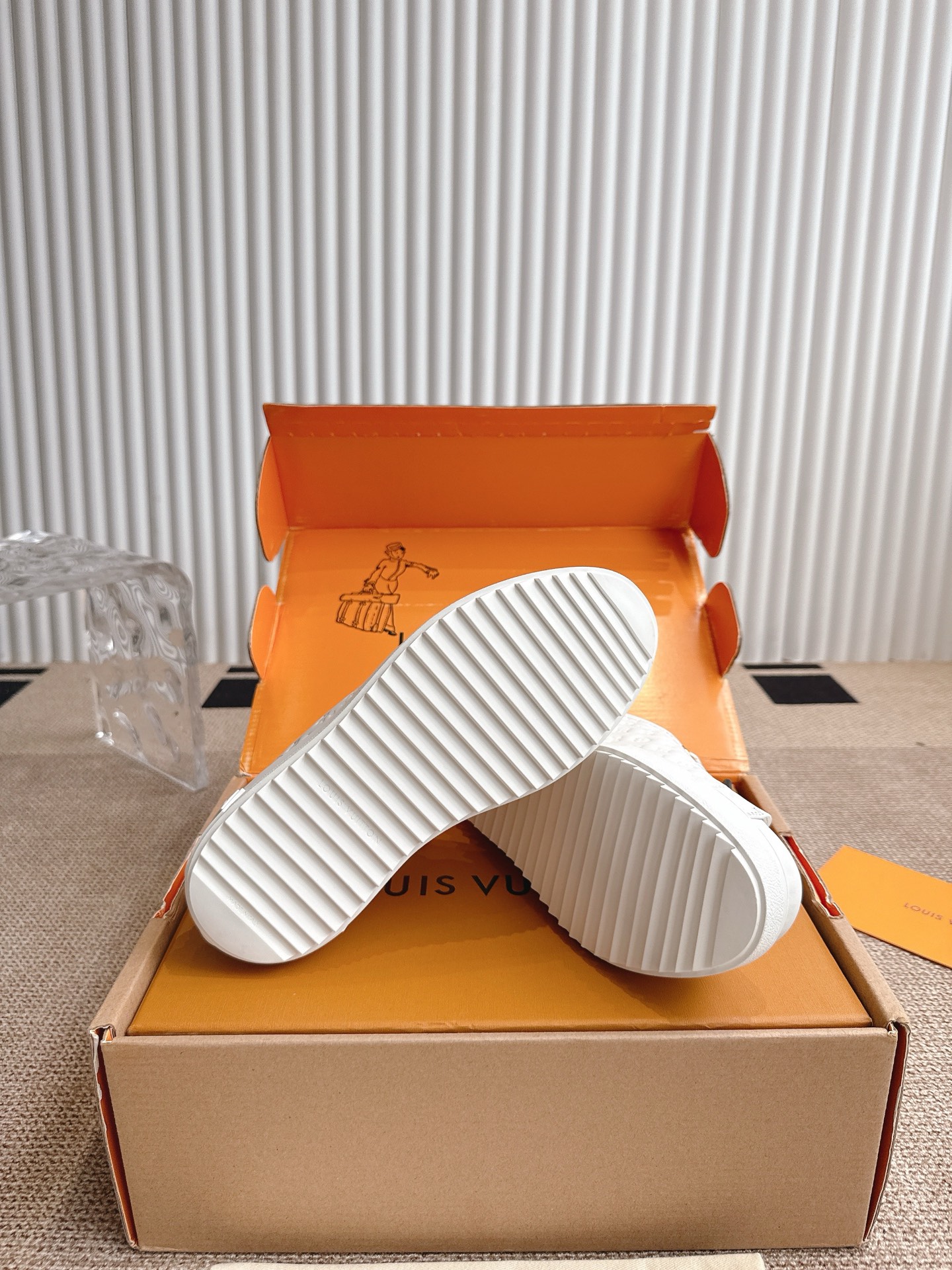 这款鞋子是AAAAA 1:1 质量 (非常棒). 使用了和原版一模一样的材料. 商标部分也保持了和路易威登/Louis Vuitton一样. 图片拍摄是实物鞋子拍摄, 您所收到的实物保证和我们图片一模一样.