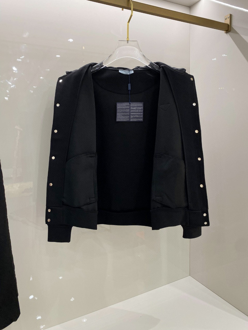 这款衣服是AAAAA 1:1 质量 (非常棒). 使用了和原版一模一样的材料. 商标部分也保持了和普拉达/Prada一样. 图片拍摄是实物衣服拍摄, 您所收到的实物保证和我们图片一模一样.