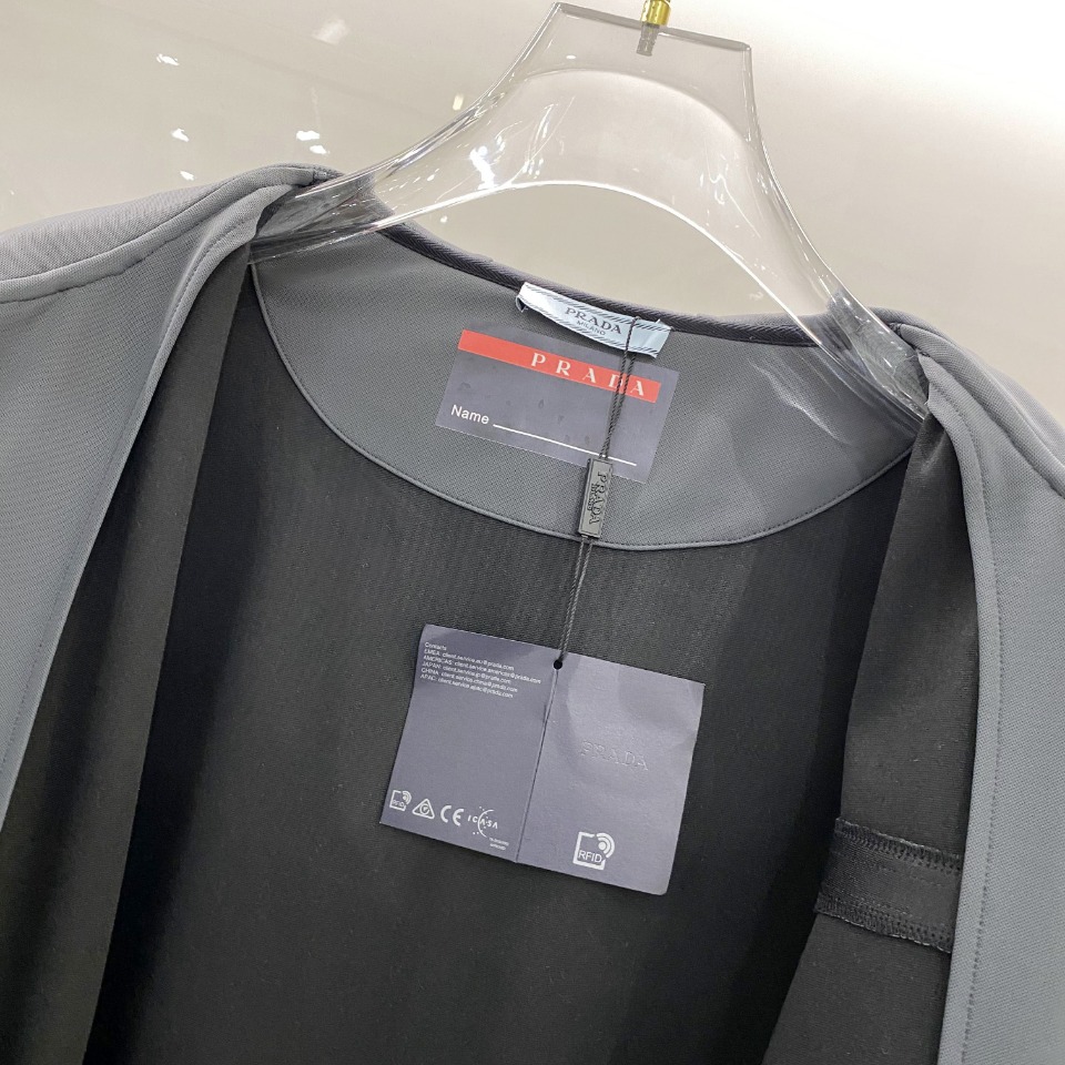 这款衣服是AAAAA 1:1 质量 (非常棒). 使用了和原版一模一样的材料. 商标部分也保持了和普拉达/Prada一样. 图片拍摄是实物衣服拍摄, 您所收到的实物保证和我们图片一模一样.