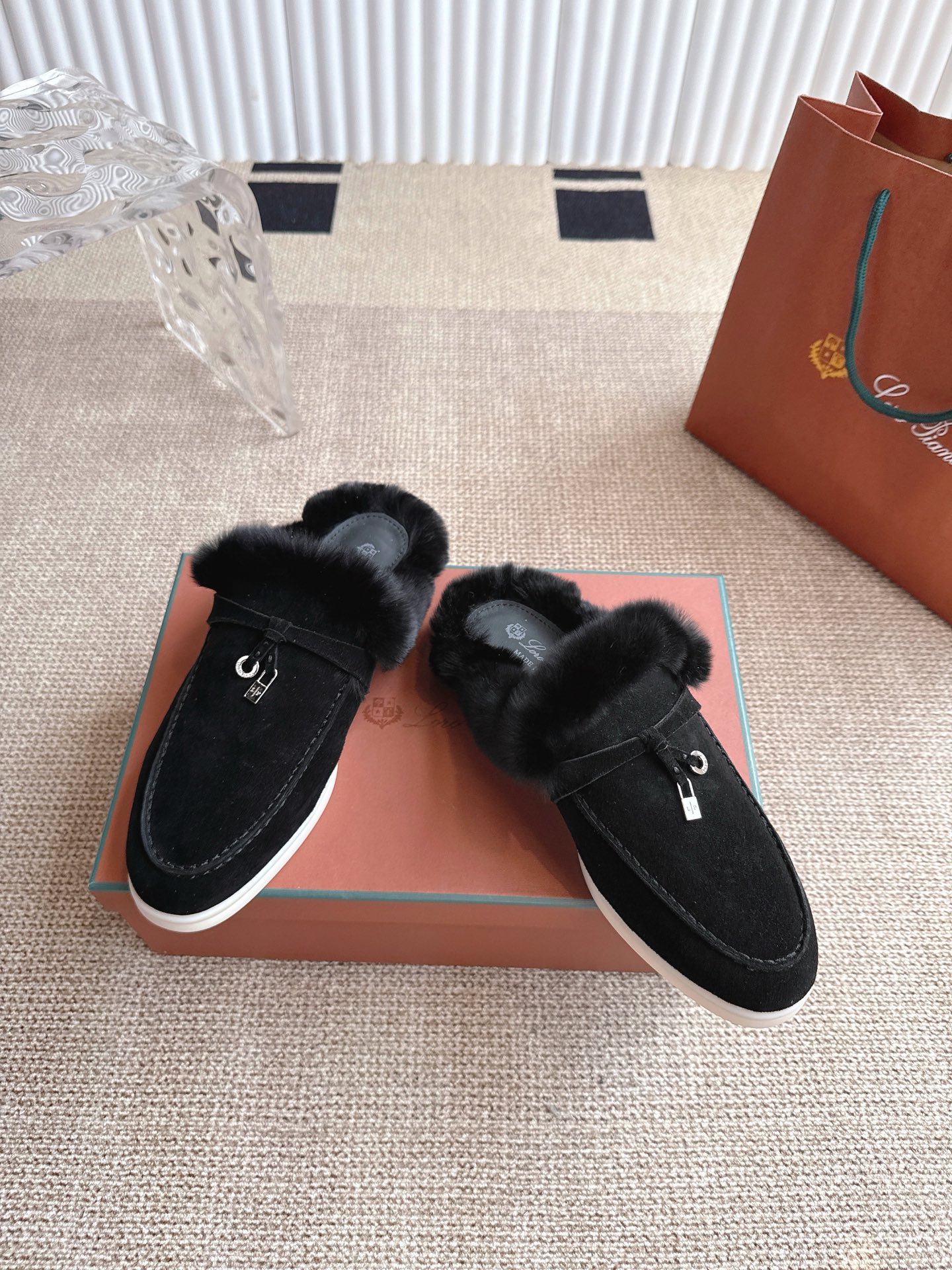 这款鞋子是AAAAA 1:1 质量 (非常棒). 使用了和原版一模一样的材料. 商标部分也保持了和洛罗皮亚纳/Loro Piana一样. 图片拍摄是实物鞋子拍摄, 您所收到的实物保证和我们图片一模一样.