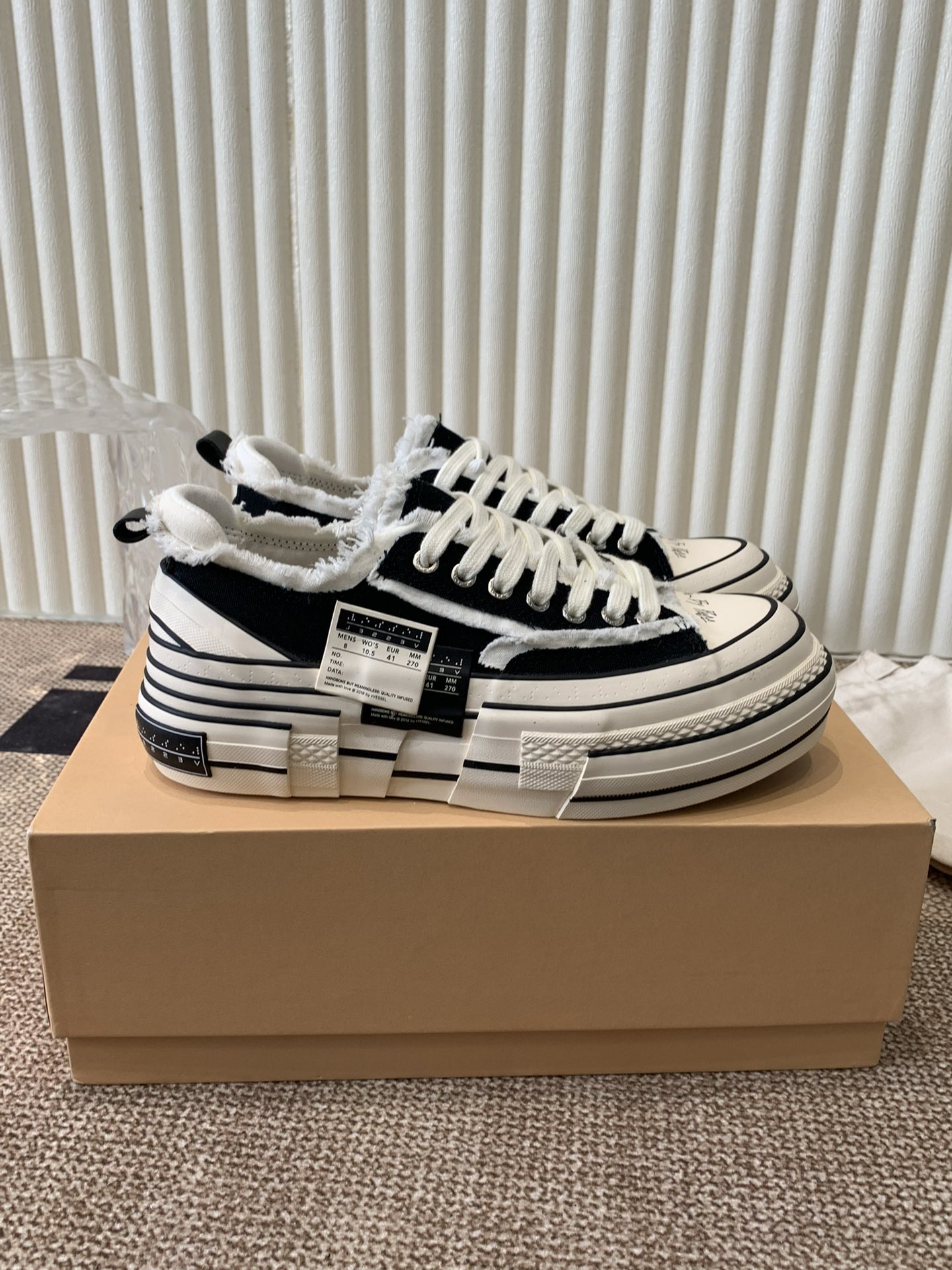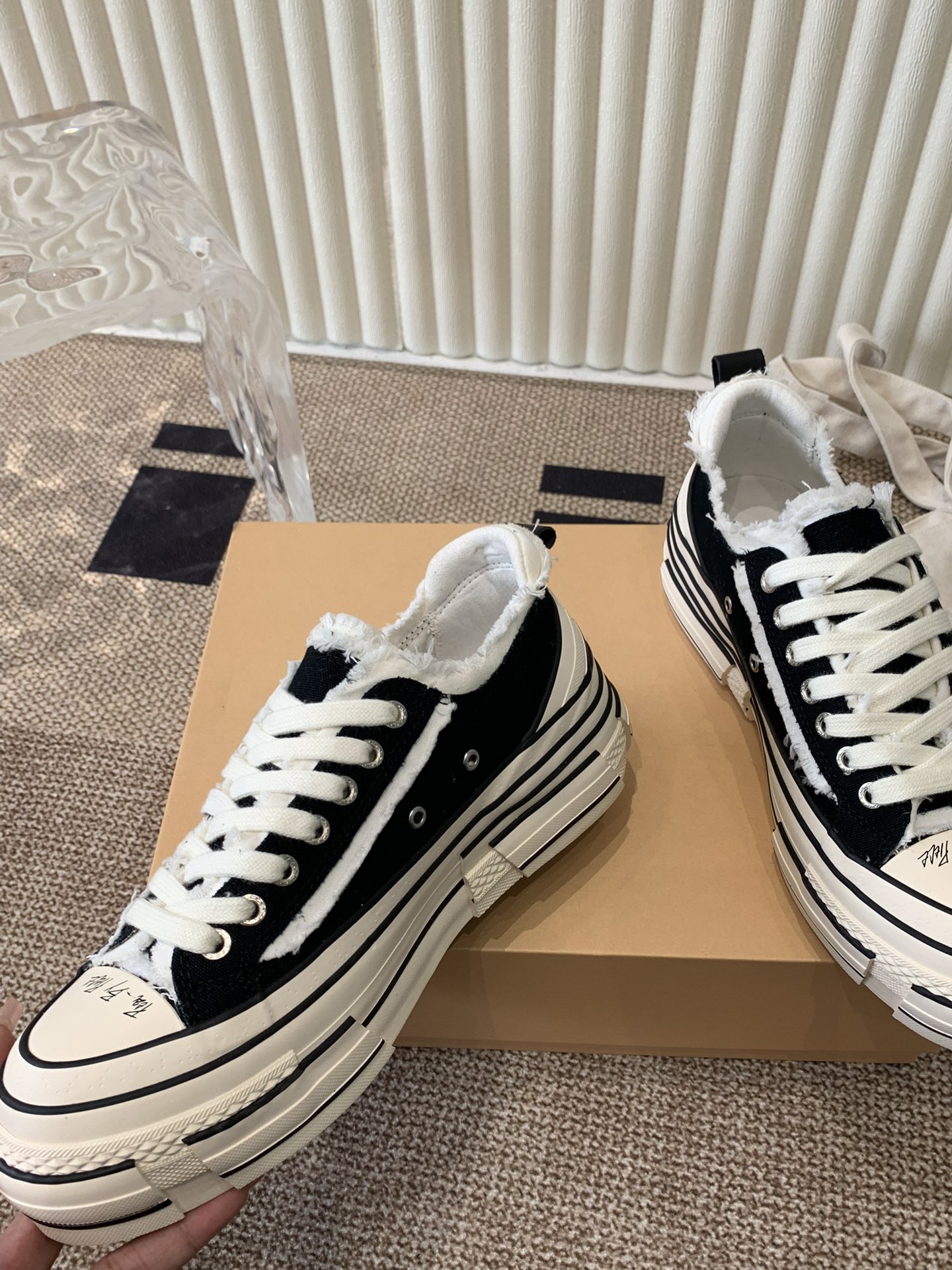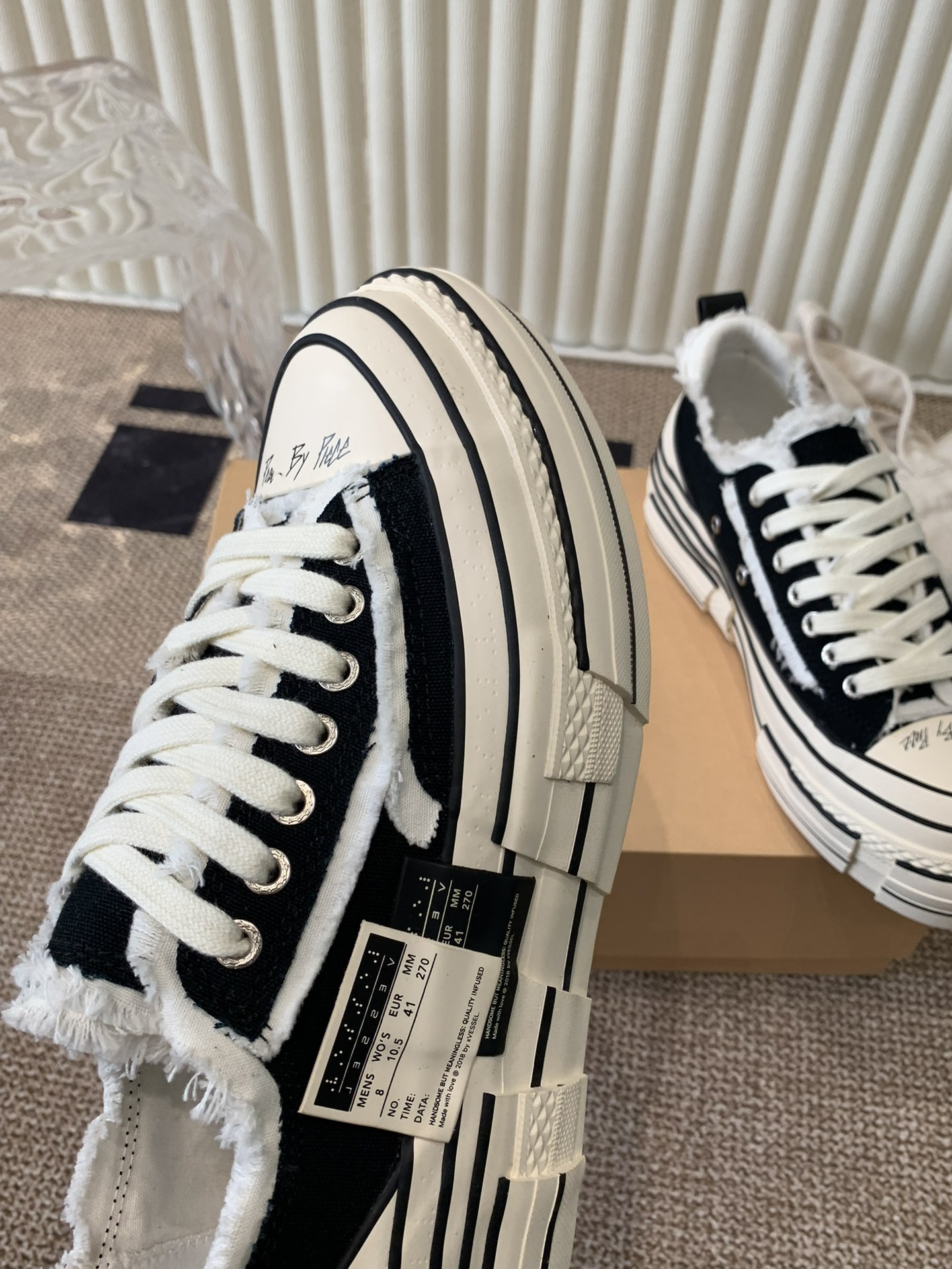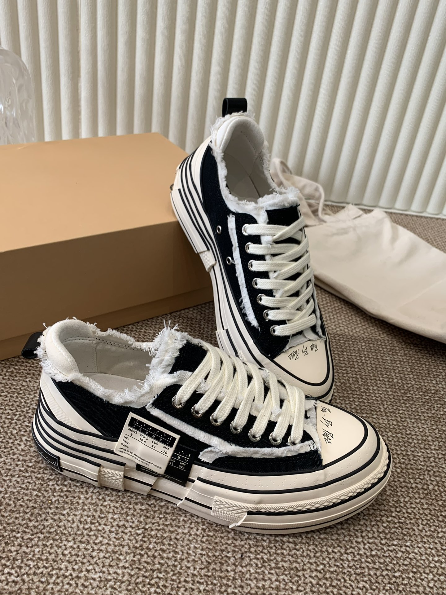 这款鞋子是AAAAA 1:1 质量 (非常棒). 使用了和原版一模一样的材料. 商标部分也保持了和一样. 图片拍摄是实物鞋子拍摄, 您所收到的实物保证和我们图片一模一样.