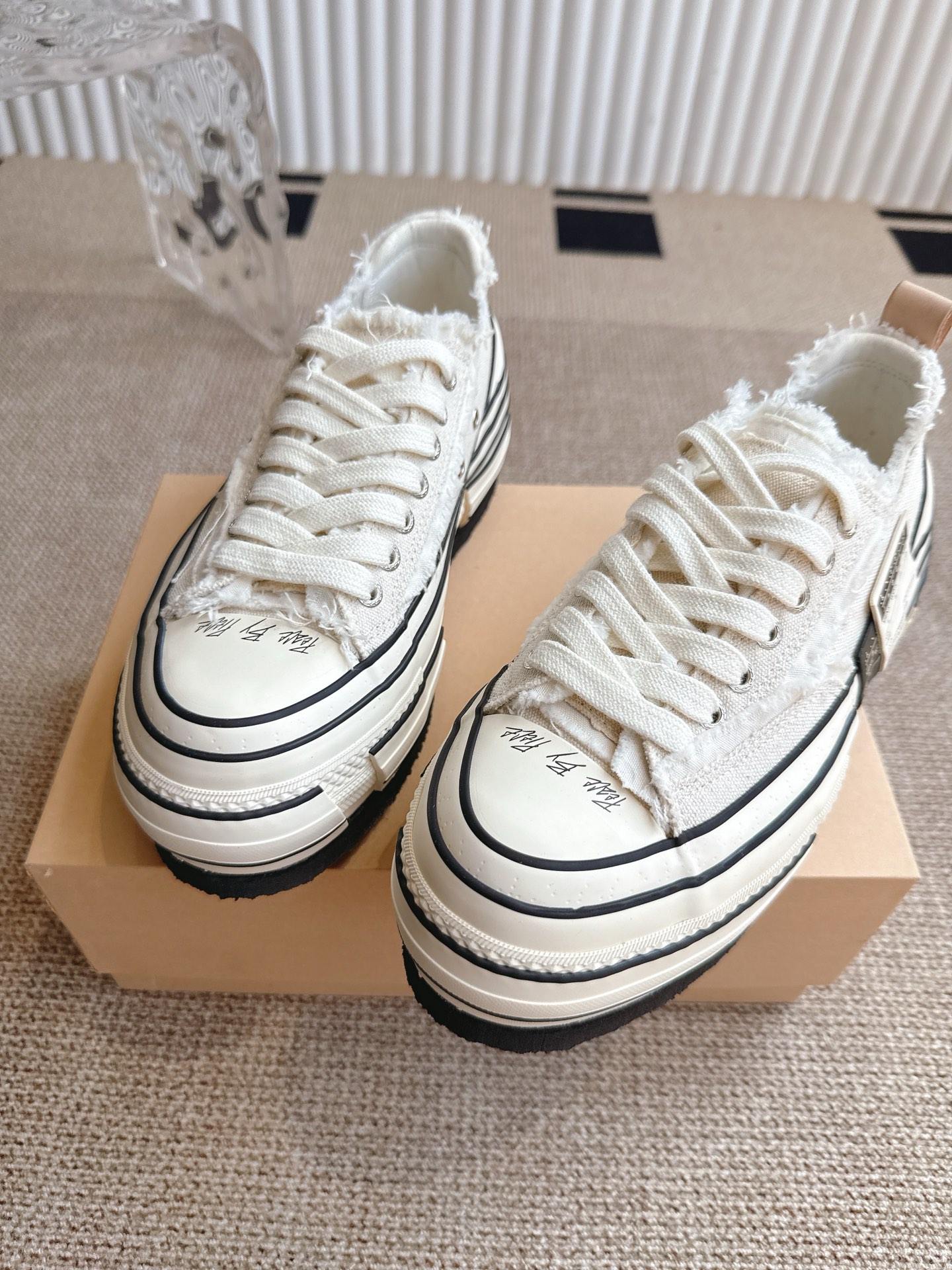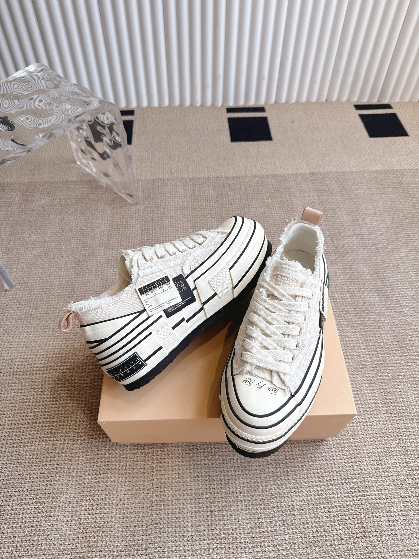 这款鞋子是AAAAA 1:1 质量 (非常棒). 使用了和原版一模一样的材料. 商标部分也保持了和一样. 图片拍摄是实物鞋子拍摄, 您所收到的实物保证和我们图片一模一样.