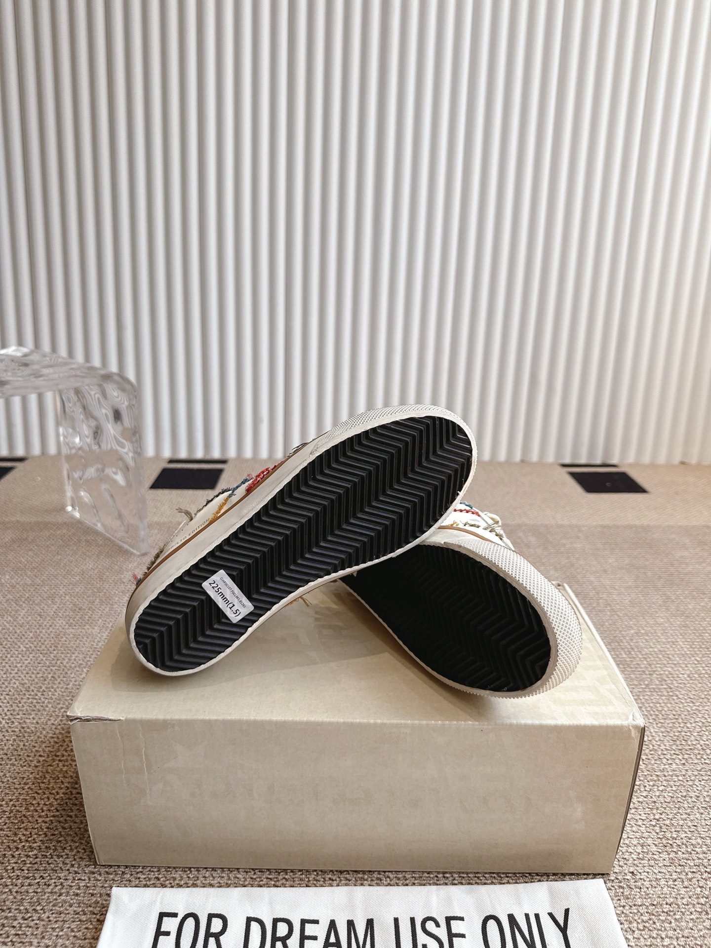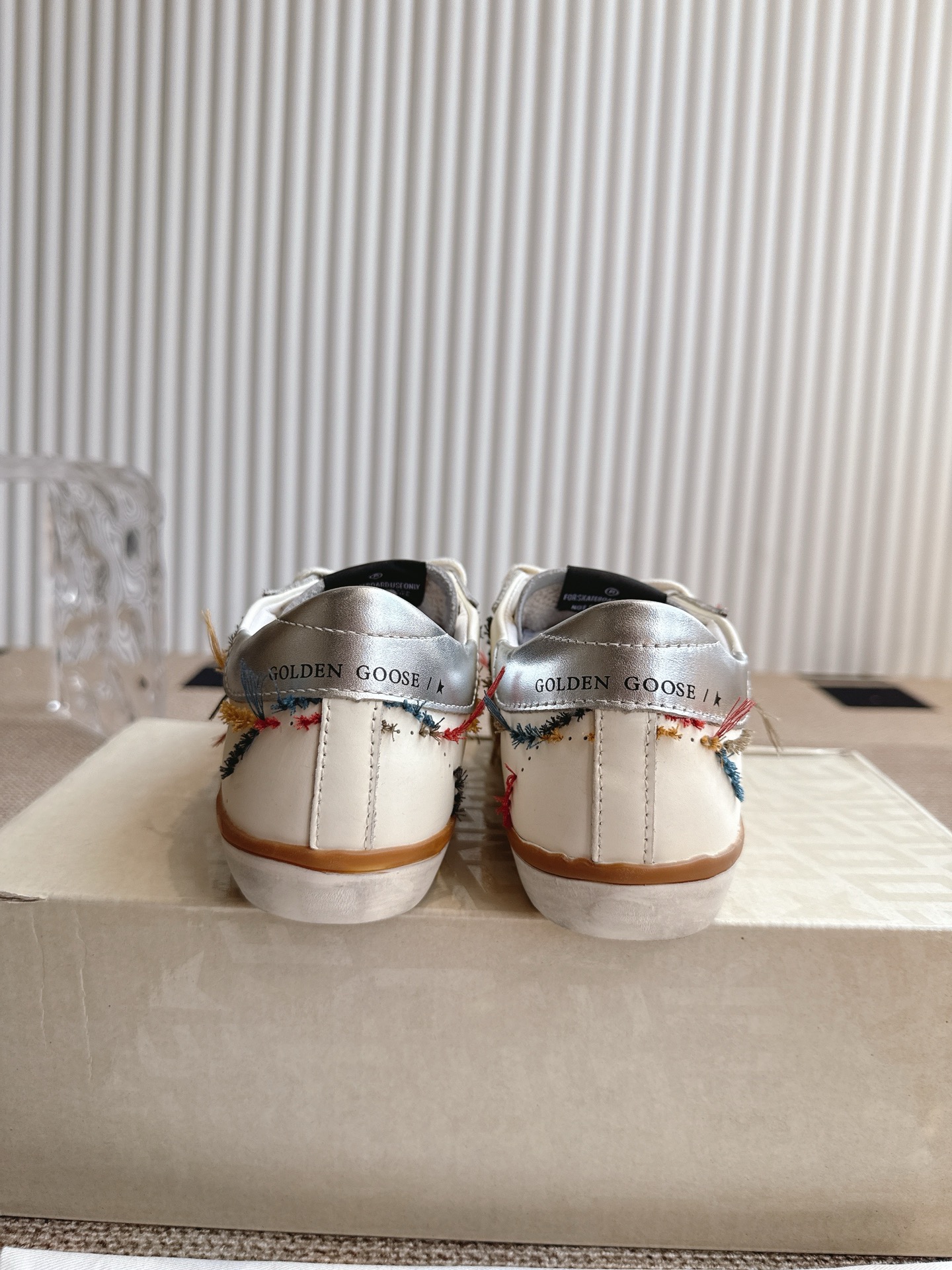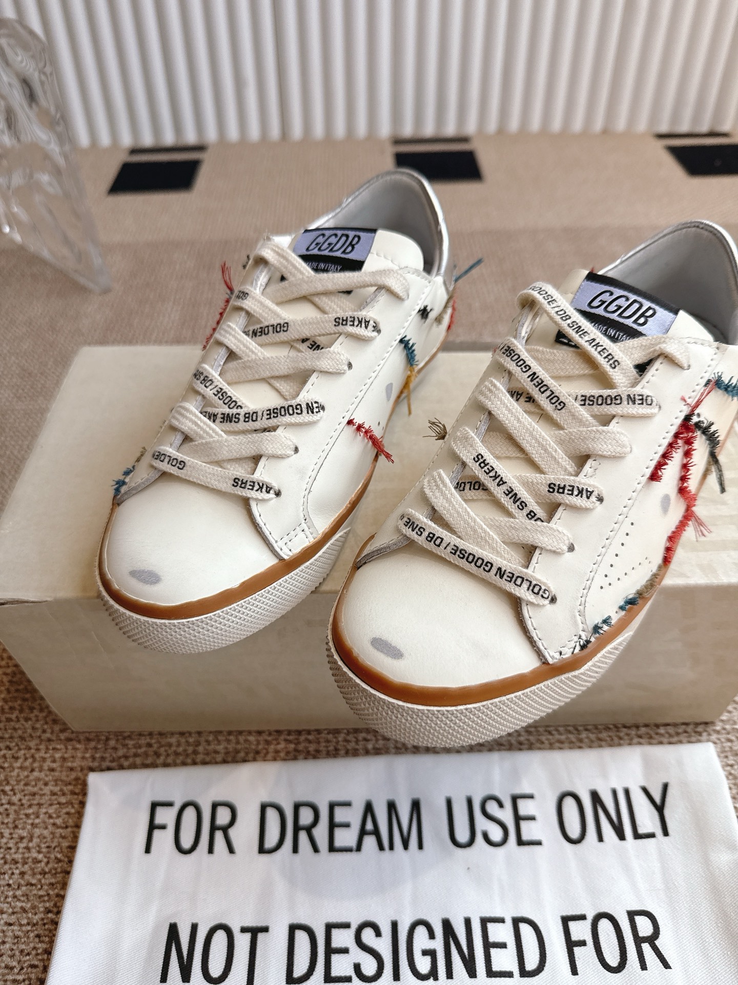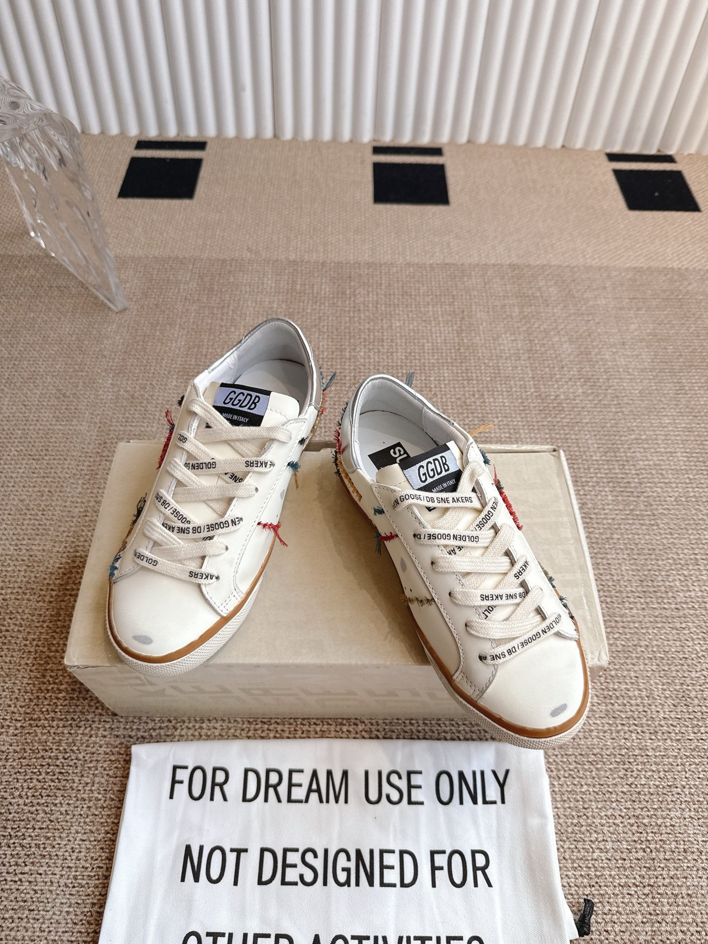 这款鞋子是AAAAA 1:1 质量 (非常棒). 使用了和原版一模一样的材料. 商标部分也保持了和Golden Goose一样. 图片拍摄是实物鞋子拍摄, 您所收到的实物保证和我们图片一模一样.