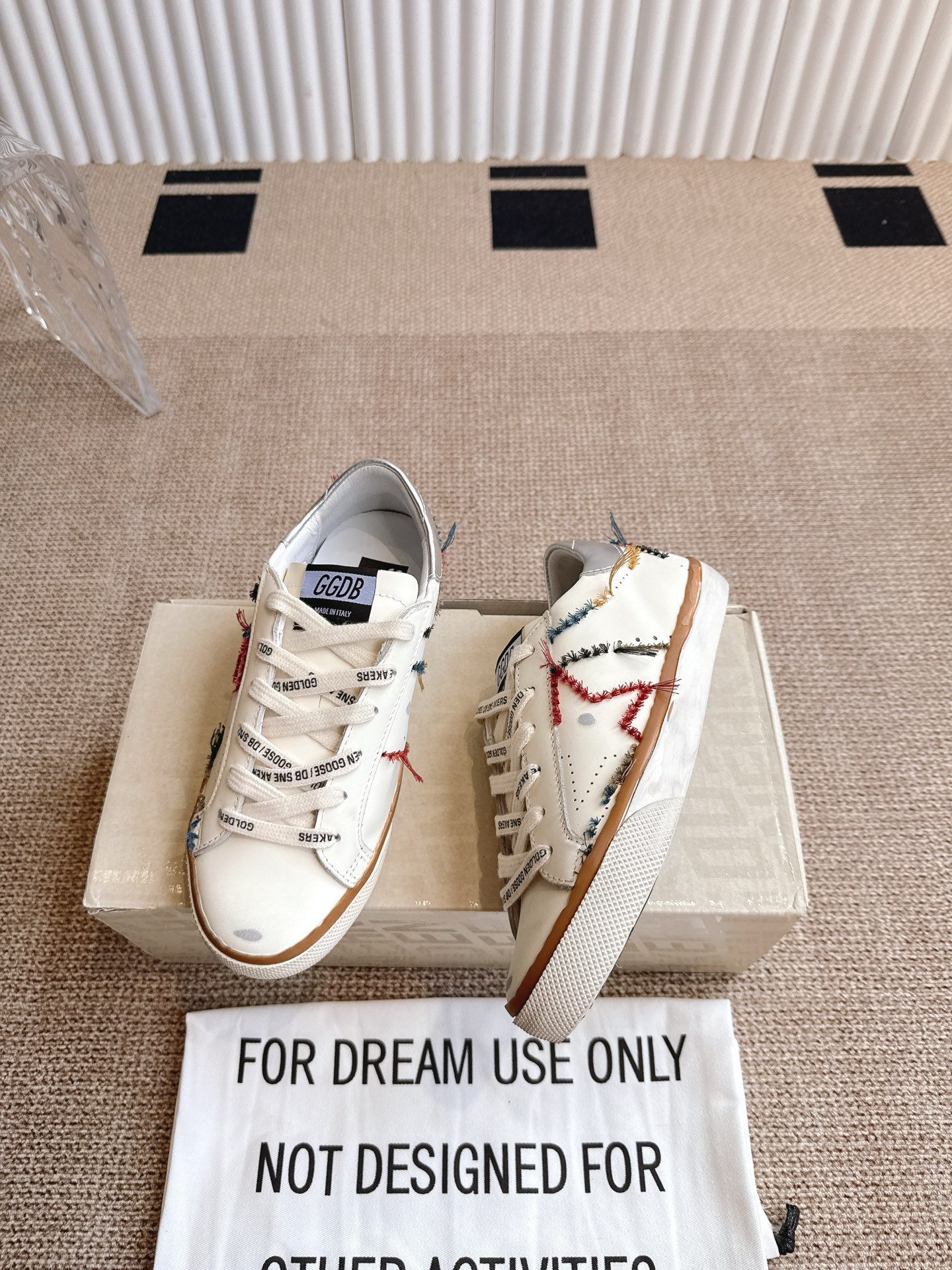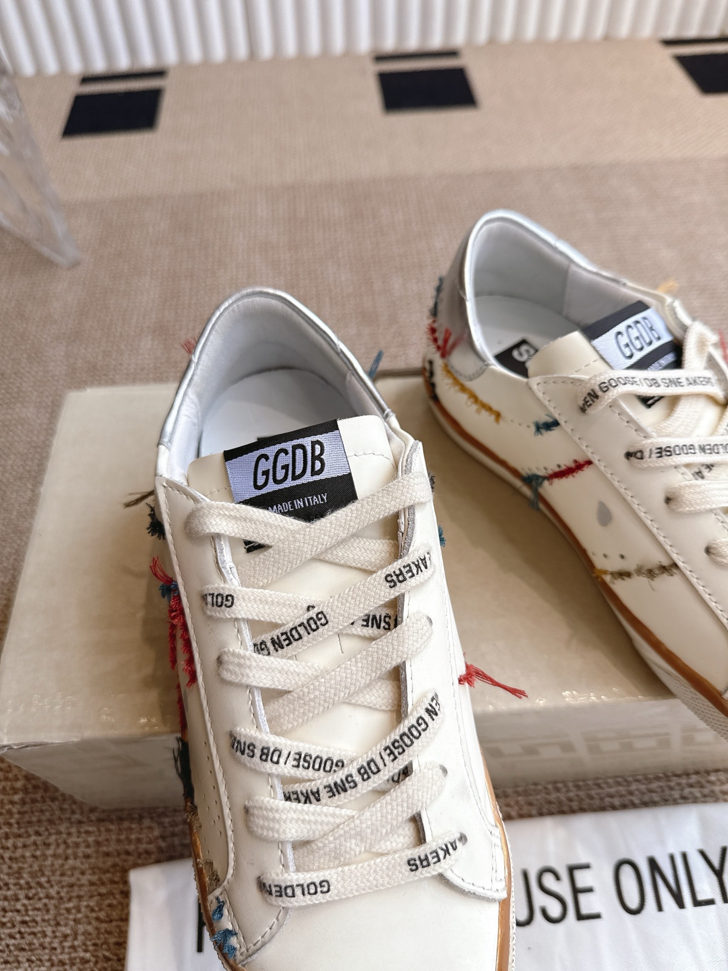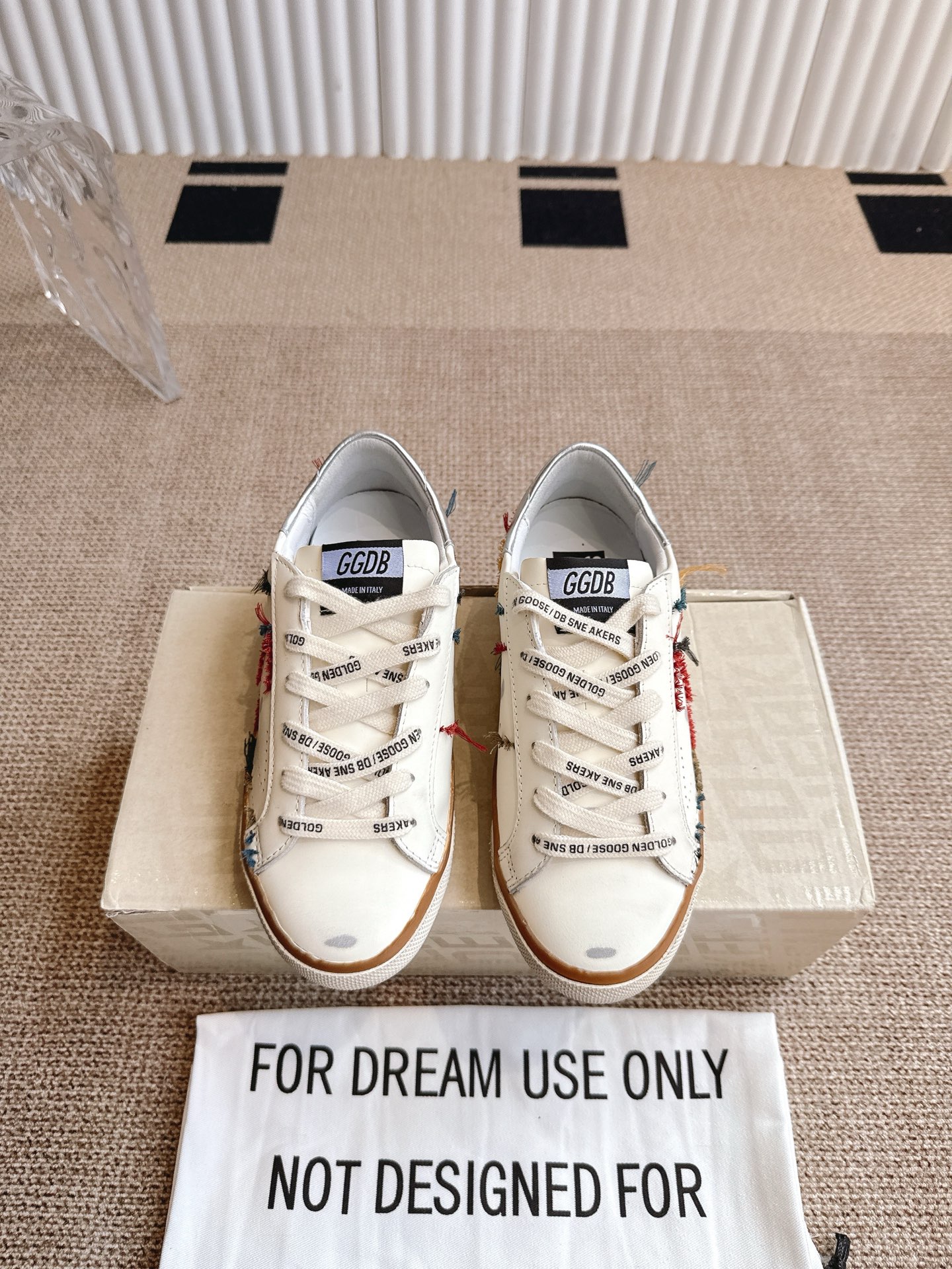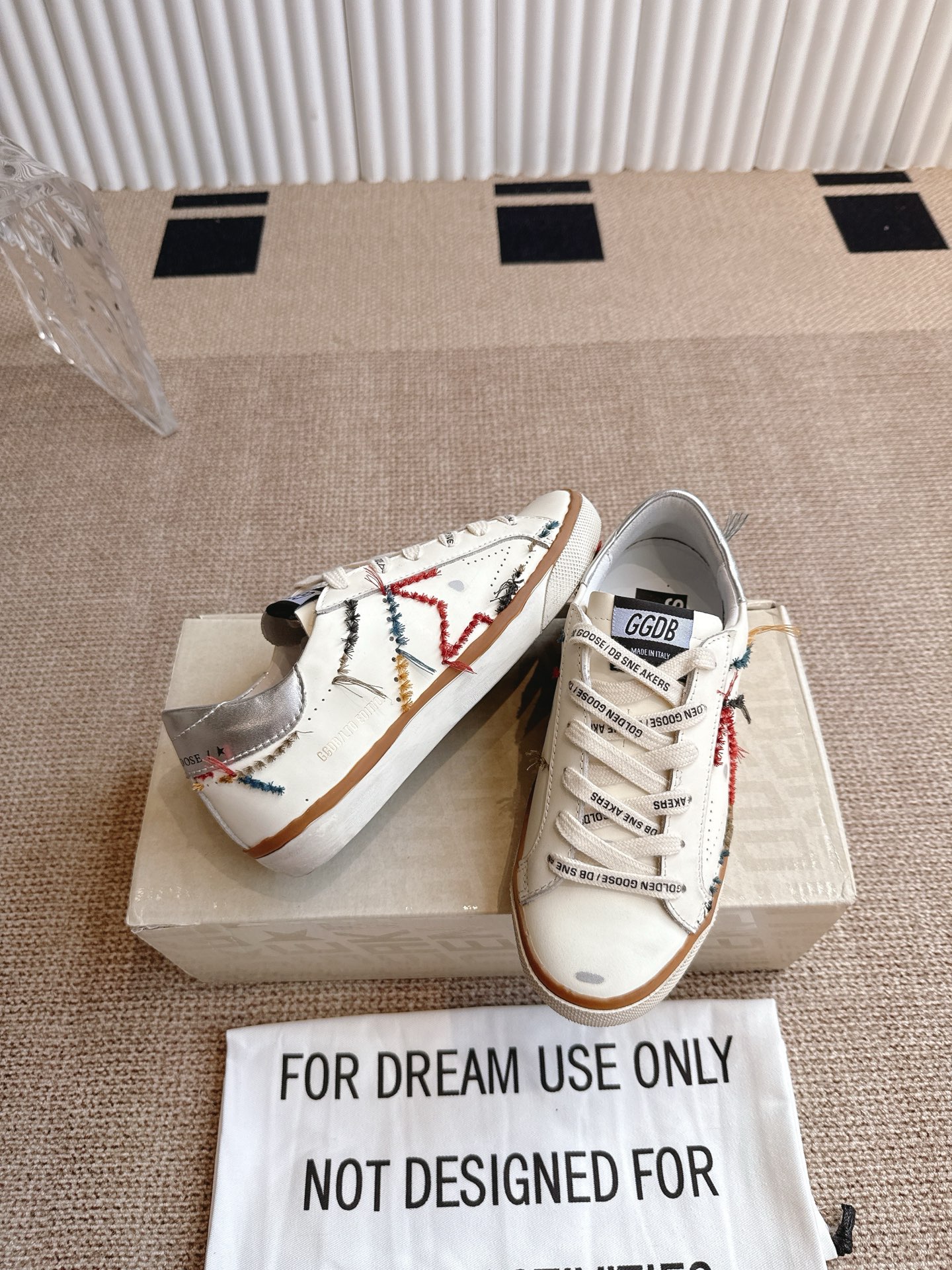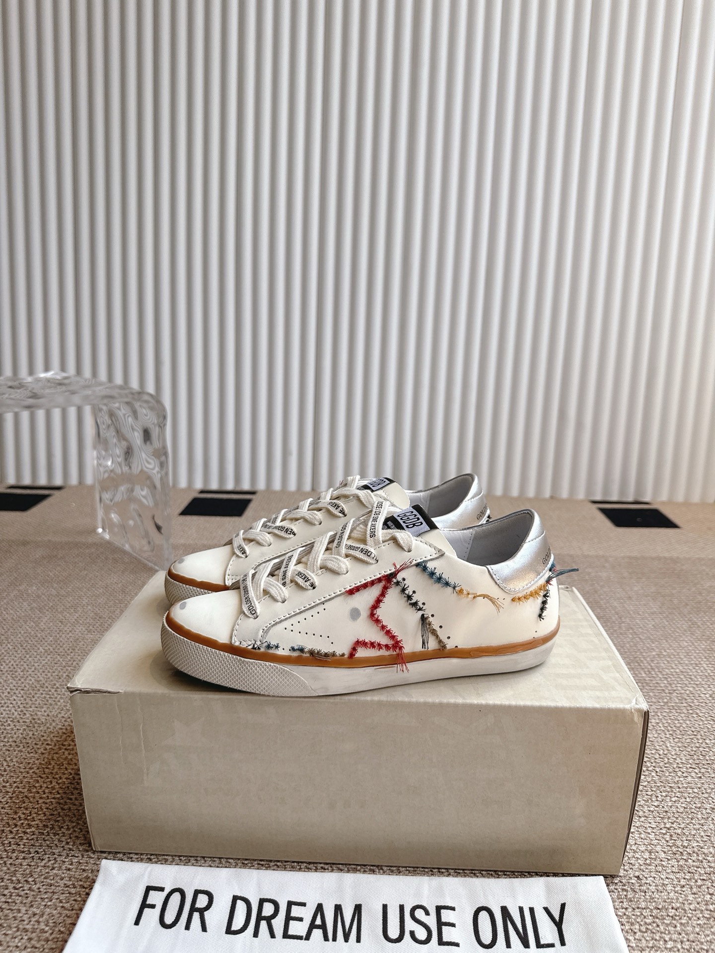 这款鞋子是AAAAA 1:1 质量 (非常棒). 使用了和原版一模一样的材料. 商标部分也保持了和Golden Goose一样. 图片拍摄是实物鞋子拍摄, 您所收到的实物保证和我们图片一模一样.