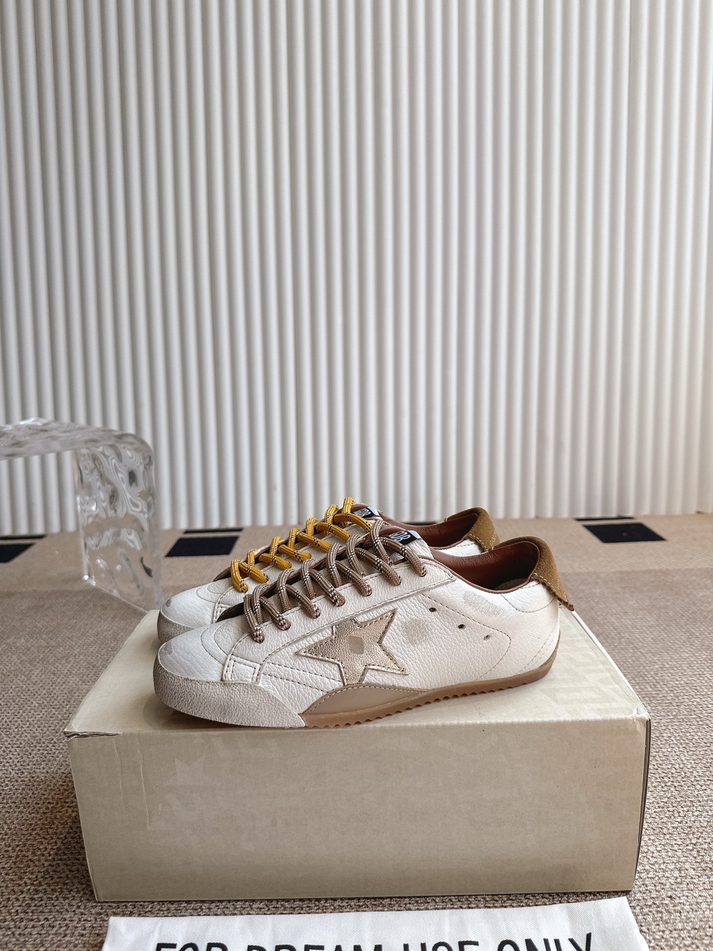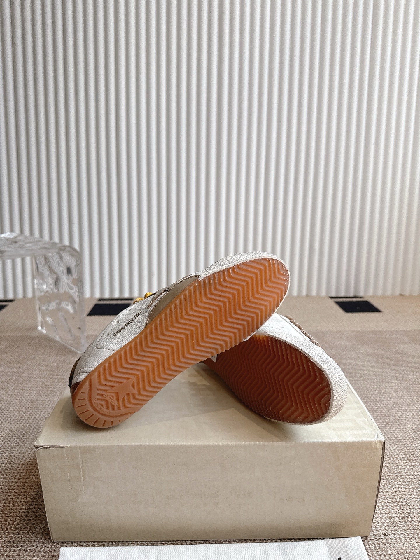 这款鞋子是AAAAA 1:1 质量 (非常棒). 使用了和原版一模一样的材料. 商标部分也保持了和Golden Goose一样. 图片拍摄是实物鞋子拍摄, 您所收到的实物保证和我们图片一模一样.