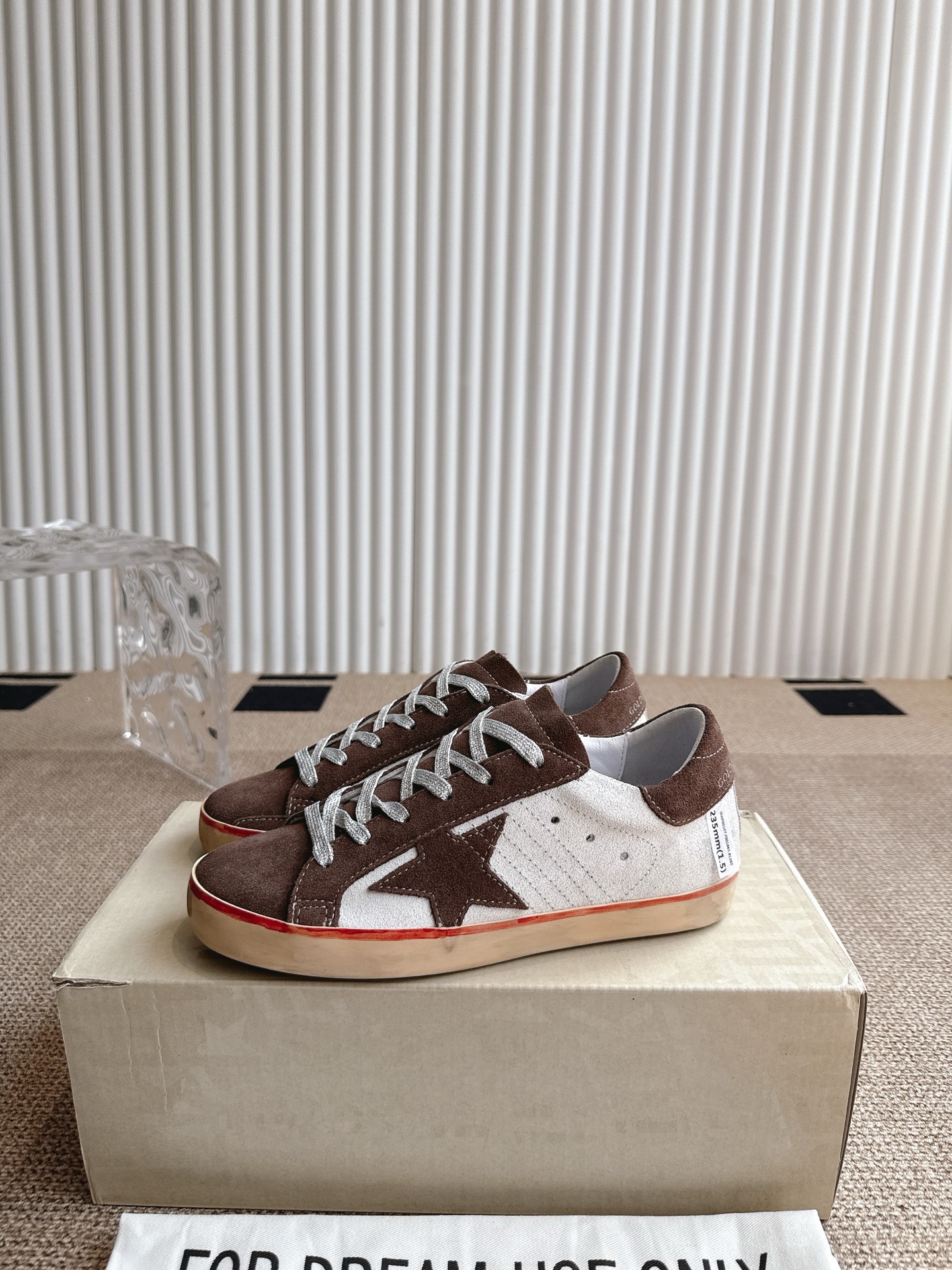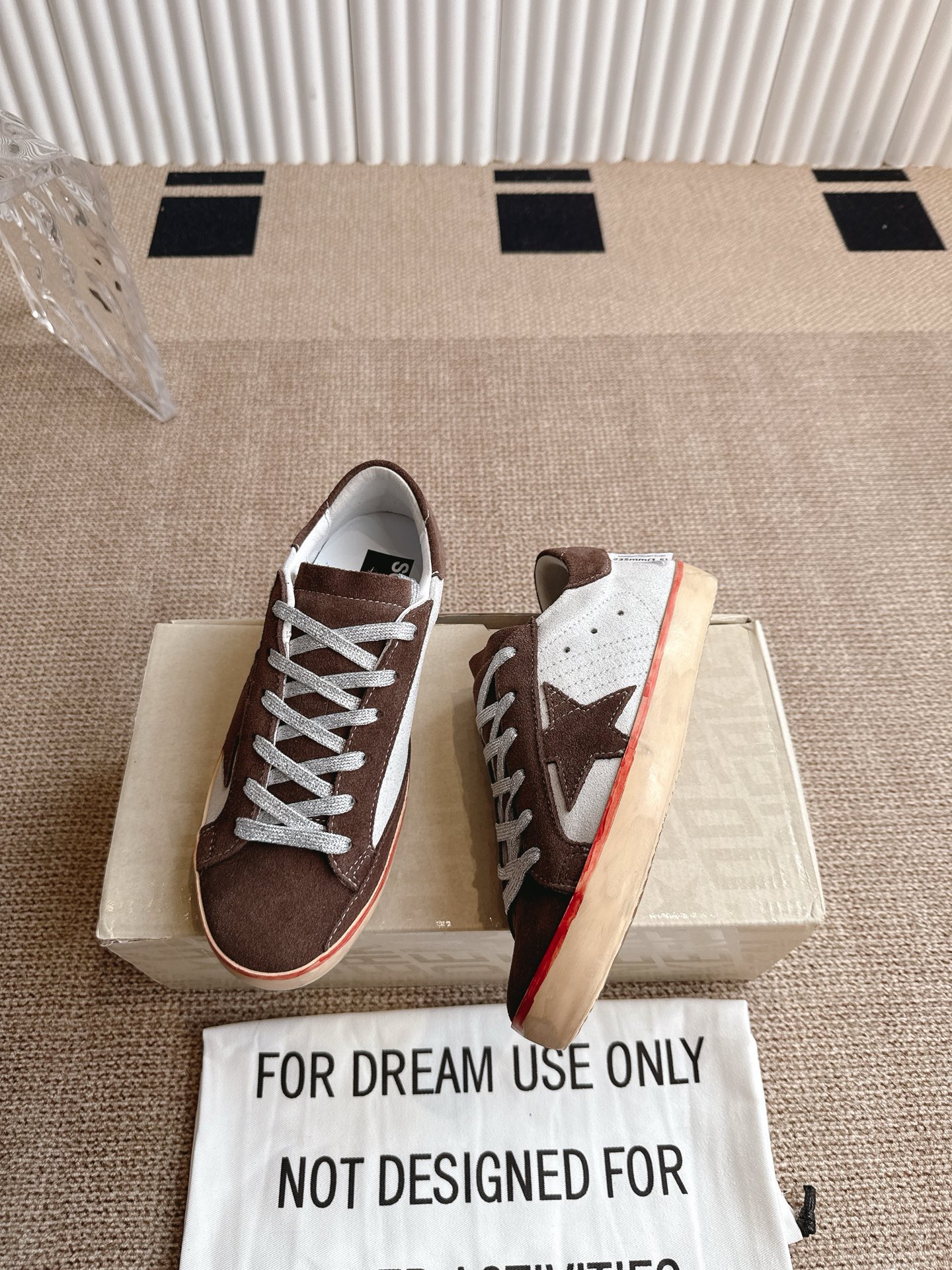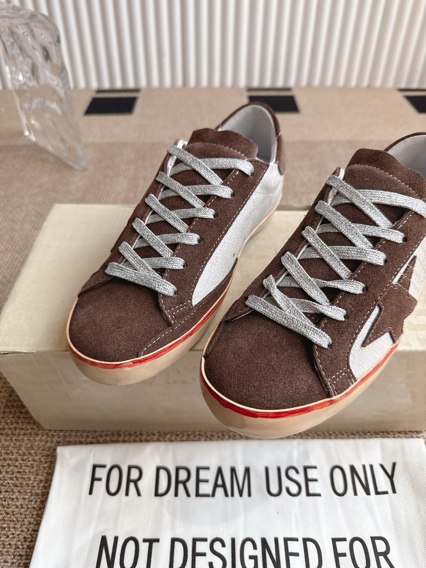 这款鞋子是AAAAA 1:1 质量 (非常棒). 使用了和原版一模一样的材料. 商标部分也保持了和Golden Goose一样. 图片拍摄是实物鞋子拍摄, 您所收到的实物保证和我们图片一模一样.